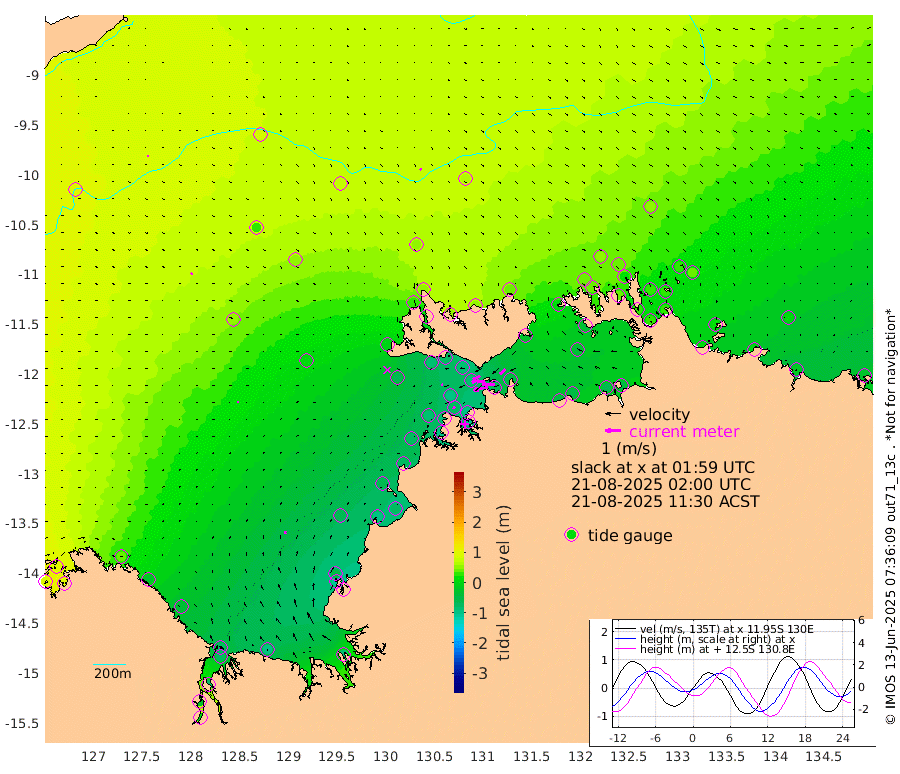 95cm/s -101T +4cm/s rms + 6cm/s 51T. Darwin_C1 52m 83cm/s -90T +4cm/s rms + 7cm/s -161T. Darwin_CW1 22m 44cm/s -108T +4cm/s rms + 8cm/s 61T. Darwin_CW2 34m 48cm/s -135T +3cm/s rms + 9cm/s 98T. Darwin_CW3 22m 54cm/s -92T +5cm/s rms + 7cm/s 88T. Darwin_C3 56m 51cm/s -115T +2cm/s rms + 9cm/s -126T. Darwin_CTbW 22m 9cm/s 139T +9cm/s rms + 2cm/s -110T. NWSLYN 196m 14cm/s -96T +1cm/s rms + 1cm/s -47T. DARBGF 30m 7cm/s 34T +7cm/s rms + 2cm/s -137T. ITFTIS 464m 10cm/s 35T +9cm/s rms + 1cm/s 74T. ITFMHB 146m 18cm/s -3T +4cm/s rms + 1cm/s -134T. ITFJBG 61m 10cm/s 22T +6cm/s rms + 4cm/s 121T. ITFFTB 108m 16cm/s -70T +4cm/s rms + 3cm/s 80T. NRSDAR 19m 91cm Carronade Island 96cm Guy Point 101cm Napier Broome Bay 35cm Lesueur Island -43cm Reveley Island -23cm Rocky Island -79cm Cape Domett -71cm Lacrosse Island -72cm Adolphus Island -28cm Pender Point -8cm Wyndham 48cm The Boxers 33cm Unnamed Shoal 89cm Loxton Shoal -101cm Pelican Island 54cm Calder Shoal 69cm Evans Shoal -84cm Quoin Island -102cm Port Keats -110cm Jones Point -53cm Catfish Island -60cm Cape Scott Offshore -91cm Cape Ford -73cm Anson Bay 55cm Goodrich Bank -59cm Peron Island North -70cm Point Jenny -68cm Native Point -79cm Fish Reef -81cm Tapa Bay -2cm Point Fawcett (Offshore) -95cm Burge Point -85cm Munkunuwa -59cm Beagle A -88cm Parsons Bank -96cm Fenton Patches 64cm Lynedoch Bank -86cm Hancox Shoal Area -95cm Nightcliff -92cm Darwin -72cm Charles Point Patches -66cm Glyde Point -49cm Chambers Bay -52cm Point Stuart -55cm Cape Hotham -44cm Christine Reef -59cm West Alligator Head -53cm East Field Island -35cm Two Hills Bay 2cm Newby Shoal -33cm Camp Point -74cm Medina Inlet South 9cm South Barlow Point 25cm St. Asaph Bay 51cm Cape Van Dieman 54cm Snake Bay 51cm Cache Point 96cm Echo Shoal 36cm Point Jahleel (Off) 9cm Cape Don 37cm Port Essington 34cm Smith Point - West 39cm NW Peacock Island 53cm North Of Jones Shoal 17cm Peacock Island 28cm Point David 34cm D'urville Point 47cm Money Shoal 23cm Copeland Island 32cm Cape Cockburn 34cm One Tree Point 34cm Hogmany Shoal 33cm New Year Island - West 30cm Grant Island 8cm Aurari Bay 4cm Cuthbert Point 17cm North Goulburn Island 4cm Paxie Shoal -14cm Entrance Island -27cm Yabooma Island