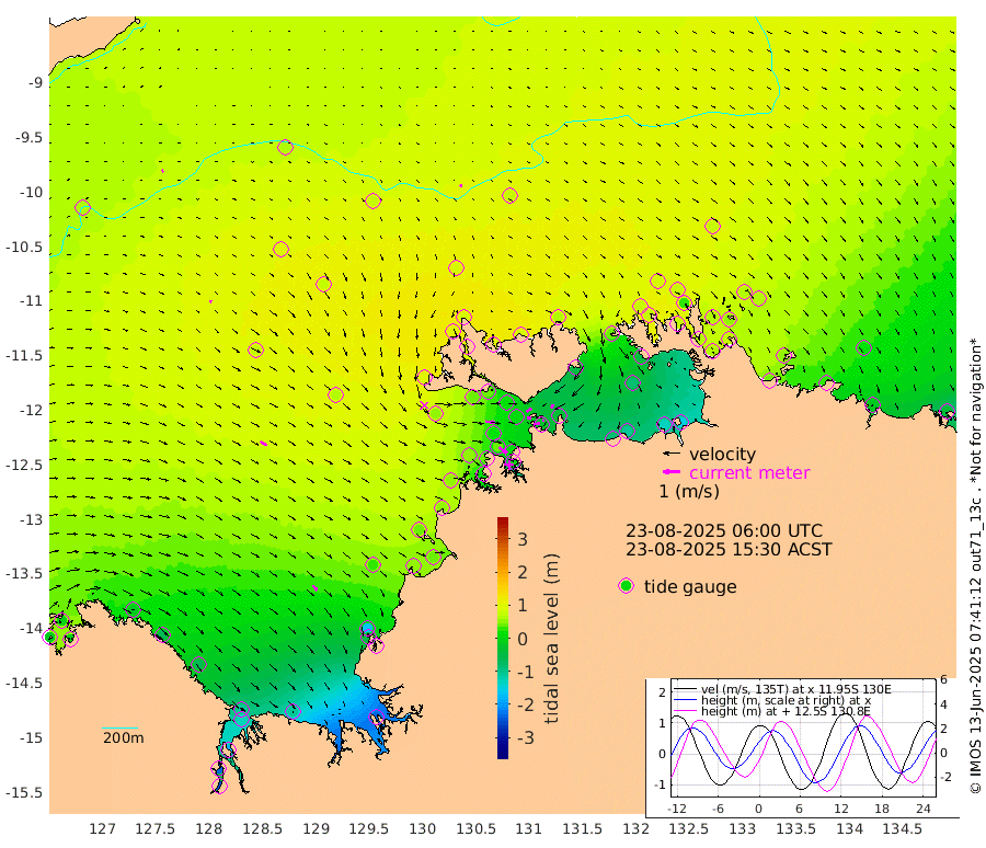 30cm/s 79T +4cm/s rms + 6cm/s 51T. Darwin_C1 52m 10cm/s 54T +4cm/s rms + 7cm/s -161T. Darwin_CW1 22m 2cm/s 167T +4cm/s rms + 8cm/s 61T. Darwin_CW2 34m 26cm/s -154T +3cm/s rms + 9cm/s 98T. Darwin_CW3 22m 23cm/s -88T +5cm/s rms + 7cm/s 88T. Darwin_C3 56m 34cm/s 61T +2cm/s rms + 9cm/s -126T. Darwin_CTbW 22m 15cm/s 148T +9cm/s rms + 2cm/s -110T. NWSLYN 196m 56cm/s 96T +1cm/s rms + 1cm/s -47T. DARBGF 30m 10cm/s 50T +7cm/s rms + 2cm/s -137T. ITFTIS 464m 13cm/s 116T +9cm/s rms + 1cm/s 74T. ITFMHB 146m 39cm/s 136T +4cm/s rms + 1cm/s -134T. ITFJBG 61m 43cm/s 121T +6cm/s rms + 4cm/s 121T. ITFFTB 108m 57cm/s 127T +4cm/s rms + 3cm/s 80T. NRSDAR 19m -7cm Carronade Island -12cm Guy Point -5cm Napier Broome Bay -18cm Lesueur Island -64cm Reveley Island -65cm Rocky Island -129cm Cape Domett -104cm Lacrosse Island -188cm Adolphus Island -231cm Pender Point -249cm Wyndham 69cm The Boxers 92cm Unnamed Shoal 66cm Loxton Shoal -112cm Pelican Island 78cm Calder Shoal 73cm Evans Shoal -234cm Quoin Island -54cm Port Keats -53cm Jones Point -165cm Catfish Island 28cm Cape Scott Offshore 52cm Cape Ford 41cm Anson Bay 82cm Goodrich Bank 42cm Peron Island North 51cm Point Jenny 52cm Native Point 45cm Fish Reef 40cm Tapa Bay 94cm Point Fawcett (Offshore) 20cm Burge Point 42cm Munkunuwa 56cm Beagle A 21cm Parsons Bank 19cm Fenton Patches 71cm Lynedoch Bank 8cm Hancox Shoal Area 17cm Nightcliff 8cm Darwin 34cm Charles Point Patches -31cm Glyde Point -89cm Chambers Bay -104cm Point Stuart -44cm Cape Hotham -83cm Christine Reef -126cm West Alligator Head -157cm East Field Island -54cm Two Hills Bay 62cm Newby Shoal -54cm Camp Point 41cm Medina Inlet South 90cm South Barlow Point 92cm St. Asaph Bay 90cm Cape Van Dieman 91cm Snake Bay 85cm Cache Point 59cm Echo Shoal 66cm Point Jahleel (Off) 38cm Cape Don 72cm Port Essington 73cm Smith Point - West 71cm NW Peacock Island 81cm North Of Jones Shoal 29cm Peacock Island 61cm Point David 74cm D'urville Point 70cm Money Shoal 56cm Copeland Island 73cm Cape Cockburn 63cm One Tree Point 62cm Hogmany Shoal 59cm New Year Island - West 56cm Grant Island 42cm Aurari Bay 24cm Cuthbert Point 45cm North Goulburn Island 16cm Paxie Shoal -12cm Entrance Island -36cm Yabooma Island