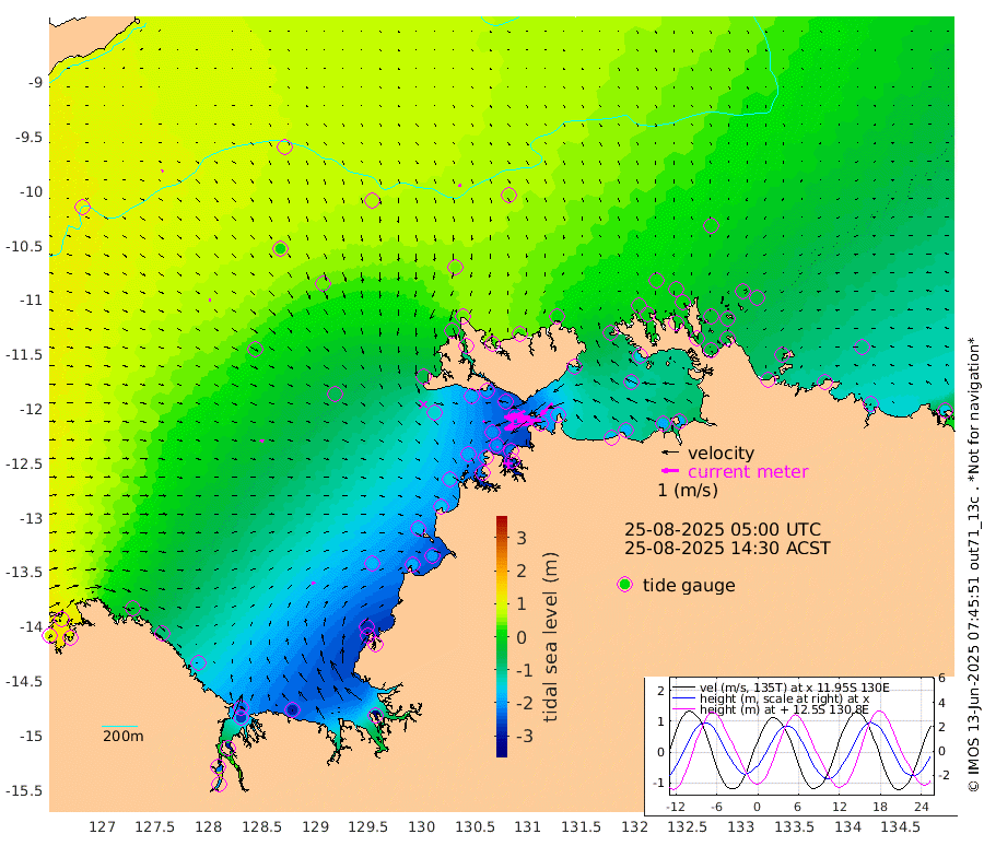 174cm/s -101T +4cm/s rms + 6cm/s 51T. Darwin_C1 52m 141cm/s -91T +4cm/s rms + 7cm/s -161T. Darwin_CW1 22m 91cm/s -106T +4cm/s rms + 8cm/s 61T. Darwin_CW2 34m 97cm/s -136T +3cm/s rms + 9cm/s 98T. Darwin_CW3 22m 153cm/s -91T +5cm/s rms + 7cm/s 88T. Darwin_C3 56m 88cm/s -116T +2cm/s rms + 9cm/s -126T. Darwin_CTbW 22m 12cm/s 161T +9cm/s rms + 2cm/s -110T. NWSLYN 196m 11cm/s -135T +1cm/s rms + 1cm/s -47T. DARBGF 30m 10cm/s 72T +7cm/s rms + 2cm/s -137T. ITFTIS 464m 12cm/s 91T +9cm/s rms + 1cm/s 74T. ITFMHB 146m 17cm/s 56T +4cm/s rms + 1cm/s -134T. ITFJBG 61m 23cm/s 99T +6cm/s rms + 4cm/s 121T. ITFFTB 108m 11cm/s -155T +4cm/s rms + 3cm/s 80T. NRSDAR 19m 93cm Carronade Island 96cm Guy Point 100cm Napier Broome Bay -31cm Lesueur Island -160cm Reveley Island -88cm Rocky Island -265cm Cape Domett -233cm Lacrosse Island -291cm Adolphus Island -214cm Pender Point -196cm Wyndham 19cm The Boxers 8cm Unnamed Shoal 85cm Loxton Shoal -290cm Pelican Island 35cm Calder Shoal 60cm Evans Shoal -351cm Quoin Island -271cm Port Keats -267cm Jones Point -279cm Catfish Island -173cm Cape Scott Offshore -186cm Cape Ford -195cm Anson Bay 42cm Goodrich Bank -178cm Peron Island North -161cm Point Jenny -157cm Native Point -190cm Fish Reef -191cm Tapa Bay -55cm Point Fawcett (Offshore) -221cm Burge Point -184cm Munkunuwa -136cm Beagle A -222cm Parsons Bank -211cm Fenton Patches 49cm Lynedoch Bank -218cm Hancox Shoal Area -224cm Nightcliff -250cm Darwin -213cm Charles Point Patches -193cm Glyde Point -172cm Chambers Bay -175cm Point Stuart -173cm Cape Hotham -153cm Christine Reef -191cm West Alligator Head -186cm East Field Island -147cm Two Hills Bay -65cm Newby Shoal -137cm Camp Point -195cm Medina Inlet South -40cm South Barlow Point -4cm St. Asaph Bay 40cm Cape Van Dieman 32cm Snake Bay 31cm Cache Point 105cm Echo Shoal 3cm Point Jahleel (Off) -61cm Cape Don -9cm Port Essington -9cm Smith Point - West -5cm NW Peacock Island 16cm North Of Jones Shoal 3cm Peacock Island -30cm Point David -13cm D'urville Point 2cm Money Shoal -36cm Copeland Island -54cm Cape Cockburn -30cm One Tree Point -41cm Hogmany Shoal -29cm New Year Island - West -36cm Grant Island -65cm Aurari Bay -88cm Cuthbert Point -63cm North Goulburn Island -91cm Paxie Shoal -120cm Entrance Island -152cm Yabooma Island