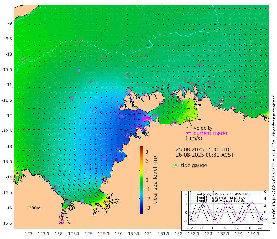 181cm/s -102T +4cm/s rms + 6cm/s 51T. Darwin_C1 52m 140cm/s -89T +4cm/s rms + 7cm/s -161T. Darwin_CW1 22m 125cm/s -108T +4cm/s rms + 8cm/s 61T. Darwin_CW2 34m 71cm/s -126T +3cm/s rms + 9cm/s 98T. Darwin_CW3 22m 161cm/s -91T +5cm/s rms + 7cm/s 88T. Darwin_C3 56m 103cm/s -115T +2cm/s rms + 9cm/s -126T. Darwin_CTbW 22m 6cm/s -49T +9cm/s rms + 2cm/s -110T. NWSLYN 196m 82cm/s -91T +1cm/s rms + 1cm/s -47T. DARBGF 30m 7cm/s -150T +7cm/s rms + 2cm/s -137T. ITFTIS 464m 8cm/s -26T +9cm/s rms + 1cm/s 74T. ITFMHB 146m 44cm/s -24T +4cm/s rms + 1cm/s -134T. ITFJBG 61m 33cm/s -45T +6cm/s rms + 4cm/s 121T. ITFFTB 108m 71cm/s -63T +4cm/s rms + 3cm/s 80T. NRSDAR 19m 96cm Carronade Island 102cm Guy Point 92cm Napier Broome Bay -10cm Lesueur Island -86cm Reveley Island -49cm Rocky Island -106cm Cape Domett -99cm Lacrosse Island -48cm Adolphus Island 57cm Pender Point 115cm Wyndham -81cm The Boxers -116cm Unnamed Shoal -20cm Loxton Shoal -144cm Pelican Island -77cm Calder Shoal -38cm Evans Shoal -38cm Quoin Island -200cm Port Keats -196cm Jones Point 24cm Catfish Island -202cm Cape Scott Offshore -264cm Cape Ford -236cm Anson Bay -67cm Goodrich Bank -211cm Peron Island North -220cm Point Jenny -222cm Native Point -230cm Fish Reef -241cm Tapa Bay -165cm Point Fawcett (Offshore) -238cm Burge Point -243cm Munkunuwa -201cm Beagle A -233cm Parsons Bank -229cm Fenton Patches -46cm Lynedoch Bank -213cm Hancox Shoal Area -234cm Nightcliff -248cm Darwin -246cm Charles Point Patches -130cm Glyde Point -24cm Chambers Bay 3cm Point Stuart -81cm Cape Hotham -16cm Christine Reef 16cm West Alligator Head 63cm East Field Island -36cm Two Hills Bay -140cm Newby Shoal -44cm Camp Point -241cm Medina Inlet South -154cm South Barlow Point -123cm St. Asaph Bay -77cm Cape Van Dieman -86cm Snake Bay -69cm Cache Point 14cm Echo Shoal -70cm Point Jahleel (Off) -81cm Cape Don -75cm Port Essington -75cm Smith Point - West -65cm NW Peacock Island -61cm North Of Jones Shoal -22cm Peacock Island -65cm Point David -73cm D'urville Point -54cm Money Shoal -60cm Copeland Island -75cm Cape Cockburn -65cm One Tree Point -63cm Hogmany Shoal -62cm New Year Island - West -62cm Grant Island -59cm Aurari Bay -47cm Cuthbert Point -61cm North Goulburn Island -45cm Paxie Shoal -33cm Entrance Island -5cm Yabooma Island