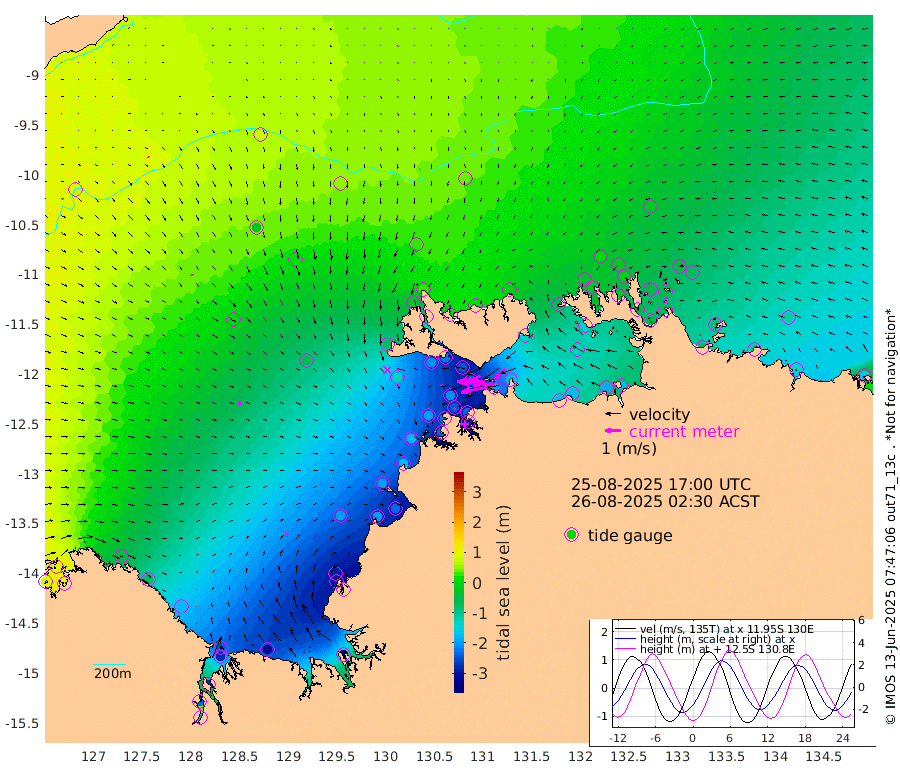 173cm/s -101T +4cm/s rms + 6cm/s 51T. Darwin_C1 52m 141cm/s -91T +4cm/s rms + 7cm/s -161T. Darwin_CW1 22m 104cm/s -106T +4cm/s rms + 8cm/s 61T. Darwin_CW2 34m 94cm/s -135T +3cm/s rms + 9cm/s 98T. Darwin_CW3 22m 178cm/s -91T +5cm/s rms + 7cm/s 88T. Darwin_C3 56m 88cm/s -116T +2cm/s rms + 9cm/s -126T. Darwin_CTbW 22m 4cm/s -161T +9cm/s rms + 2cm/s -110T. NWSLYN 196m 16cm/s -122T +1cm/s rms + 1cm/s -47T. DARBGF 30m 9cm/s 114T +7cm/s rms + 2cm/s -137T. ITFTIS 464m 13cm/s 127T +9cm/s rms + 1cm/s 74T. ITFMHB 146m 15cm/s 62T +4cm/s rms + 1cm/s -134T. ITFJBG 61m 23cm/s 107T +6cm/s rms + 4cm/s 121T. ITFFTB 108m 12cm/s -133T +4cm/s rms + 3cm/s 80T. NRSDAR 19m 94cm Carronade Island 94cm Guy Point 92cm Napier Broome Bay -37cm Lesueur Island -177cm Reveley Island -76cm Rocky Island -276cm Cape Domett -242cm Lacrosse Island -278cm Adolphus Island -229cm Pender Point -199cm Wyndham 0cm The Boxers -28cm Unnamed Shoal 71cm Loxton Shoal -306cm Pelican Island 21cm Calder Shoal 50cm Evans Shoal -355cm Quoin Island -282cm Port Keats -288cm Jones Point -290cm Catfish Island -197cm Cape Scott Offshore -198cm Cape Ford -225cm Anson Bay 28cm Goodrich Bank -194cm Peron Island North -177cm Point Jenny -176cm Native Point -200cm Fish Reef -216cm Tapa Bay -74cm Point Fawcett (Offshore) -232cm Burge Point -206cm Munkunuwa -135cm Beagle A -239cm Parsons Bank -211cm Fenton Patches 35cm Lynedoch Bank -235cm Hancox Shoal Area -235cm Nightcliff -272cm Darwin -238cm Charles Point Patches -201cm Glyde Point -172cm Chambers Bay -172cm Point Stuart -176cm Cape Hotham -144cm Christine Reef -185cm West Alligator Head -171cm East Field Island -148cm Two Hills Bay -61cm Newby Shoal -144cm Camp Point -216cm Medina Inlet South -55cm South Barlow Point -18cm St. Asaph Bay 24cm Cape Van Dieman 12cm Snake Bay 19cm Cache Point 99cm Echo Shoal -7cm Point Jahleel (Off) -72cm Cape Don -23cm Port Essington -17cm Smith Point - West -15cm NW Peacock Island 5cm North Of Jones Shoal -1cm Peacock Island -52cm Point David -22cm D'urville Point -13cm Money Shoal -55cm Copeland Island -69cm Cape Cockburn -48cm One Tree Point -72cm Hogmany Shoal -47cm New Year Island - West -55cm Grant Island -78cm Aurari Bay -102cm Cuthbert Point -81cm North Goulburn Island -123cm Paxie Shoal -139cm Entrance Island -166cm Yabooma Island
