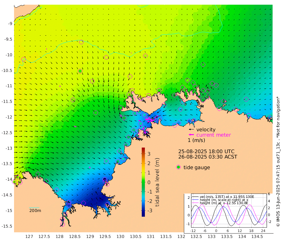 99cm/s -101T +4cm/s rms + 6cm/s 51T. Darwin_C1 52m 82cm/s -92T +4cm/s rms + 7cm/s -161T. Darwin_CW1 22m 59cm/s -106T +4cm/s rms + 8cm/s 61T. Darwin_CW2 34m 81cm/s -136T +3cm/s rms + 9cm/s 98T. Darwin_CW3 22m 124cm/s -91T +5cm/s rms + 7cm/s 88T. Darwin_C3 56m 37cm/s -116T +2cm/s rms + 9cm/s -126T. Darwin_CTbW 22m 6cm/s 173T +9cm/s rms + 2cm/s -110T. NWSLYN 196m 35cm/s 106T +1cm/s rms + 1cm/s -47T. DARBGF 30m 12cm/s 96T +7cm/s rms + 2cm/s -137T. ITFTIS 464m 20cm/s 134T +9cm/s rms + 1cm/s 74T. ITFMHB 146m 32cm/s 120T +4cm/s rms + 1cm/s -134T. ITFJBG 61m 45cm/s 119T +6cm/s rms + 4cm/s 121T. ITFFTB 108m 46cm/s 135T +4cm/s rms + 3cm/s 80T. NRSDAR 19m 54cm Carronade Island 49cm Guy Point 52cm Napier Broome Bay -38cm Lesueur Island -160cm Reveley Island -61cm Rocky Island -264cm Cape Domett -228cm Lacrosse Island -297cm Adolphus Island -306cm Pender Point -303cm Wyndham 45cm The Boxers 31cm Unnamed Shoal 94cm Loxton Shoal -277cm Pelican Island 69cm Calder Shoal 80cm Evans Shoal -396cm Quoin Island -215cm Port Keats -226cm Jones Point -357cm Catfish Island -116cm Cape Scott Offshore -80cm Cape Ford -129cm Anson Bay 71cm Goodrich Bank -105cm Peron Island North -80cm Point Jenny -78cm Native Point -100cm Fish Reef -115cm Tapa Bay 8cm Point Fawcett (Offshore) -134cm Burge Point -102cm Munkunuwa -40cm Beagle A -146cm Parsons Bank -113cm Fenton Patches 67cm Lynedoch Bank -152cm Hancox Shoal Area -139cm Nightcliff -176cm Darwin -138cm Charles Point Patches -161cm Glyde Point -188cm Chambers Bay -204cm Point Stuart -160cm Cape Hotham -159cm Christine Reef -227cm West Alligator Head -237cm East Field Island -152cm Two Hills Bay 12cm Newby Shoal -144cm Camp Point -115cm Medina Inlet South 25cm South Barlow Point 50cm St. Asaph Bay 72cm Cape Van Dieman 63cm Snake Bay 62cm Cache Point 107cm Echo Shoal 32cm Point Jahleel (Off) -38cm Cape Don 16cm Port Essington 24cm Smith Point - West 21cm NW Peacock Island 41cm North Of Jones Shoal 12cm Peacock Island -25cm Point David 17cm D'urville Point 16cm Money Shoal -30cm Copeland Island -37cm Cape Cockburn -20cm One Tree Point -51cm Hogmany Shoal -20cm New Year Island - West -29cm Grant Island -58cm Aurari Bay -92cm Cuthbert Point -60cm North Goulburn Island -121cm Paxie Shoal -145cm Entrance Island -192cm Yabooma Island
