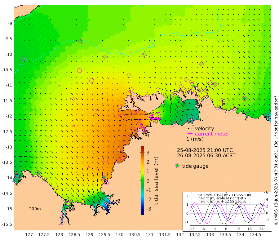 188cm/s 77T +4cm/s rms + 6cm/s 51T. Darwin_C1 52m 148cm/s 89T +4cm/s rms + 7cm/s -161T. Darwin_CW1 22m 108cm/s 75T +4cm/s rms + 8cm/s 61T. Darwin_CW2 34m 79cm/s 50T +3cm/s rms + 9cm/s 98T. Darwin_CW3 22m 146cm/s 88T +5cm/s rms + 7cm/s 88T. Darwin_C3 56m 104cm/s 64T +2cm/s rms + 9cm/s -126T. Darwin_CTbW 22m 2cm/s 67T +9cm/s rms + 2cm/s -110T. NWSLYN 196m 86cm/s 89T +1cm/s rms + 1cm/s -47T. DARBGF 30m 6cm/s 53T +7cm/s rms + 2cm/s -137T. ITFTIS 464m 14cm/s 160T +9cm/s rms + 1cm/s 74T. ITFMHB 146m 49cm/s 160T +4cm/s rms + 1cm/s -134T. ITFJBG 61m 39cm/s 136T +6cm/s rms + 4cm/s 121T. ITFFTB 108m 87cm/s 117T +4cm/s rms + 3cm/s 80T. NRSDAR 19m -91cm Carronade Island -101cm Guy Point -92cm Napier Broome Bay 12cm Lesueur Island 72cm Reveley Island 67cm Rocky Island 92cm Cape Domett 87cm Lacrosse Island 45cm Adolphus Island -89cm Pender Point -143cm Wyndham 87cm The Boxers 111cm Unnamed Shoal 30cm Loxton Shoal 125cm Pelican Island 88cm Calder Shoal 47cm Evans Shoal 13cm Quoin Island 196cm Port Keats 182cm Jones Point -60cm Catfish Island 196cm Cape Scott Offshore 270cm Cape Ford 228cm Anson Bay 76cm Goodrich Bank 213cm Peron Island North 224cm Point Jenny 226cm Native Point 237cm Fish Reef 238cm Tapa Bay 171cm Point Fawcett (Offshore) 243cm Burge Point 242cm Munkunuwa 220cm Beagle A 231cm Parsons Bank 243cm Fenton Patches 53cm Lynedoch Bank 209cm Hancox Shoal Area 238cm Nightcliff 243cm Darwin 242cm Charles Point Patches 125cm Glyde Point 12cm Chambers Bay -18cm Point Stuart 74cm Cape Hotham 12cm Christine Reef -32cm West Alligator Head -79cm East Field Island 27cm Two Hills Bay 165cm Newby Shoal 34cm Camp Point 241cm Medina Inlet South 165cm South Barlow Point 134cm St. Asaph Bay 85cm Cape Van Dieman 92cm Snake Bay 78cm Cache Point -2cm Echo Shoal 77cm Point Jahleel (Off) 80cm Cape Don 78cm Port Essington 82cm Smith Point - West 71cm NW Peacock Island 67cm North Of Jones Shoal 24cm Peacock Island 55cm Point David 79cm D'urville Point 55cm Money Shoal 52cm Copeland Island 72cm Cape Cockburn 59cm One Tree Point 44cm Hogmany Shoal 57cm New Year Island - West 55cm Grant Island 51cm Aurari Bay 35cm Cuthbert Point 50cm North Goulburn Island 16cm Paxie Shoal 10cm Entrance Island -24cm Yabooma Island