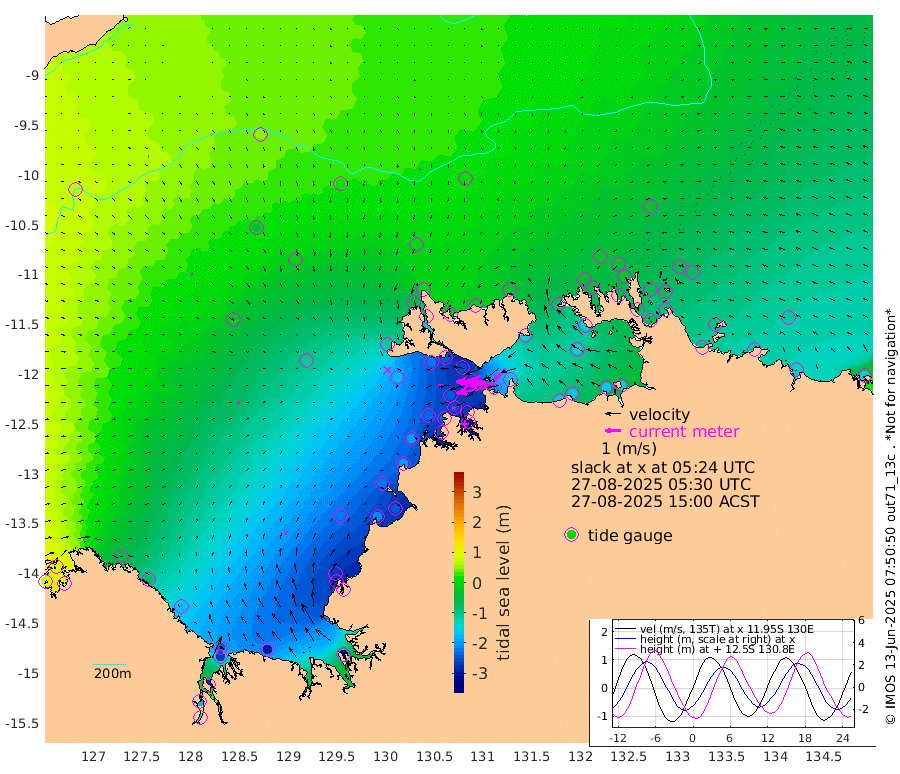 203cm/s -101T +4cm/s rms + 6cm/s 51T. Darwin_C1 52m 167cm/s -91T +4cm/s rms + 7cm/s -161T. Darwin_CW1 22m 114cm/s -106T +4cm/s rms + 8cm/s 61T. Darwin_CW2 34m 98cm/s -136T +3cm/s rms + 9cm/s 98T. Darwin_CW3 22m 188cm/s -91T +5cm/s rms + 7cm/s 88T. Darwin_C3 56m 111cm/s -115T +2cm/s rms + 9cm/s -126T. Darwin_CTbW 22m 8cm/s 180T +9cm/s rms + 2cm/s -110T. NWSLYN 196m 32cm/s -102T +1cm/s rms + 1cm/s -47T. DARBGF 30m 7cm/s 84T +7cm/s rms + 2cm/s -137T. ITFTIS 464m 9cm/s 77T +9cm/s rms + 1cm/s 74T. ITFMHB 146m 17cm/s 28T +4cm/s rms + 1cm/s -134T. ITFJBG 61m 14cm/s 83T +6cm/s rms + 4cm/s 121T. ITFFTB 108m 22cm/s -87T +4cm/s rms + 3cm/s 80T. NRSDAR 19m 83cm Carronade Island 84cm Guy Point 88cm Napier Broome Bay -51cm Lesueur Island -169cm Reveley Island -78cm Rocky Island -264cm Cape Domett -239cm Lacrosse Island -276cm Adolphus Island -180cm Pender Point -157cm Wyndham -20cm The Boxers -38cm Unnamed Shoal 46cm Loxton Shoal -294cm Pelican Island -9cm Calder Shoal 22cm Evans Shoal -336cm Quoin Island -289cm Port Keats -277cm Jones Point -269cm Catfish Island -215cm Cape Scott Offshore -203cm Cape Ford -242cm Anson Bay 3cm Goodrich Bank -221cm Peron Island North -199cm Point Jenny -195cm Native Point -225cm Fish Reef -230cm Tapa Bay -105cm Point Fawcett (Offshore) -251cm Burge Point -221cm Munkunuwa -171cm Beagle A -255cm Parsons Bank -239cm Fenton Patches 12cm Lynedoch Bank -249cm Hancox Shoal Area -263cm Nightcliff -285cm Darwin -254cm Charles Point Patches -205cm Glyde Point -164cm Chambers Bay -158cm Point Stuart -180cm Cape Hotham -145cm Christine Reef -168cm West Alligator Head -150cm East Field Island -148cm Two Hills Bay -105cm Newby Shoal -137cm Camp Point -236cm Medina Inlet South -88cm South Barlow Point -50cm St. Asaph Bay -1cm Cape Van Dieman -14cm Snake Bay -9cm Cache Point 71cm Echo Shoal -32cm Point Jahleel (Off) -89cm Cape Don -44cm Port Essington -45cm Smith Point - West -40cm NW Peacock Island -27cm North Of Jones Shoal -12cm Peacock Island -62cm Point David -49cm D'urville Point -33cm Money Shoal -66cm Copeland Island -94cm Cape Cockburn -65cm One Tree Point -74cm Hogmany Shoal -62cm New Year Island - West -68cm Grant Island -92cm Aurari Bay -105cm Cuthbert Point -91cm North Goulburn Island -111cm Paxie Shoal -127cm Entrance Island -151cm Yabooma Island