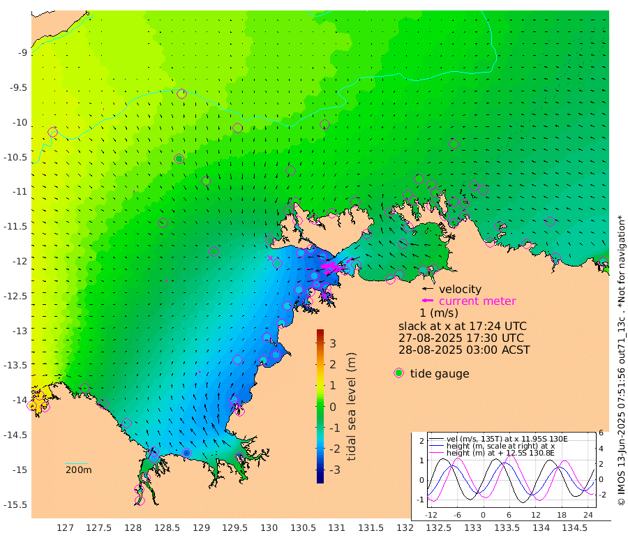 155cm/s -101T +4cm/s rms + 6cm/s 51T. Darwin_C1 52m 125cm/s -90T +4cm/s rms + 7cm/s -161T. Darwin_CW1 22m 106cm/s -106T +4cm/s rms + 8cm/s 61T. Darwin_CW2 34m 73cm/s -133T +3cm/s rms + 9cm/s 98T. Darwin_CW3 22m 168cm/s -91T +5cm/s rms + 7cm/s 88T. Darwin_C3 56m 84cm/s -115T +2cm/s rms + 9cm/s -126T. Darwin_CTbW 22m 3cm/s 169T +9cm/s rms + 2cm/s -110T. NWSLYN 196m 28cm/s -102T +1cm/s rms + 1cm/s -47T. DARBGF 30m 7cm/s 97T +7cm/s rms + 2cm/s -137T. ITFTIS 464m 9cm/s 104T +9cm/s rms + 1cm/s 74T. ITFMHB 146m 15cm/s 26T +4cm/s rms + 1cm/s -134T. ITFJBG 61m 14cm/s 84T +6cm/s rms + 4cm/s 121T. ITFFTB 108m 22cm/s -88T +4cm/s rms + 3cm/s 80T. NRSDAR 19m 127cm Carronade Island 127cm Guy Point 126cm Napier Broome Bay 10cm Lesueur Island -117cm Reveley Island -63cm Rocky Island -191cm Cape Domett -161cm Lacrosse Island -191cm Adolphus Island -123cm Pender Point -88cm Wyndham 8cm The Boxers -18cm Unnamed Shoal 65cm Loxton Shoal -228cm Pelican Island 24cm Calder Shoal 44cm Evans Shoal -246cm Quoin Island -219cm Port Keats -220cm Jones Point -179cm Catfish Island -161cm Cape Scott Offshore -141cm Cape Ford -189cm Anson Bay 21cm Goodrich Bank -159cm Peron Island North -147cm Point Jenny -148cm Native Point -164cm Fish Reef -181cm Tapa Bay -63cm Point Fawcett (Offshore) -187cm Burge Point -178cm Munkunuwa -112cm Beagle A -201cm Parsons Bank -173cm Fenton Patches 29cm Lynedoch Bank -195cm Hancox Shoal Area -197cm Nightcliff -224cm Darwin -198cm Charles Point Patches -149cm Glyde Point -108cm Chambers Bay -100cm Point Stuart -121cm Cape Hotham -88cm Christine Reef -105cm West Alligator Head -84cm East Field Island -94cm Two Hills Bay -43cm Newby Shoal -91cm Camp Point -183cm Medina Inlet South -55cm South Barlow Point -20cm St. Asaph Bay 17cm Cape Van Dieman 5cm Snake Bay 17cm Cache Point 94cm Echo Shoal -4cm Point Jahleel (Off) -53cm Cape Don -20cm Port Essington -18cm Smith Point - West -14cm NW Peacock Island 3cm North Of Jones Shoal -1cm Peacock Island -42cm Point David -22cm D'urville Point -9cm Money Shoal -44cm Copeland Island -52cm Cape Cockburn -38cm One Tree Point -51cm Hogmany Shoal -36cm New Year Island - West -43cm Grant Island -62cm Aurari Bay -77cm Cuthbert Point -61cm North Goulburn Island -87cm Paxie Shoal -100cm Entrance Island -116cm Yabooma Island