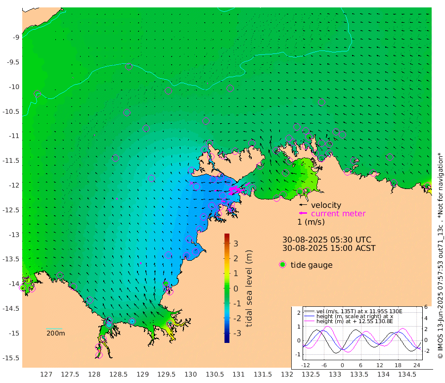 169cm/s -102T +4cm/s rms + 6cm/s 51T. Darwin_C1 52m 115cm/s -90T +4cm/s rms + 7cm/s -161T. Darwin_CW1 22m 108cm/s -108T +4cm/s rms + 8cm/s 61T. Darwin_CW2 34m 68cm/s -127T +3cm/s rms + 9cm/s 98T. Darwin_CW3 22m 142cm/s -92T +5cm/s rms + 7cm/s 88T. Darwin_C3 56m 100cm/s -115T +2cm/s rms + 9cm/s -126T. Darwin_CTbW 22m 5cm/s -91T +9cm/s rms + 2cm/s -110T. NWSLYN 196m 55cm/s -94T +1cm/s rms + 1cm/s -47T. DARBGF 30m 2cm/s -164T +7cm/s rms + 2cm/s -137T. ITFTIS 464m 10cm/s -1T +9cm/s rms + 1cm/s 74T. ITFMHB 146m 26cm/s -13T +4cm/s rms + 1cm/s -134T. ITFJBG 61m 18cm/s -37T +6cm/s rms + 4cm/s 121T. ITFFTB 108m 42cm/s -67T +4cm/s rms + 3cm/s 80T. NRSDAR 19m 46cm Carronade Island 40cm Guy Point 49cm Napier Broome Bay -50cm Lesueur Island -112cm Reveley Island -41cm Rocky Island -141cm Cape Domett -133cm Lacrosse Island -118cm Adolphus Island -25cm Pender Point 12cm Wyndham -72cm The Boxers -89cm Unnamed Shoal -35cm Loxton Shoal -167cm Pelican Island -77cm Calder Shoal -45cm Evans Shoal -117cm Quoin Island -199cm Port Keats -177cm Jones Point 1cm Catfish Island -183cm Cape Scott Offshore -218cm Cape Ford -206cm Anson Bay -63cm Goodrich Bank -188cm Peron Island North -188cm Point Jenny -189cm Native Point -189cm Fish Reef -210cm Tapa Bay -137cm Point Fawcett (Offshore) -207cm Burge Point -205cm Munkunuwa -170cm Beagle A -207cm Parsons Bank -200cm Fenton Patches -47cm Lynedoch Bank -200cm Hancox Shoal Area -218cm Nightcliff -220cm Darwin -214cm Charles Point Patches -127cm Glyde Point -52cm Chambers Bay -27cm Point Stuart -92cm Cape Hotham -52cm Christine Reef -21cm West Alligator Head 14cm East Field Island -56cm Two Hills Bay -130cm Newby Shoal -61cm Camp Point -205cm Medina Inlet South -131cm South Barlow Point -108cm St. Asaph Bay -69cm Cape Van Dieman -78cm Snake Bay -65cm Cache Point -6cm Echo Shoal -70cm Point Jahleel (Off) -78cm Cape Don -68cm Port Essington -73cm Smith Point - West -67cm NW Peacock Island -63cm North Of Jones Shoal -22cm Peacock Island -66cm Point David -72cm D'urville Point -55cm Money Shoal -63cm Copeland Island -80cm Cape Cockburn -65cm One Tree Point -72cm Hogmany Shoal -64cm New Year Island - West -67cm Grant Island -60cm Aurari Bay -53cm Cuthbert Point -65cm North Goulburn Island -52cm Paxie Shoal -48cm Entrance Island -32cm Yabooma Island