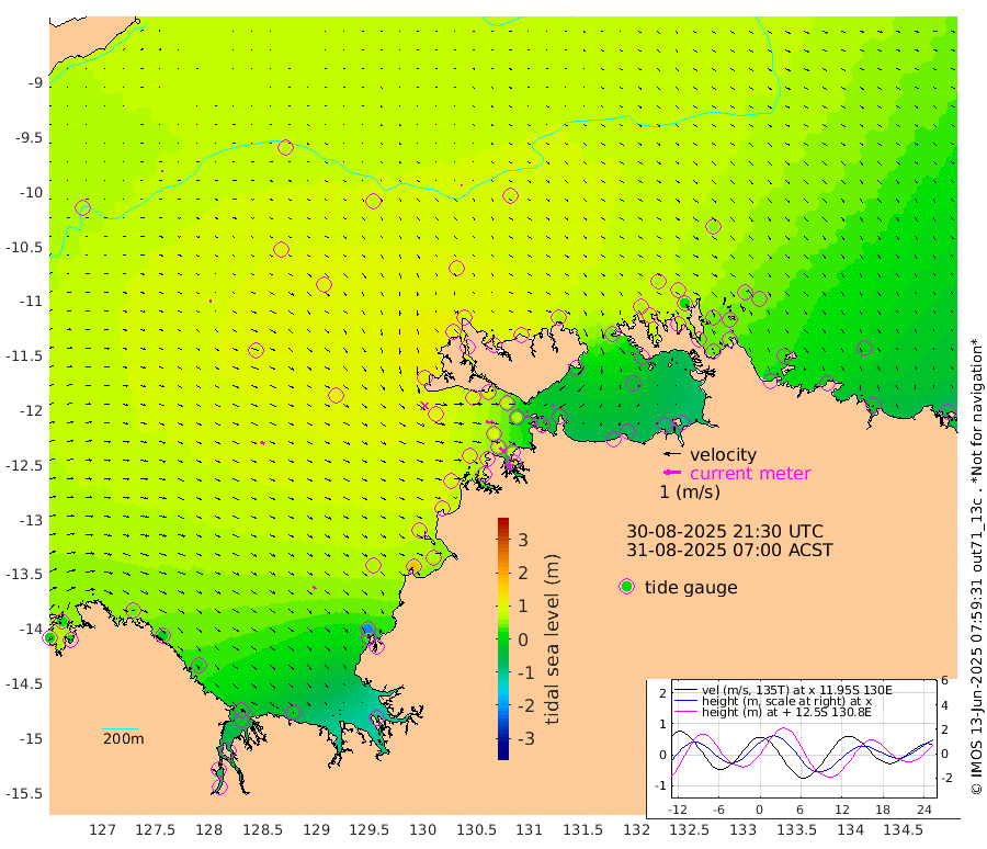 13cm/s 79T +4cm/s rms + 6cm/s 51T. Darwin_C1 52m 7cm/s 89T +4cm/s rms + 7cm/s -161T. Darwin_CW1 22m 18cm/s 75T +4cm/s rms + 8cm/s 61T. Darwin_CW2 34m 10cm/s -142T +3cm/s rms + 9cm/s 98T. Darwin_CW3 22m 8cm/s 84T +5cm/s rms + 7cm/s 88T. Darwin_C3 56m 10cm/s 63T +2cm/s rms + 9cm/s -126T. Darwin_CTbW 22m 6cm/s 114T +9cm/s rms + 2cm/s -110T. NWSLYN 196m 40cm/s 93T +1cm/s rms + 1cm/s -47T. DARBGF 30m 10cm/s 41T +7cm/s rms + 2cm/s -137T. ITFTIS 464m 9cm/s 90T +9cm/s rms + 1cm/s 74T. ITFMHB 146m 23cm/s 138T +4cm/s rms + 1cm/s -134T. ITFJBG 61m 24cm/s 113T +6cm/s rms + 4cm/s 121T. ITFFTB 108m 42cm/s 126T +4cm/s rms + 3cm/s 80T. NRSDAR 19m 18cm Carronade Island 18cm Guy Point 18cm Napier Broome Bay 38cm Lesueur Island 13cm Reveley Island -6cm Rocky Island -12cm Cape Domett -3cm Lacrosse Island -49cm Adolphus Island -90cm Pender Point -115cm Wyndham 81cm The Boxers 92cm Unnamed Shoal 78cm Loxton Shoal -15cm Pelican Island 95cm Calder Shoal 74cm Evans Shoal -105cm Quoin Island 40cm Port Keats 31cm Jones Point -204cm Catfish Island 60cm Cape Scott Offshore 174cm Cape Ford 67cm Anson Bay 84cm Goodrich Bank 76cm Peron Island North 86cm Point Jenny 90cm Native Point 82cm Fish Reef 85cm Tapa Bay 96cm Point Fawcett (Offshore) 89cm Burge Point 89cm Munkunuwa 98cm Beagle A 73cm Parsons Bank 86cm Fenton Patches 72cm Lynedoch Bank 59cm Hancox Shoal Area 71cm Nightcliff 72cm Darwin 85cm Charles Point Patches 20cm Glyde Point -46cm Chambers Bay -63cm Point Stuart -2cm Cape Hotham -36cm Christine Reef -78cm West Alligator Head -100cm East Field Island -26cm Two Hills Bay 104cm Newby Shoal -10cm Camp Point 85cm Medina Inlet South 101cm South Barlow Point 97cm St. Asaph Bay 88cm Cape Van Dieman 90cm Snake Bay 80cm Cache Point 64cm Echo Shoal 67cm Point Jahleel (Off) 39cm Cape Don 60cm Port Essington 60cm Smith Point - West 58cm NW Peacock Island 63cm North Of Jones Shoal 21cm Peacock Island 42cm Point David 57cm D'urville Point 54cm Money Shoal 35cm Copeland Island 47cm Cape Cockburn 42cm One Tree Point 39cm Hogmany Shoal 43cm New Year Island - West 41cm Grant Island 16cm Aurari Bay -1cm Cuthbert Point 25cm North Goulburn Island -8cm Paxie Shoal -21cm Entrance Island -55cm Yabooma Island