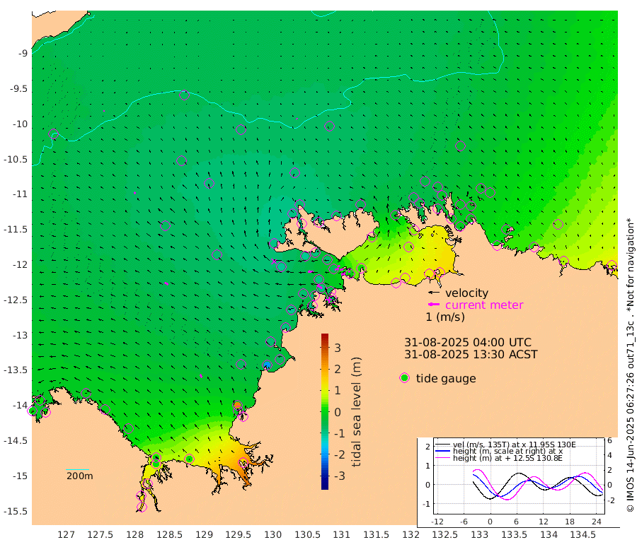 37cm/s -103T +4cm/s rms + 6cm/s 51T. Darwin_C1 52m 19cm/s -82T +4cm/s rms + 7cm/s -161T. Darwin_CW1 22m 33cm/s -106T +4cm/s rms + 8cm/s 61T. Darwin_CW2 34m 4cm/s -62T +3cm/s rms + 9cm/s 98T. Darwin_CW3 22m 30cm/s -96T +5cm/s rms + 7cm/s 88T. Darwin_C3 56m 21cm/s -116T +2cm/s rms + 9cm/s -126T. Darwin_CTbW 22m 7cm/s -43T +9cm/s rms + 2cm/s -110T. NWSLYN 196m 51cm/s -88T +1cm/s rms + 1cm/s -47T. DARBGF 30m 7cm/s -106T +7cm/s rms + 2cm/s -137T. ITFTIS 464m 16cm/s -28T +9cm/s rms + 1cm/s 74T. ITFMHB 146m 29cm/s -29T +4cm/s rms + 1cm/s -134T. ITFJBG 61m 33cm/s -52T +6cm/s rms + 4cm/s 121T. ITFFTB 108m 56cm/s -57T +4cm/s rms + 3cm/s 80T. NRSDAR 19m 13cm Carronade Island 8cm Guy Point 19cm Napier Broome Bay -9cm Lesueur Island -9cm Reveley Island -2cm Rocky Island 22cm Cape Domett 16cm Lacrosse Island 64cm Adolphus Island 121cm Pender Point 158cm Wyndham -70cm The Boxers -67cm Unnamed Shoal -70cm Loxton Shoal 11cm Pelican Island -86cm Calder Shoal -71cm Evans Shoal 124cm Quoin Island -42cm Port Keats -30cm Jones Point 236cm Catfish Island -69cm Cape Scott Offshore -195cm Cape Ford -76cm Anson Bay -79cm Goodrich Bank -80cm Peron Island North -98cm Point Jenny -102cm Native Point -88cm Fish Reef -99cm Tapa Bay -101cm Point Fawcett (Offshore) -91cm Burge Point -108cm Munkunuwa -103cm Beagle A -79cm Parsons Bank -90cm Fenton Patches -61cm Lynedoch Bank -68cm Hancox Shoal Area -78cm Nightcliff -74cm Darwin -91cm Charles Point Patches -8cm Glyde Point 67cm Chambers Bay 92cm Point Stuart 21cm Cape Hotham 52cm Christine Reef 108cm West Alligator Head 139cm East Field Island 49cm Two Hills Bay -90cm Newby Shoal 33cm Camp Point -94cm Medina Inlet South -103cm South Barlow Point -101cm St. Asaph Bay -83cm Cape Van Dieman -80cm Snake Bay -73cm Cache Point -53cm Echo Shoal -59cm Point Jahleel (Off) -25cm Cape Don -48cm Port Essington -52cm Smith Point - West -45cm NW Peacock Island -49cm North Of Jones Shoal -15cm Peacock Island -18cm Point David -45cm D'urville Point -33cm Money Shoal -13cm Copeland Island -13cm Cape Cockburn -17cm One Tree Point -14cm Hogmany Shoal -15cm New Year Island - West -16cm Grant Island 14cm Aurari Bay 31cm Cuthbert Point 5cm North Goulburn Island 44cm Paxie Shoal 58cm Entrance Island 98cm Yabooma Island