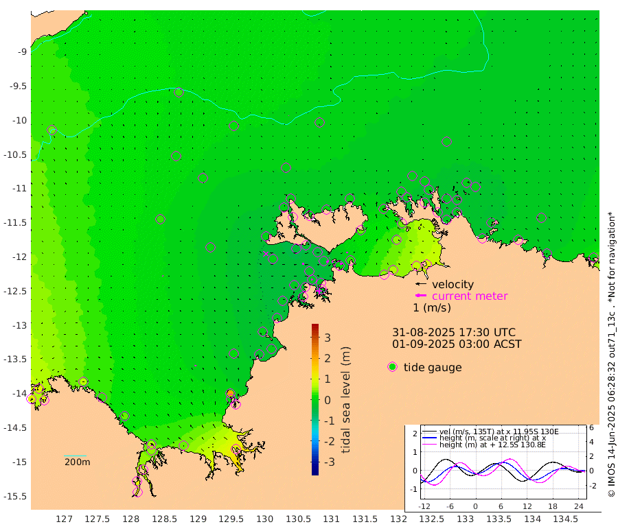 8cm/s -109T +4cm/s rms + 6cm/s 51T. Darwin_C1 52m 23cm/s 91T +4cm/s rms + 7cm/s -161T. Darwin_CW1 22m 22cm/s -113T +4cm/s rms + 8cm/s 61T. Darwin_CW2 34m 8cm/s -1T +3cm/s rms + 9cm/s 98T. Darwin_CW3 22m 12cm/s -100T +5cm/s rms + 7cm/s 88T. Darwin_C3 56m 4cm/s -139T +2cm/s rms + 9cm/s -126T. Darwin_CTbW 22m 1cm/s 66T +9cm/s rms + 2cm/s -110T. NWSLYN 196m 15cm/s -90T +1cm/s rms + 1cm/s -47T. DARBGF 30m 1cm/s 151T +7cm/s rms + 2cm/s -137T. ITFTIS 464m 2cm/s 152T +9cm/s rms + 1cm/s 74T. ITFMHB 146m 13cm/s -16T +4cm/s rms + 1cm/s -134T. ITFJBG 61m 7cm/s -29T +6cm/s rms + 4cm/s 121T. ITFFTB 108m 15cm/s -65T +4cm/s rms + 3cm/s 80T. NRSDAR 19m 101cm Carronade Island 103cm Guy Point 105cm Napier Broome Bay 78cm Lesueur Island 37cm Reveley Island 26cm Rocky Island 47cm Cape Domett 56cm Lacrosse Island 59cm Adolphus Island 102cm Pender Point 130cm Wyndham 23cm The Boxers 5cm Unnamed Shoal 23cm Loxton Shoal 35cm Pelican Island 15cm Calder Shoal 13cm Evans Shoal 85cm Quoin Island 3cm Port Keats 7cm Jones Point 193cm Catfish Island 2cm Cape Scott Offshore -32cm Cape Ford -11cm Anson Bay -1cm Goodrich Bank -11cm Peron Island North -14cm Point Jenny -17cm Native Point -12cm Fish Reef -19cm Tapa Bay -1cm Point Fawcett (Offshore) -26cm Burge Point -37cm Munkunuwa -9cm Beagle A -38cm Parsons Bank -18cm Fenton Patches 3cm Lynedoch Bank -23cm Hancox Shoal Area -22cm Nightcliff -27cm Darwin -22cm Charles Point Patches 13cm Glyde Point 54cm Chambers Bay 64cm Point Stuart 26cm Cape Hotham 46cm Christine Reef 75cm West Alligator Head 95cm East Field Island 41cm Two Hills Bay 7cm Newby Shoal 35cm Camp Point -25cm Medina Inlet South -22cm South Barlow Point -6cm St. Asaph Bay -4cm Cape Van Dieman -10cm Snake Bay 5cm Cache Point 42cm Echo Shoal 3cm Point Jahleel (Off) 4cm Cape Don -7cm Port Essington -7cm Smith Point - West -9cm NW Peacock Island -1cm North Of Jones Shoal -2cm Peacock Island -17cm Point David -13cm D'urville Point -9cm Money Shoal -17cm Copeland Island -19cm Cape Cockburn -13cm One Tree Point -10cm Hogmany Shoal -10cm New Year Island - West -15cm Grant Island -10cm Aurari Bay -10cm Cuthbert Point -14cm North Goulburn Island -4cm Paxie Shoal -12cm Entrance Island -8cm Yabooma Island