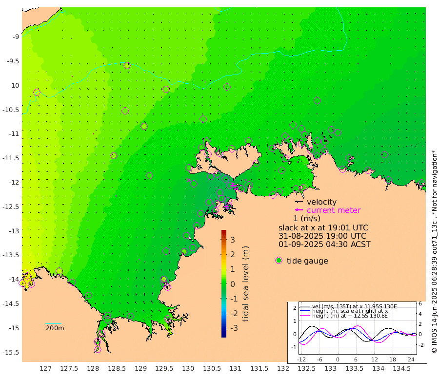 49cm/s -103T +4cm/s rms + 6cm/s 51T. Darwin_C1 52m 3cm/s -91T +4cm/s rms + 7cm/s -161T. Darwin_CW1 22m 35cm/s -109T +4cm/s rms + 8cm/s 61T. Darwin_CW2 34m 17cm/s -118T +3cm/s rms + 9cm/s 98T. Darwin_CW3 22m 36cm/s -92T +5cm/s rms + 7cm/s 88T. Darwin_C3 56m 32cm/s -116T +2cm/s rms + 9cm/s -126T. Darwin_CTbW 22m 3cm/s 109T +9cm/s rms + 2cm/s -110T. NWSLYN 196m 6cm/s -101T +1cm/s rms + 1cm/s -47T. DARBGF 30m 6cm/s 47T +7cm/s rms + 2cm/s -137T. ITFTIS 464m 6cm/s 79T +9cm/s rms + 1cm/s 74T. ITFMHB 146m 7cm/s 21T +4cm/s rms + 1cm/s -134T. ITFJBG 61m 8cm/s 66T +6cm/s rms + 4cm/s 121T. ITFFTB 108m 6cm/s -117T +4cm/s rms + 3cm/s 80T. NRSDAR 19m 105cm Carronade Island 105cm Guy Point 107cm Napier Broome Bay 76cm Lesueur Island 14cm Reveley Island 8cm Rocky Island 1cm Cape Domett 16cm Lacrosse Island -7cm Adolphus Island 31cm Pender Point 46cm Wyndham 49cm The Boxers 35cm Unnamed Shoal 57cm Loxton Shoal -17cm Pelican Island 49cm Calder Shoal 44cm Evans Shoal -15cm Quoin Island -21cm Port Keats -14cm Jones Point 46cm Catfish Island -6cm Cape Scott Offshore 37cm Cape Ford -19cm Anson Bay 33cm Goodrich Bank -9cm Peron Island North -7cm Point Jenny -7cm Native Point -6cm Fish Reef -16cm Tapa Bay 23cm Point Fawcett (Offshore) -19cm Burge Point -26cm Munkunuwa 9cm Beagle A -39cm Parsons Bank -13cm Fenton Patches 32cm Lynedoch Bank -33cm Hancox Shoal Area -31cm Nightcliff -33cm Darwin -18cm Charles Point Patches -8cm Glyde Point 5cm Chambers Bay 11cm Point Stuart -1cm Cape Hotham 3cm Christine Reef 12cm West Alligator Head 25cm East Field Island 5cm Two Hills Bay 32cm Newby Shoal 8cm Camp Point -19cm Medina Inlet South 8cm South Barlow Point 26cm St. Asaph Bay 31cm Cape Van Dieman 24cm Snake Bay 34cm Cache Point 72cm Echo Shoal 24cm Point Jahleel (Off) 5cm Cape Don 11cm Port Essington 8cm Smith Point - West 7cm NW Peacock Island 19cm North Of Jones Shoal 5cm Peacock Island -11cm Point David 2cm D'urville Point 8cm Money Shoal -13cm Copeland Island -13cm Cape Cockburn -6cm One Tree Point -7cm Hogmany Shoal -3cm New Year Island - West -10cm Grant Island -19cm Aurari Bay -28cm Cuthbert Point -19cm North Goulburn Island -26cm Paxie Shoal -41cm Entrance Island -53cm Yabooma Island