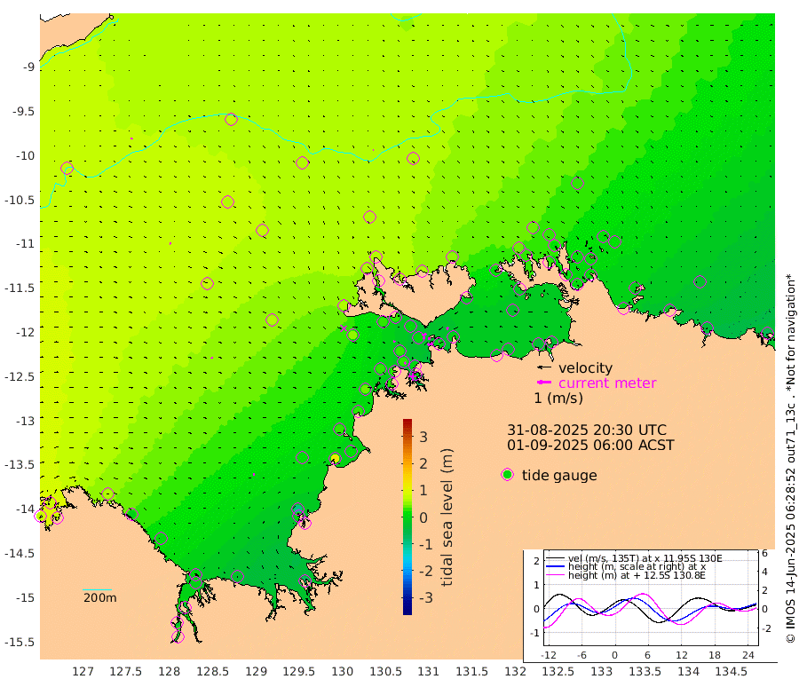 41cm/s -101T +4cm/s rms + 6cm/s 51T. Darwin_C1 52m 8cm/s -92T +4cm/s rms + 7cm/s -161T. Darwin_CW1 22m 14cm/s -109T +4cm/s rms + 8cm/s 61T. Darwin_CW2 34m 17cm/s -131T +3cm/s rms + 9cm/s 98T. Darwin_CW3 22m 20cm/s -91T +5cm/s rms + 7cm/s 88T. Darwin_C3 56m 31cm/s -115T +2cm/s rms + 9cm/s -126T. Darwin_CTbW 22m 5cm/s 112T +9cm/s rms + 2cm/s -110T. NWSLYN 196m 13cm/s 96T +1cm/s rms + 1cm/s -47T. DARBGF 30m 9cm/s 41T +7cm/s rms + 2cm/s -137T. ITFTIS 464m 8cm/s 74T +9cm/s rms + 1cm/s 74T. ITFMHB 146m 8cm/s 103T +4cm/s rms + 1cm/s -134T. ITFJBG 61m 15cm/s 93T +6cm/s rms + 4cm/s 121T. ITFFTB 108m 14cm/s 140T +4cm/s rms + 3cm/s 80T. NRSDAR 19m 72cm Carronade Island 72cm Guy Point 73cm Napier Broome Bay 63cm Lesueur Island 11cm Reveley Island 0cm Rocky Island -11cm Cape Domett 1cm Lacrosse Island -35cm Adolphus Island -28cm Pender Point -33cm Wyndham 70cm The Boxers 66cm Unnamed Shoal 77cm Loxton Shoal -25cm Pelican Island 78cm Calder Shoal 65cm Evans Shoal -71cm Quoin Island 0cm Port Keats 3cm Jones Point -95cm Catfish Island 19cm Cape Scott Offshore 122cm Cape Ford 13cm Anson Bay 64cm Goodrich Bank 27cm Peron Island North 32cm Point Jenny 34cm Native Point 32cm Fish Reef 26cm Tapa Bay 59cm Point Fawcett (Offshore) 28cm Burge Point 24cm Munkunuwa 49cm Beagle A 7cm Parsons Bank 28cm Fenton Patches 57cm Lynedoch Bank 2cm Hancox Shoal Area 6cm Nightcliff 10cm Darwin 27cm Charles Point Patches -1cm Glyde Point -27cm Chambers Bay -31cm Point Stuart -7cm Cape Hotham -24cm Christine Reef -38cm West Alligator Head -41cm East Field Island -16cm Two Hills Bay 67cm Newby Shoal -4cm Camp Point 26cm Medina Inlet South 54cm South Barlow Point 64cm St. Asaph Bay 64cm Cape Van Dieman 61cm Snake Bay 62cm Cache Point 78cm Echo Shoal 48cm Point Jahleel (Off) 20cm Cape Don 37cm Port Essington 33cm Smith Point - West 32cm NW Peacock Island 41cm North Of Jones Shoal 13cm Peacock Island 13cm Point David 28cm D'urville Point 32cm Money Shoal 7cm Copeland Island 13cm Cape Cockburn 15cm One Tree Point 14cm Hogmany Shoal 17cm New Year Island - West 12cm Grant Island -8cm Aurari Bay -22cm Cuthbert Point -2cm North Goulburn Island -25cm Paxie Shoal -40cm Entrance Island -66cm Yabooma Island