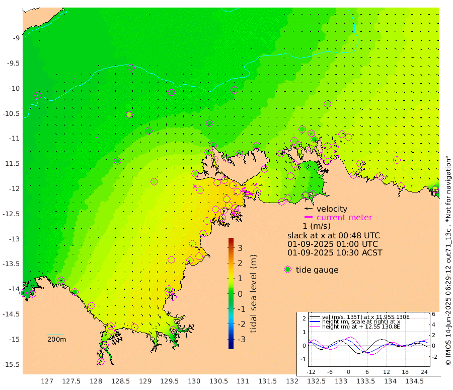 86cm/s 78T +4cm/s rms + 6cm/s 51T. Darwin_C1 52m 36cm/s 87T +4cm/s rms + 7cm/s -161T. Darwin_CW1 22m 44cm/s 75T +4cm/s rms + 8cm/s 61T. Darwin_CW2 34m 44cm/s 46T +3cm/s rms + 9cm/s 98T. Darwin_CW3 22m 68cm/s 90T +5cm/s rms + 7cm/s 88T. Darwin_C3 56m 53cm/s 64T +2cm/s rms + 9cm/s -126T. Darwin_CTbW 22m 3cm/s 39T +9cm/s rms + 2cm/s -110T. NWSLYN 196m 10cm/s 72T +1cm/s rms + 1cm/s -47T. DARBGF 30m 5cm/s -39T +7cm/s rms + 2cm/s -137T. ITFTIS 464m 8cm/s -20T +9cm/s rms + 1cm/s 74T. ITFMHB 146m 6cm/s -97T +4cm/s rms + 1cm/s -134T. ITFJBG 61m 9cm/s -62T +6cm/s rms + 4cm/s 121T. ITFFTB 108m 7cm/s 71T +4cm/s rms + 3cm/s 80T. NRSDAR 19m -29cm Carronade Island -29cm Guy Point -25cm Napier Broome Bay 28cm Lesueur Island 70cm Reveley Island 21cm Rocky Island 99cm Cape Domett 87cm Lacrosse Island 104cm Adolphus Island 69cm Pender Point 59cm Wyndham 21cm The Boxers 47cm Unnamed Shoal -2cm Loxton Shoal 107cm Pelican Island 17cm Calder Shoal 2cm Evans Shoal 119cm Quoin Island 110cm Port Keats 100cm Jones Point 47cm Catfish Island 84cm Cape Scott Offshore 57cm Cape Ford 98cm Anson Bay 17cm Goodrich Bank 87cm Peron Island North 78cm Point Jenny 79cm Native Point 79cm Fish Reef 94cm Tapa Bay 42cm Point Fawcett (Offshore) 99cm Burge Point 87cm Munkunuwa 63cm Beagle A 111cm Parsons Bank 91cm Fenton Patches 16cm Lynedoch Bank 107cm Hancox Shoal Area 110cm Nightcliff 119cm Darwin 104cm Charles Point Patches 83cm Glyde Point 60cm Chambers Bay 56cm Point Stuart 72cm Cape Hotham 58cm Christine Reef 56cm West Alligator Head 44cm East Field Island 61cm Two Hills Bay 53cm Newby Shoal 60cm Camp Point 94cm Medina Inlet South 49cm South Barlow Point 28cm St. Asaph Bay 19cm Cape Van Dieman 32cm Snake Bay 19cm Cache Point -21cm Echo Shoal 29cm Point Jahleel (Off) 51cm Cape Don 39cm Port Essington 39cm Smith Point - West 42cm NW Peacock Island 31cm North Of Jones Shoal 13cm Peacock Island 64cm Point David 46cm D'urville Point 42cm Money Shoal 63cm Copeland Island 80cm Cape Cockburn 60cm One Tree Point 74cm Hogmany Shoal 63cm New Year Island - West 67cm Grant Island 72cm Aurari Bay 79cm Cuthbert Point 74cm North Goulburn Island 84cm Paxie Shoal 93cm Entrance Island 98cm Yabooma Island