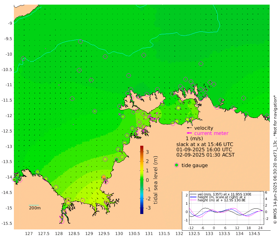 92cm/s 78T +4cm/s rms + 6cm/s 51T. Darwin_C1 52m 61cm/s 91T +4cm/s rms + 7cm/s -161T. Darwin_CW1 22m 32cm/s 72T +4cm/s rms + 8cm/s 61T. Darwin_CW2 34m 43cm/s 51T +3cm/s rms + 9cm/s 98T. Darwin_CW3 22m 45cm/s 90T +5cm/s rms + 7cm/s 88T. Darwin_C3 56m 60cm/s 66T +2cm/s rms + 9cm/s -126T. Darwin_CTbW 22m 1cm/s -51T +9cm/s rms + 2cm/s -110T. NWSLYN 196m 5cm/s 62T +1cm/s rms + 1cm/s -47T. DARBGF 30m 5cm/s -161T +7cm/s rms + 2cm/s -137T. ITFTIS 464m 11cm/s -167T +9cm/s rms + 1cm/s 74T. ITFMHB 146m 3cm/s -116T +4cm/s rms + 1cm/s -134T. ITFJBG 61m 5cm/s -158T +6cm/s rms + 4cm/s 121T. ITFFTB 108m 5cm/s -7T +4cm/s rms + 3cm/s 80T. NRSDAR 19m 39cm Carronade Island 44cm Guy Point 42cm Napier Broome Bay 48cm Lesueur Island 59cm Reveley Island 50cm Rocky Island 83cm Cape Domett 81cm Lacrosse Island 96cm Adolphus Island 91cm Pender Point 102cm Wyndham 16cm The Boxers 1cm Unnamed Shoal 0cm Loxton Shoal 89cm Pelican Island 6cm Calder Shoal 0cm Evans Shoal 123cm Quoin Island 67cm Port Keats 56cm Jones Point 186cm Catfish Island 56cm Cape Scott Offshore -13cm Cape Ford 56cm Anson Bay -5cm Goodrich Bank 41cm Peron Island North 46cm Point Jenny 43cm Native Point 40cm Fish Reef 48cm Tapa Bay 22cm Point Fawcett (Offshore) 37cm Burge Point 30cm Munkunuwa 35cm Beagle A 36cm Parsons Bank 45cm Fenton Patches -6cm Lynedoch Bank 50cm Hancox Shoal Area 57cm Nightcliff 44cm Darwin 41cm Charles Point Patches 49cm Glyde Point 67cm Chambers Bay 63cm Point Stuart 47cm Cape Hotham 66cm Christine Reef 73cm West Alligator Head 76cm East Field Island 51cm Two Hills Bay 28cm Newby Shoal 44cm Camp Point 38cm Medina Inlet South 6cm South Barlow Point 7cm St. Asaph Bay -6cm Cape Van Dieman -9cm Snake Bay 0cm Cache Point 4cm Echo Shoal 5cm Point Jahleel (Off) 20cm Cape Don 0cm Port Essington 6cm Smith Point - West 1cm NW Peacock Island 1cm North Of Jones Shoal 0cm Peacock Island -4cm Point David 2cm D'urville Point -5cm Money Shoal -2cm Copeland Island -2cm Cape Cockburn -1cm One Tree Point 2cm Hogmany Shoal 1cm New Year Island - West 0cm Grant Island 8cm Aurari Bay 14cm Cuthbert Point 4cm North Goulburn Island 14cm Paxie Shoal 13cm Entrance Island 18cm Yabooma Island