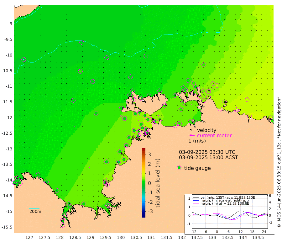 38cm/s 78T +4cm/s rms + 6cm/s 51T. Darwin_C1 52m 9cm/s -73T +4cm/s rms + 7cm/s -161T. Darwin_CW1 22m 3cm/s -117T +4cm/s rms + 8cm/s 61T. Darwin_CW2 34m 14cm/s 49T +3cm/s rms + 9cm/s 98T. Darwin_CW3 22m 11cm/s -97T +5cm/s rms + 7cm/s 88T. Darwin_C3 56m 32cm/s 62T +2cm/s rms + 9cm/s -126T. Darwin_CTbW 22m 1cm/s 124T +9cm/s rms + 2cm/s -110T. NWSLYN 196m 4cm/s -97T +1cm/s rms + 1cm/s -47T. DARBGF 30m 3cm/s -40T +7cm/s rms + 2cm/s -137T. ITFTIS 464m 7cm/s -6T +9cm/s rms + 1cm/s 74T. ITFMHB 146m 3cm/s -5T +4cm/s rms + 1cm/s -134T. ITFJBG 61m 4cm/s -43T +6cm/s rms + 4cm/s 121T. ITFFTB 108m 5cm/s -50T +4cm/s rms + 3cm/s 80T. NRSDAR 19m -1cm Carronade Island -2cm Guy Point 1cm Napier Broome Bay 9cm Lesueur Island 9cm Reveley Island -25cm Rocky Island 4cm Cape Domett 7cm Lacrosse Island 5cm Adolphus Island 3cm Pender Point 12cm Wyndham -2cm The Boxers 27cm Unnamed Shoal -15cm Loxton Shoal 11cm Pelican Island -9cm Calder Shoal -11cm Evans Shoal 11cm Quoin Island 3cm Port Keats 6cm Jones Point 37cm Catfish Island 8cm Cape Scott Offshore -51cm Cape Ford 13cm Anson Bay -2cm Goodrich Bank 6cm Peron Island North 4cm Point Jenny 5cm Native Point -3cm Fish Reef 8cm Tapa Bay -4cm Point Fawcett (Offshore) 1cm Burge Point -4cm Munkunuwa -4cm Beagle A 14cm Parsons Bank 2cm Fenton Patches 1cm Lynedoch Bank 19cm Hancox Shoal Area 16cm Nightcliff 11cm Darwin 4cm Charles Point Patches 20cm Glyde Point 28cm Chambers Bay 31cm Point Stuart 25cm Cape Hotham 27cm Christine Reef 32cm West Alligator Head 31cm East Field Island 29cm Two Hills Bay 0cm Newby Shoal 24cm Camp Point 1cm Medina Inlet South -2cm South Barlow Point -7cm St. Asaph Bay 0cm Cape Van Dieman 7cm Snake Bay 2cm Cache Point -17cm Echo Shoal 8cm Point Jahleel (Off) 20cm Cape Don 16cm Port Essington 18cm Smith Point - West 24cm NW Peacock Island 14cm North Of Jones Shoal 7cm Peacock Island 48cm Point David 27cm D'urville Point 26cm Money Shoal 48cm Copeland Island 57cm Cape Cockburn 40cm One Tree Point 60cm Hogmany Shoal 46cm New Year Island - West 48cm Grant Island 58cm Aurari Bay 64cm Cuthbert Point 55cm North Goulburn Island 69cm Paxie Shoal 76cm Entrance Island 87cm Yabooma Island