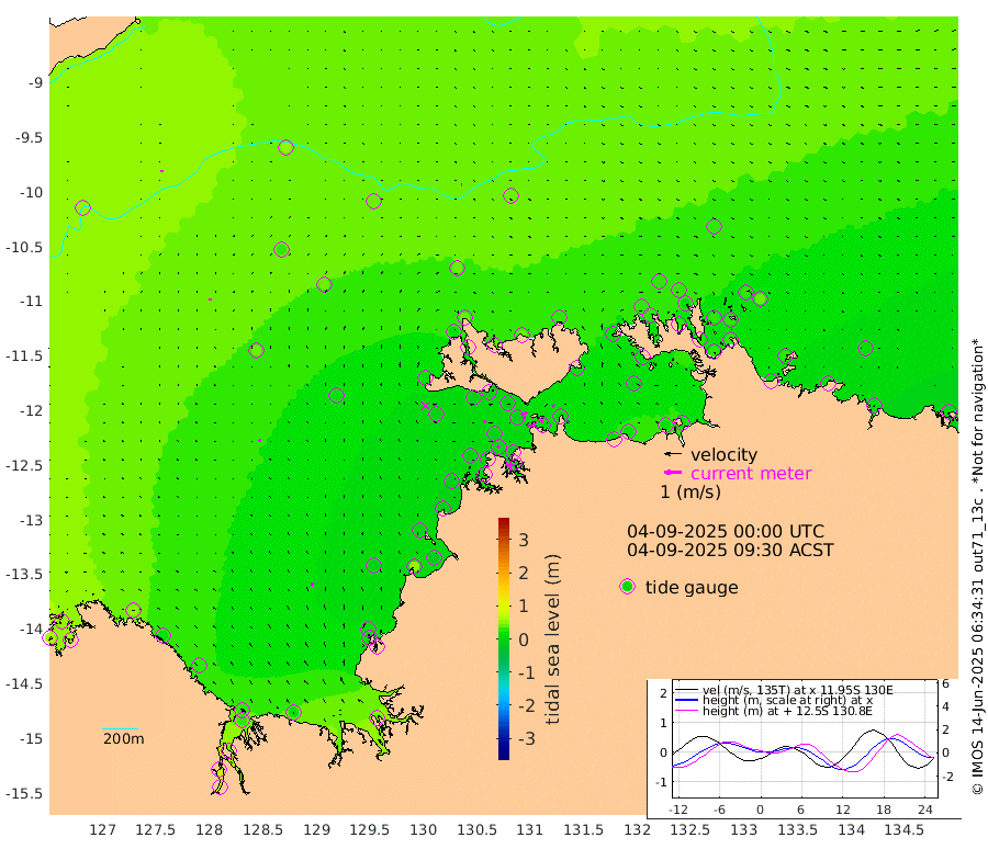 51cm/s -103T +4cm/s rms + 6cm/s 51T. Darwin_C1 52m 24cm/s -86T +4cm/s rms + 7cm/s -161T. Darwin_CW1 22m 16cm/s -115T +4cm/s rms + 8cm/s 61T. Darwin_CW2 34m 18cm/s -127T +3cm/s rms + 9cm/s 98T. Darwin_CW3 22m 1cm/s 101T +5cm/s rms + 7cm/s 88T. Darwin_C3 56m 37cm/s -115T +2cm/s rms + 9cm/s -126T. Darwin_CTbW 22m 4cm/s 107T +9cm/s rms + 2cm/s -110T. NWSLYN 196m 19cm/s -84T +1cm/s rms + 1cm/s -47T. DARBGF 30m 6cm/s 3T +7cm/s rms + 2cm/s -137T. ITFTIS 464m 11cm/s 7T +9cm/s rms + 1cm/s 74T. ITFMHB 146m 18cm/s -25T +4cm/s rms + 1cm/s -134T. ITFJBG 61m 16cm/s -28T +6cm/s rms + 4cm/s 121T. ITFFTB 108m 20cm/s -59T +4cm/s rms + 3cm/s 80T. NRSDAR 19m 56cm Carronade Island 60cm Guy Point 62cm Napier Broome Bay 51cm Lesueur Island 28cm Reveley Island 22cm Rocky Island 33cm Cape Domett 24cm Lacrosse Island 42cm Adolphus Island 73cm Pender Point 76cm Wyndham 39cm The Boxers 31cm Unnamed Shoal 54cm Loxton Shoal 18cm Pelican Island 38cm Calder Shoal 42cm Evans Shoal 40cm Quoin Island 5cm Port Keats 10cm Jones Point 1cm Catfish Island -3cm Cape Scott Offshore 54cm Cape Ford -11cm Anson Bay 38cm Goodrich Bank 4cm Peron Island North -8cm Point Jenny -6cm Native Point -6cm Fish Reef -6cm Tapa Bay 13cm Point Fawcett (Offshore) -4cm Burge Point -9cm Munkunuwa -5cm Beagle A -3cm Parsons Bank -11cm Fenton Patches 40cm Lynedoch Bank -5cm Hancox Shoal Area -21cm Nightcliff 3cm Darwin 10cm Charles Point Patches 9cm Glyde Point 10cm Chambers Bay 16cm Point Stuart 10cm Cape Hotham 8cm Christine Reef 15cm West Alligator Head 20cm East Field Island 15cm Two Hills Bay 21cm Newby Shoal 19cm Camp Point -1cm Medina Inlet South 18cm South Barlow Point 21cm St. Asaph Bay 35cm Cape Van Dieman 37cm Snake Bay 35cm Cache Point 49cm Echo Shoal 30cm Point Jahleel (Off) 21cm Cape Don 32cm Port Essington 26cm Smith Point - West 30cm NW Peacock Island 29cm North Of Jones Shoal 10cm Peacock Island 28cm Point David 27cm D'urville Point 33cm Money Shoal 24cm Copeland Island 31cm Cape Cockburn 28cm One Tree Point 43cm Hogmany Shoal 29cm New Year Island - West 31cm Grant Island 13cm Aurari Bay 20cm Cuthbert Point 23cm North Goulburn Island 21cm Paxie Shoal 18cm Entrance Island 7cm Yabooma Island
