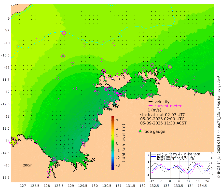 77cm/s -101T +4cm/s rms + 6cm/s 51T. Darwin_C1 52m 69cm/s -90T +4cm/s rms + 7cm/s -161T. Darwin_CW1 22m 42cm/s -108T +4cm/s rms + 8cm/s 61T. Darwin_CW2 34m 39cm/s -136T +3cm/s rms + 9cm/s 98T. Darwin_CW3 22m 53cm/s -91T +5cm/s rms + 7cm/s 88T. Darwin_C3 56m 44cm/s -115T +2cm/s rms + 9cm/s -126T. Darwin_CTbW 22m 7cm/s 144T +9cm/s rms + 2cm/s -110T. NWSLYN 196m 18cm/s -95T +1cm/s rms + 1cm/s -47T. DARBGF 30m 4cm/s 26T +7cm/s rms + 2cm/s -137T. ITFTIS 464m 8cm/s 26T +9cm/s rms + 1cm/s 74T. ITFMHB 146m 16cm/s -7T +4cm/s rms + 1cm/s -134T. ITFJBG 61m 8cm/s 3T +6cm/s rms + 4cm/s 121T. ITFFTB 108m 18cm/s -68T +4cm/s rms + 3cm/s 80T. NRSDAR 19m 69cm Carronade Island 72cm Guy Point 76cm Napier Broome Bay 20cm Lesueur Island -38cm Reveley Island -15cm Rocky Island -74cm Cape Domett -71cm Lacrosse Island -73cm Adolphus Island -28cm Pender Point -17cm Wyndham 31cm The Boxers 25cm Unnamed Shoal 61cm Loxton Shoal -89cm Pelican Island 33cm Calder Shoal 49cm Evans Shoal -98cm Quoin Island -97cm Port Keats -89cm Jones Point -78cm Catfish Island -66cm Cape Scott Offshore -34cm Cape Ford -80cm Anson Bay 41cm Goodrich Bank -58cm Peron Island North -63cm Point Jenny -61cm Native Point -72cm Fish Reef -73cm Tapa Bay -12cm Point Fawcett (Offshore) -83cm Burge Point -75cm Munkunuwa -55cm Beagle A -75cm Parsons Bank -85cm Fenton Patches 45cm Lynedoch Bank -76cm Hancox Shoal Area -97cm Nightcliff -86cm Darwin -70cm Charles Point Patches -56cm Glyde Point -44cm Chambers Bay -35cm Point Stuart -45cm Cape Hotham -36cm Christine Reef -41cm West Alligator Head -37cm East Field Island -26cm Two Hills Bay -9cm Newby Shoal -29cm Camp Point -72cm Medina Inlet South -3cm South Barlow Point 10cm St. Asaph Bay 39cm Cape Van Dieman 38cm Snake Bay 38cm Cache Point 63cm Echo Shoal 27cm Point Jahleel (Off) 5cm Cape Don 30cm Port Essington 28cm Smith Point - West 33cm NW Peacock Island 33cm North Of Jones Shoal 11cm Peacock Island 30cm Point David 30cm D'urville Point 36cm Money Shoal 26cm Copeland Island 31cm Cape Cockburn 28cm One Tree Point 46cm Hogmany Shoal 29cm New Year Island - West 31cm Grant Island 10cm Aurari Bay 16cm Cuthbert Point 19cm North Goulburn Island 9cm Paxie Shoal 4cm Entrance Island -11cm Yabooma Island