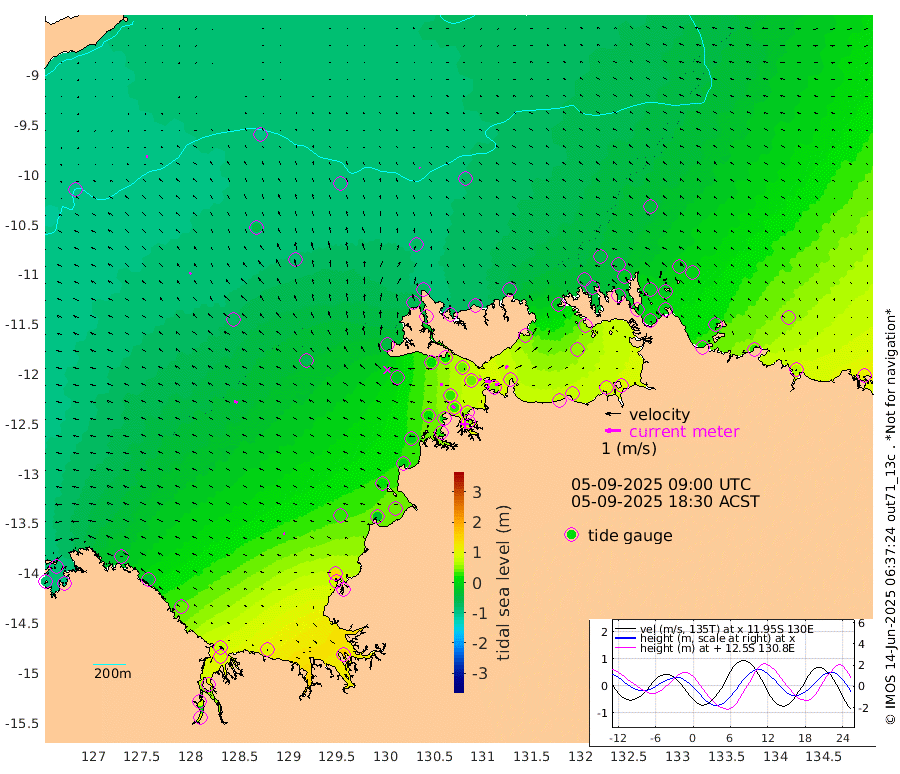 11cm/s 90T +4cm/s rms + 6cm/s 51T. Darwin_C1 52m 22cm/s 93T +4cm/s rms + 7cm/s -161T. Darwin_CW1 22m 22cm/s 63T +4cm/s rms + 8cm/s 61T. Darwin_CW2 34m 24cm/s 34T +3cm/s rms + 9cm/s 98T. Darwin_CW3 22m 31cm/s 89T +5cm/s rms + 7cm/s 88T. Darwin_C3 56m 1cm/s -130T +2cm/s rms + 9cm/s -126T. Darwin_CTbW 22m 8cm/s -28T +9cm/s rms + 2cm/s -110T. NWSLYN 196m 20cm/s -81T +1cm/s rms + 1cm/s -47T. DARBGF 30m 7cm/s -96T +7cm/s rms + 2cm/s -137T. ITFTIS 464m 14cm/s -36T +9cm/s rms + 1cm/s 74T. ITFMHB 146m 11cm/s -69T +4cm/s rms + 1cm/s -134T. ITFJBG 61m 23cm/s -60T +6cm/s rms + 4cm/s 121T. ITFFTB 108m 26cm/s -55T +4cm/s rms + 3cm/s 80T. NRSDAR 19m -86cm Carronade Island -88cm Guy Point -97cm Napier Broome Bay -26cm Lesueur Island 34cm Reveley Island -34cm Rocky Island 80cm Cape Domett 73cm Lacrosse Island 102cm Adolphus Island 89cm Pender Point 91cm Wyndham -72cm The Boxers -48cm Unnamed Shoal -97cm Loxton Shoal 99cm Pelican Island -81cm Calder Shoal -84cm Evans Shoal 158cm Quoin Island 69cm Port Keats 81cm Jones Point 144cm Catfish Island 24cm Cape Scott Offshore -30cm Cape Ford 36cm Anson Bay -73cm Goodrich Bank 14cm Peron Island North -1cm Point Jenny -2cm Native Point 14cm Fish Reef 20cm Tapa Bay -46cm Point Fawcett (Offshore) 28cm Burge Point 14cm Munkunuwa -14cm Beagle A 35cm Parsons Bank 27cm Fenton Patches -68cm Lynedoch Bank 45cm Hancox Shoal Area 45cm Nightcliff 53cm Darwin 31cm Charles Point Patches 52cm Glyde Point 72cm Chambers Bay 78cm Point Stuart 57cm Cape Hotham 50cm Christine Reef 88cm West Alligator Head 100cm East Field Island 48cm Two Hills Bay -59cm Newby Shoal 51cm Camp Point 19cm Medina Inlet South -50cm South Barlow Point -62cm St. Asaph Bay -73cm Cape Van Dieman -67cm Snake Bay -70cm Cache Point -92cm Echo Shoal -50cm Point Jahleel (Off) -16cm Cape Don -42cm Port Essington -46cm Smith Point - West -42cm NW Peacock Island -51cm North Of Jones Shoal -15cm Peacock Island -8cm Point David -39cm D'urville Point -34cm Money Shoal -3cm Copeland Island -10cm Cape Cockburn -15cm One Tree Point -9cm Hogmany Shoal -12cm New Year Island - West -12cm Grant Island 22cm Aurari Bay 26cm Cuthbert Point 10cm North Goulburn Island 46cm Paxie Shoal 62cm Entrance Island 103cm Yabooma Island