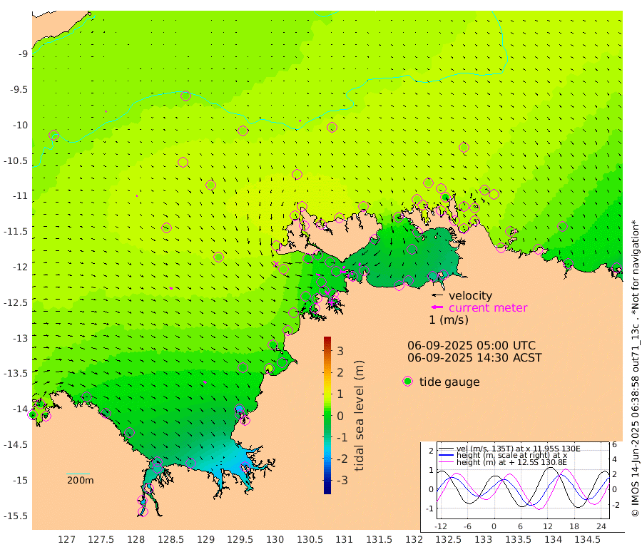 12cm/s 80T +4cm/s rms + 6cm/s 51T. Darwin_C1 52m 17cm/s -81T +4cm/s rms + 7cm/s -161T. Darwin_CW1 22m 12cm/s -111T +4cm/s rms + 8cm/s 61T. Darwin_CW2 34m 26cm/s -147T +3cm/s rms + 9cm/s 98T. Darwin_CW3 22m 41cm/s -91T +5cm/s rms + 7cm/s 88T. Darwin_C3 56m 23cm/s 58T +2cm/s rms + 9cm/s -126T. Darwin_CTbW 22m 11cm/s 151T +9cm/s rms + 2cm/s -110T. NWSLYN 196m 36cm/s 98T +1cm/s rms + 1cm/s -47T. DARBGF 30m 7cm/s 46T +7cm/s rms + 2cm/s -137T. ITFTIS 464m 9cm/s 110T +9cm/s rms + 1cm/s 74T. ITFMHB 146m 28cm/s 132T +4cm/s rms + 1cm/s -134T. ITFJBG 61m 30cm/s 120T +6cm/s rms + 4cm/s 121T. ITFFTB 108m 38cm/s 129T +4cm/s rms + 3cm/s 80T. NRSDAR 19m 9cm Carronade Island 6cm Guy Point 7cm Napier Broome Bay -10cm Lesueur Island -48cm Reveley Island -52cm Rocky Island -109cm Cape Domett -91cm Lacrosse Island -152cm Adolphus Island -177cm Pender Point -189cm Wyndham 49cm The Boxers 71cm Unnamed Shoal 43cm Loxton Shoal -94cm Pelican Island 52cm Calder Shoal 50cm Evans Shoal -213cm Quoin Island -55cm Port Keats -49cm Jones Point -174cm Catfish Island 2cm Cape Scott Offshore 59cm Cape Ford 8cm Anson Bay 62cm Goodrich Bank 14cm Peron Island North 34cm Point Jenny 36cm Native Point 19cm Fish Reef 24cm Tapa Bay 57cm Point Fawcett (Offshore) 6cm Burge Point 18cm Munkunuwa 38cm Beagle A 8cm Parsons Bank 10cm Fenton Patches 50cm Lynedoch Bank 1cm Hancox Shoal Area -1cm Nightcliff -11cm Darwin 9cm Charles Point Patches -27cm Glyde Point -65cm Chambers Bay -74cm Point Stuart -35cm Cape Hotham -53cm Christine Reef -91cm West Alligator Head -112cm East Field Island -40cm Two Hills Bay 45cm Newby Shoal -38cm Camp Point 12cm Medina Inlet South 58cm South Barlow Point 61cm St. Asaph Bay 68cm Cape Van Dieman 65cm Snake Bay 64cm Cache Point 38cm Echo Shoal 50cm Point Jahleel (Off) 27cm Cape Don 54cm Port Essington 58cm Smith Point - West 59cm NW Peacock Island 54cm North Of Jones Shoal 19cm Peacock Island 57cm Point David 62cm D'urville Point 56cm Money Shoal 54cm Copeland Island 63cm Cape Cockburn 50cm One Tree Point 69cm Hogmany Shoal 54cm New Year Island - West 54cm Grant Island 40cm Aurari Bay 36cm Cuthbert Point 44cm North Goulburn Island 23cm Paxie Shoal 16cm Entrance Island -6cm Yabooma Island