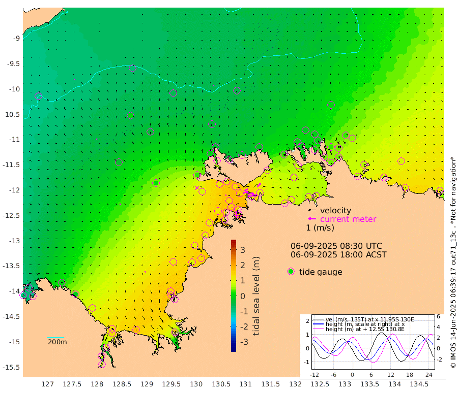 98cm/s 78T +4cm/s rms + 6cm/s 51T. Darwin_C1 52m 69cm/s 93T +4cm/s rms + 7cm/s -161T. Darwin_CW1 22m 60cm/s 71T +4cm/s rms + 8cm/s 61T. Darwin_CW2 34m 66cm/s 41T +3cm/s rms + 9cm/s 98T. Darwin_CW3 22m 85cm/s 89T +5cm/s rms + 7cm/s 88T. Darwin_C3 56m 45cm/s 65T +2cm/s rms + 9cm/s -126T. Darwin_CTbW 22m 4cm/s -7T +9cm/s rms + 2cm/s -110T. NWSLYN 196m 12cm/s 72T +1cm/s rms + 1cm/s -47T. DARBGF 30m 7cm/s -71T +7cm/s rms + 2cm/s -137T. ITFTIS 464m 10cm/s -40T +9cm/s rms + 1cm/s 74T. ITFMHB 146m 12cm/s -154T +4cm/s rms + 1cm/s -134T. ITFJBG 61m 11cm/s -76T +6cm/s rms + 4cm/s 121T. ITFFTB 108m 9cm/s 92T +4cm/s rms + 3cm/s 80T. NRSDAR 19m -98cm Carronade Island -100cm Guy Point -111cm Napier Broome Bay 0cm Lesueur Island 85cm Reveley Island -19cm Rocky Island 137cm Cape Domett 128cm Lacrosse Island 141cm Adolphus Island 82cm Pender Point 68cm Wyndham -31cm The Boxers 5cm Unnamed Shoal -86cm Loxton Shoal 173cm Pelican Island -45cm Calder Shoal -65cm Evans Shoal 180cm Quoin Island 164cm Port Keats 168cm Jones Point 138cm Catfish Island 113cm Cape Scott Offshore 95cm Cape Ford 138cm Anson Bay -39cm Goodrich Bank 105cm Peron Island North 105cm Point Jenny 104cm Native Point 114cm Fish Reef 132cm Tapa Bay 26cm Point Fawcett (Offshore) 138cm Burge Point 115cm Munkunuwa 82cm Beagle A 141cm Parsons Bank 136cm Fenton Patches -46cm Lynedoch Bank 149cm Hancox Shoal Area 156cm Nightcliff 161cm Darwin 139cm Charles Point Patches 120cm Glyde Point 104cm Chambers Bay 97cm Point Stuart 106cm Cape Hotham 86cm Christine Reef 103cm West Alligator Head 97cm East Field Island 80cm Two Hills Bay 16cm Newby Shoal 88cm Camp Point 121cm Medina Inlet South 16cm South Barlow Point -8cm St. Asaph Bay -35cm Cape Van Dieman -28cm Snake Bay -33cm Cache Point -95cm Echo Shoal -12cm Point Jahleel (Off) 30cm Cape Don -1cm Port Essington -2cm Smith Point - West -1cm NW Peacock Island -19cm North Of Jones Shoal -4cm Peacock Island 36cm Point David 6cm D'urville Point 2cm Money Shoal 41cm Copeland Island 43cm Cape Cockburn 26cm One Tree Point 46cm Hogmany Shoal 31cm New Year Island - West 34cm Grant Island 66cm Aurari Bay 73cm Cuthbert Point 56cm North Goulburn Island 90cm Paxie Shoal 108cm Entrance Island 142cm Yabooma Island
