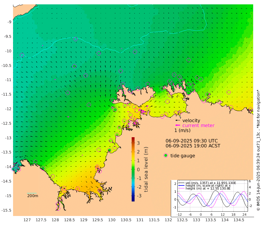 53cm/s 81T +4cm/s rms + 6cm/s 51T. Darwin_C1 52m 47cm/s 93T +4cm/s rms + 7cm/s -161T. Darwin_CW1 22m 44cm/s 68T +4cm/s rms + 8cm/s 61T. Darwin_CW2 34m 47cm/s 40T +3cm/s rms + 9cm/s 98T. Darwin_CW3 22m 66cm/s 89T +5cm/s rms + 7cm/s 88T. Darwin_C3 56m 21cm/s 65T +2cm/s rms + 9cm/s -126T. Darwin_CTbW 22m 8cm/s -22T +9cm/s rms + 2cm/s -110T. NWSLYN 196m 19cm/s -74T +1cm/s rms + 1cm/s -47T. DARBGF 30m 9cm/s -93T +7cm/s rms + 2cm/s -137T. ITFTIS 464m 16cm/s -41T +9cm/s rms + 1cm/s 74T. ITFMHB 146m 14cm/s -74T +4cm/s rms + 1cm/s -134T. ITFJBG 61m 28cm/s -62T +6cm/s rms + 4cm/s 121T. ITFFTB 108m 29cm/s -51T +4cm/s rms + 3cm/s 80T. NRSDAR 19m -93cm Carronade Island -92cm Guy Point -105cm Napier Broome Bay -6cm Lesueur Island 79cm Reveley Island -16cm Rocky Island 146cm Cape Domett 132cm Lacrosse Island 175cm Adolphus Island 147cm Pender Point 146cm Wyndham -66cm The Boxers -41cm Unnamed Shoal -105cm Loxton Shoal 172cm Pelican Island -79cm Calder Shoal -89cm Evans Shoal 241cm Quoin Island 135cm Port Keats 143cm Jones Point 199cm Catfish Island 69cm Cape Scott Offshore 17cm Cape Ford 85cm Anson Bay -72cm Goodrich Bank 56cm Peron Island North 42cm Point Jenny 41cm Native Point 57cm Fish Reef 71cm Tapa Bay -28cm Point Fawcett (Offshore) 80cm Burge Point 57cm Munkunuwa 21cm Beagle A 89cm Parsons Bank 78cm Fenton Patches -70cm Lynedoch Bank 101cm Hancox Shoal Area 101cm Nightcliff 113cm Darwin 85cm Charles Point Patches 98cm Glyde Point 115cm Chambers Bay 118cm Point Stuart 98cm Cape Hotham 91cm Christine Reef 131cm West Alligator Head 140cm East Field Island 82cm Two Hills Bay -36cm Newby Shoal 87cm Camp Point 66cm Medina Inlet South -35cm South Barlow Point -54cm St. Asaph Bay -72cm Cape Van Dieman -65cm Snake Bay -68cm Cache Point -106cm Echo Shoal -43cm Point Jahleel (Off) 4cm Cape Don -32cm Port Essington -35cm Smith Point - West -32cm NW Peacock Island -47cm North Of Jones Shoal -14cm Peacock Island 8cm Point David -28cm D'urville Point -26cm Money Shoal 15cm Copeland Island 10cm Cape Cockburn 0cm One Tree Point 16cm Hogmany Shoal 4cm New Year Island - West 7cm Grant Island 44cm Aurari Bay 54cm Cuthbert Point 32cm North Goulburn Island 76cm Paxie Shoal 98cm Entrance Island 144cm Yabooma Island