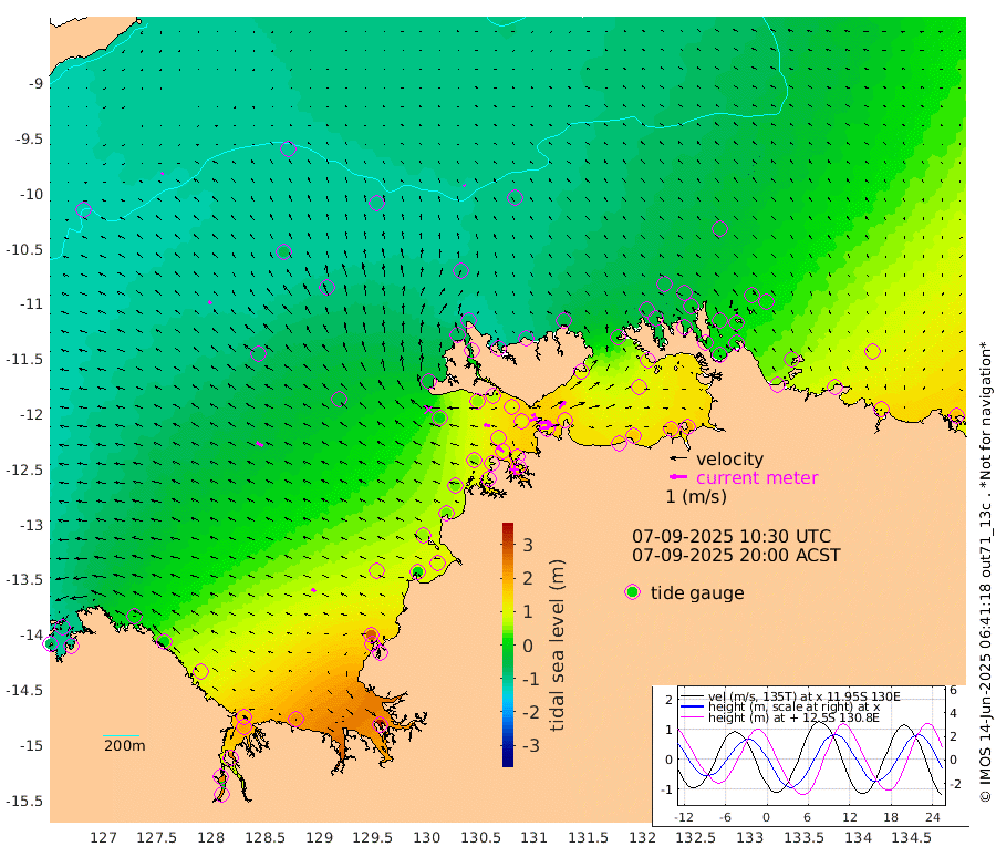 57cm/s 81T +4cm/s rms + 6cm/s 51T. Darwin_C1 52m 51cm/s 92T +4cm/s rms + 7cm/s -161T. Darwin_CW1 22m 47cm/s 68T +4cm/s rms + 8cm/s 61T. Darwin_CW2 34m 53cm/s 42T +3cm/s rms + 9cm/s 98T. Darwin_CW3 22m 77cm/s 89T +5cm/s rms + 7cm/s 88T. Darwin_C3 56m 22cm/s 65T +2cm/s rms + 9cm/s -126T. Darwin_CTbW 22m 11cm/s -21T +9cm/s rms + 2cm/s -110T. NWSLYN 196m 36cm/s -78T +1cm/s rms + 1cm/s -47T. DARBGF 30m 12cm/s -99T +7cm/s rms + 2cm/s -137T. ITFTIS 464m 20cm/s -44T +9cm/s rms + 1cm/s 74T. ITFMHB 146m 26cm/s -57T +4cm/s rms + 1cm/s -134T. ITFJBG 61m 41cm/s -60T +6cm/s rms + 4cm/s 121T. ITFFTB 108m 51cm/s -52T +4cm/s rms + 3cm/s 80T. NRSDAR 19m -79cm Carronade Island -75cm Guy Point -91cm Napier Broome Bay 12cm Lesueur Island 108cm Reveley Island 3cm Rocky Island 195cm Cape Domett 172cm Lacrosse Island 244cm Adolphus Island 226cm Pender Point 234cm Wyndham -74cm The Boxers -58cm Unnamed Shoal -112cm Loxton Shoal 217cm Pelican Island -92cm Calder Shoal -98cm Evans Shoal 327cm Quoin Island 160cm Port Keats 164cm Jones Point 274cm Catfish Island 72cm Cape Scott Offshore 6cm Cape Ford 85cm Anson Bay -85cm Goodrich Bank 56cm Peron Island North 36cm Point Jenny 34cm Native Point 51cm Fish Reef 69cm Tapa Bay -44cm Point Fawcett (Offshore) 81cm Burge Point 50cm Munkunuwa 10cm Beagle A 93cm Parsons Bank 77cm Fenton Patches -79cm Lynedoch Bank 111cm Hancox Shoal Area 105cm Nightcliff 121cm Darwin 88cm Charles Point Patches 117cm Glyde Point 151cm Chambers Bay 158cm Point Stuart 121cm Cape Hotham 126cm Christine Reef 177cm West Alligator Head 194cm East Field Island 110cm Two Hills Bay -44cm Newby Shoal 112cm Camp Point 63cm Medina Inlet South -51cm South Barlow Point -70cm St. Asaph Bay -87cm Cape Van Dieman -79cm Snake Bay -80cm Cache Point -113cm Echo Shoal -50cm Point Jahleel (Off) 6cm Cape Don -38cm Port Essington -41cm Smith Point - West -37cm NW Peacock Island -55cm North Of Jones Shoal -16cm Peacock Island 8cm Point David -33cm D'urville Point -30cm Money Shoal 15cm Copeland Island 11cm Cape Cockburn -1cm One Tree Point 22cm Hogmany Shoal 4cm New Year Island - West 9cm Grant Island 48cm Aurari Bay 67cm Cuthbert Point 38cm North Goulburn Island 91cm Paxie Shoal 119cm Entrance Island 174cm Yabooma Island