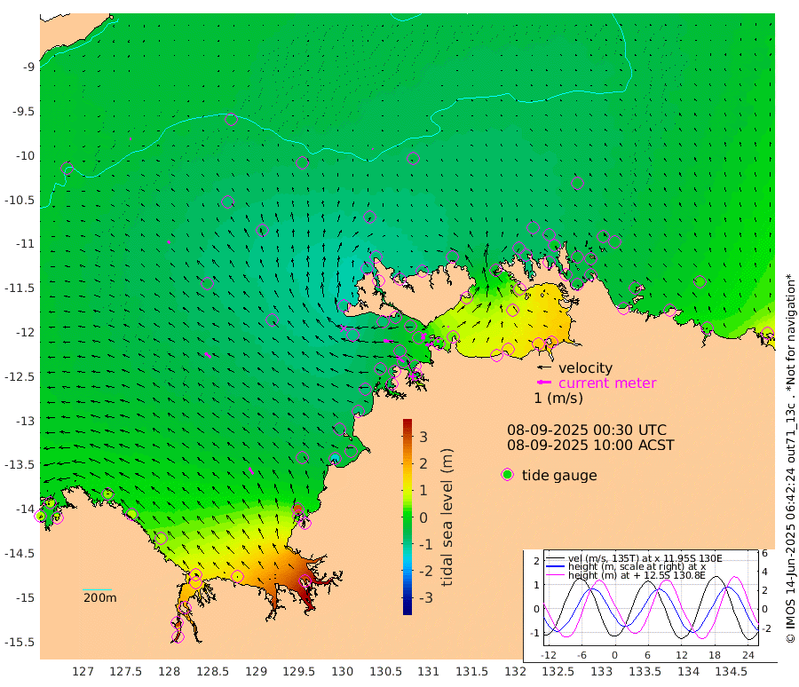 55cm/s -102T +4cm/s rms + 6cm/s 51T. Darwin_C1 52m 21cm/s -85T +4cm/s rms + 7cm/s -161T. Darwin_CW1 22m 26cm/s -112T +4cm/s rms + 8cm/s 61T. Darwin_CW2 34m 9cm/s -15T +3cm/s rms + 9cm/s 98T. Darwin_CW3 22m 4cm/s 165T +5cm/s rms + 7cm/s 88T. Darwin_C3 56m 38cm/s -118T +2cm/s rms + 9cm/s -126T. Darwin_CTbW 22m 7cm/s -23T +9cm/s rms + 2cm/s -110T. NWSLYN 196m 70cm/s -85T +1cm/s rms + 1cm/s -47T. DARBGF 30m 7cm/s -90T +7cm/s rms + 2cm/s -137T. ITFTIS 464m 20cm/s -27T +9cm/s rms + 1cm/s 74T. ITFMHB 146m 54cm/s -32T +4cm/s rms + 1cm/s -134T. ITFJBG 61m 53cm/s -50T +6cm/s rms + 4cm/s 121T. ITFFTB 108m 75cm/s -54T +4cm/s rms + 3cm/s 80T. NRSDAR 19m 59cm Carronade Island 67cm Guy Point 72cm Napier Broome Bay 45cm Lesueur Island 64cm Reveley Island 59cm Rocky Island 136cm Cape Domett 109cm Lacrosse Island 205cm Adolphus Island 293cm Pender Point 329cm Wyndham -50cm The Boxers -81cm Unnamed Shoal -35cm Loxton Shoal 107cm Pelican Island -66cm Calder Shoal -53cm Evans Shoal 290cm Quoin Island 30cm Port Keats 27cm Jones Point 292cm Catfish Island -39cm Cape Scott Offshore -145cm Cape Ford -54cm Anson Bay -72cm Goodrich Bank -64cm Peron Island North -86cm Point Jenny -88cm Native Point -80cm Fish Reef -77cm Tapa Bay -100cm Point Fawcett (Offshore) -63cm Burge Point -87cm Munkunuwa -99cm Beagle A -59cm Parsons Bank -71cm Fenton Patches -50cm Lynedoch Bank -40cm Hancox Shoal Area -54cm Nightcliff -36cm Darwin -55cm Charles Point Patches 22cm Glyde Point 108cm Chambers Bay 125cm Point Stuart 43cm Cape Hotham 92cm Christine Reef 148cm West Alligator Head 189cm East Field Island 69cm Two Hills Bay -74cm Newby Shoal 70cm Camp Point -69cm Medina Inlet South -100cm South Barlow Point -96cm St. Asaph Bay -82cm Cape Van Dieman -79cm Snake Bay -74cm Cache Point -23cm Echo Shoal -58cm Point Jahleel (Off) -24cm Cape Don -55cm Port Essington -64cm Smith Point - West -58cm NW Peacock Island -56cm North Of Jones Shoal -20cm Peacock Island -43cm Point David -64cm D'urville Point -44cm Money Shoal -40cm Copeland Island -48cm Cape Cockburn -38cm One Tree Point -39cm Hogmany Shoal -37cm New Year Island - West -36cm Grant Island -23cm Aurari Bay 1cm Cuthbert Point -22cm North Goulburn Island 26cm Paxie Shoal 33cm Entrance Island 68cm Yabooma Island