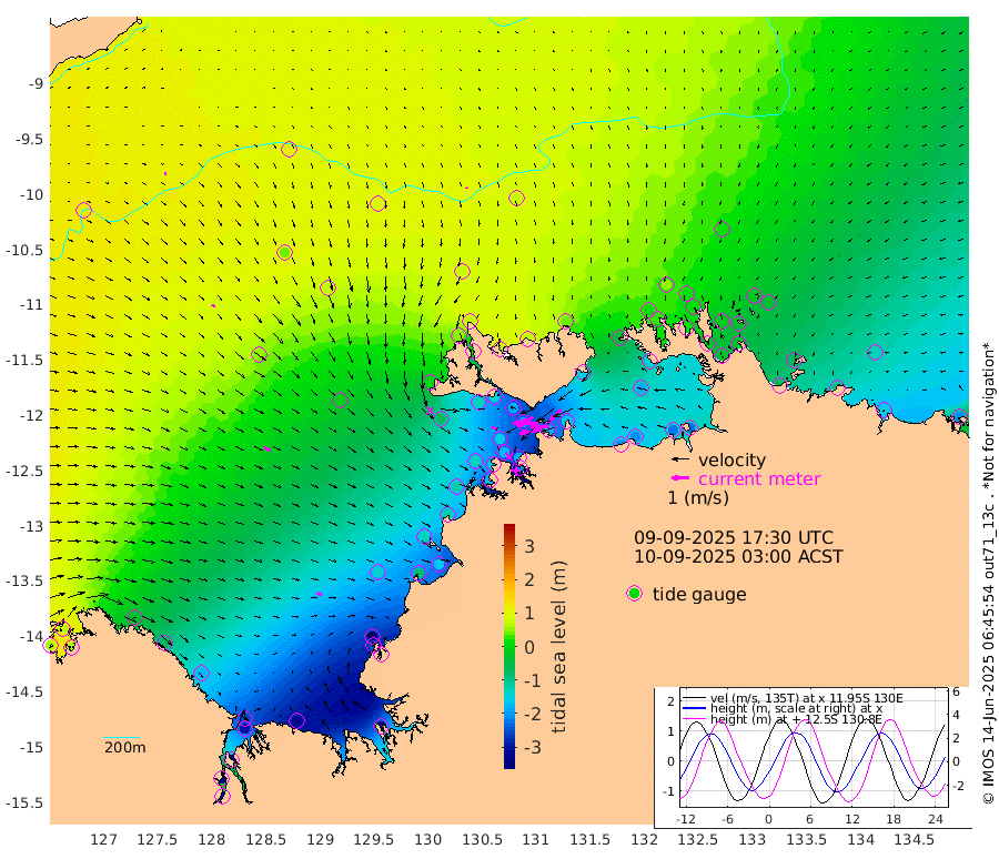 131cm/s -101T +4cm/s rms + 6cm/s 51T. Darwin_C1 52m 109cm/s -92T +4cm/s rms + 7cm/s -161T. Darwin_CW1 22m 75cm/s -106T +4cm/s rms + 8cm/s 61T. Darwin_CW2 34m 90cm/s -136T +3cm/s rms + 9cm/s 98T. Darwin_CW3 22m 145cm/s -90T +5cm/s rms + 7cm/s 88T. Darwin_C3 56m 62cm/s -116T +2cm/s rms + 9cm/s -126T. Darwin_CTbW 22m 7cm/s 168T +9cm/s rms + 2cm/s -110T. NWSLYN 196m 29cm/s 112T +1cm/s rms + 1cm/s -47T. DARBGF 30m 12cm/s 93T +7cm/s rms + 2cm/s -137T. ITFTIS 464m 19cm/s 129T +9cm/s rms + 1cm/s 74T. ITFMHB 146m 30cm/s 116T +4cm/s rms + 1cm/s -134T. ITFJBG 61m 44cm/s 117T +6cm/s rms + 4cm/s 121T. ITFFTB 108m 40cm/s 140T +4cm/s rms + 3cm/s 80T. NRSDAR 19m 68cm Carronade Island 59cm Guy Point 67cm Napier Broome Bay -33cm Lesueur Island -177cm Reveley Island -70cm Rocky Island -294cm Cape Domett -251cm Lacrosse Island -337cm Adolphus Island -321cm Pender Point -314cm Wyndham 48cm The Boxers 44cm Unnamed Shoal 104cm Loxton Shoal -312cm Pelican Island 72cm Calder Shoal 90cm Evans Shoal -429cm Quoin Island -258cm Port Keats -250cm Jones Point -340cm Catfish Island -144cm Cape Scott Offshore -89cm Cape Ford -163cm Anson Bay 76cm Goodrich Bank -124cm Peron Island North -116cm Point Jenny -113cm Native Point -124cm Fish Reef -151cm Tapa Bay 2cm Point Fawcett (Offshore) -173cm Burge Point -132cm Munkunuwa -69cm Beagle A -181cm Parsons Bank -155cm Fenton Patches 74cm Lynedoch Bank -193cm Hancox Shoal Area -190cm Nightcliff -213cm Darwin -172cm Charles Point Patches -181cm Glyde Point -203cm Chambers Bay -203cm Point Stuart -169cm Cape Hotham -183cm Christine Reef -225cm West Alligator Head -233cm East Field Island -154cm Two Hills Bay -9cm Newby Shoal -157cm Camp Point -145cm Medina Inlet South 14cm South Barlow Point 46cm St. Asaph Bay 77cm Cape Van Dieman 69cm Snake Bay 69cm Cache Point 122cm Echo Shoal 36cm Point Jahleel (Off) -43cm Cape Don 19cm Port Essington 24cm Smith Point - West 22cm NW Peacock Island 45cm North Of Jones Shoal 13cm Peacock Island -21cm Point David 17cm D'urville Point 17cm Money Shoal -28cm Copeland Island -33cm Cape Cockburn -16cm One Tree Point -42cm Hogmany Shoal -17cm New Year Island - West -27cm Grant Island -58cm Aurari Bay -96cm Cuthbert Point -59cm North Goulburn Island -125cm Paxie Shoal -153cm Entrance Island -203cm Yabooma Island