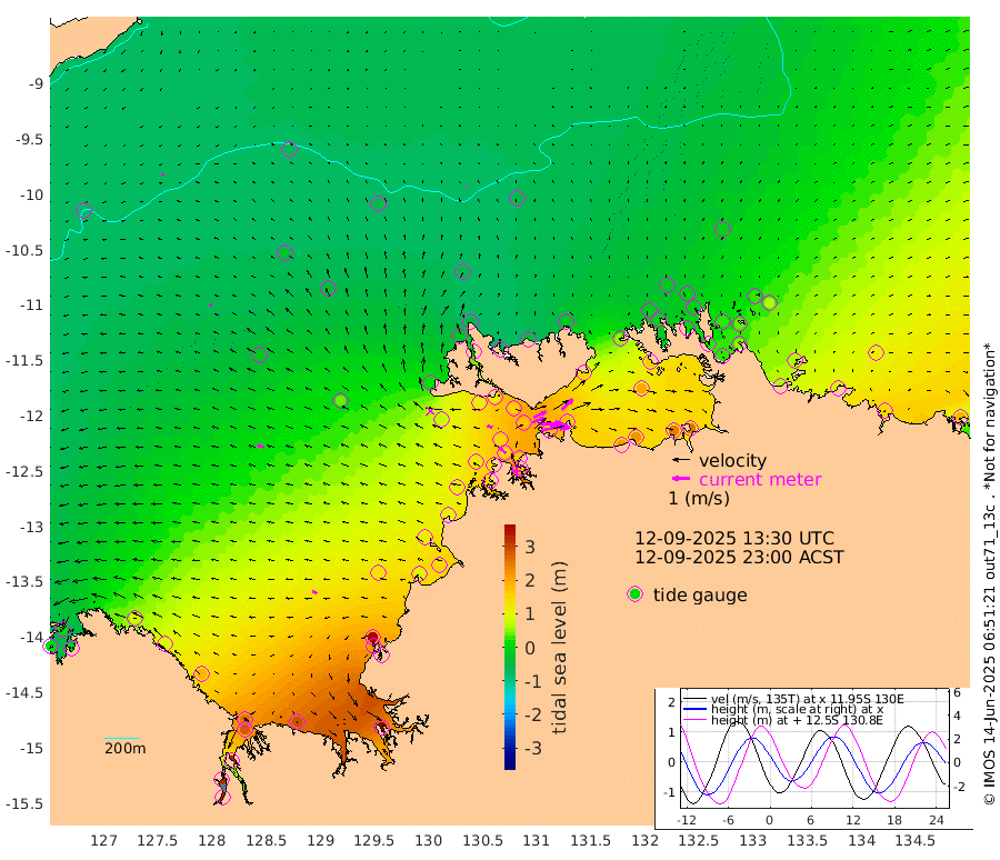 149cm/s 79T +4cm/s rms + 6cm/s 51T. Darwin_C1 52m 115cm/s 92T +4cm/s rms + 7cm/s -161T. Darwin_CW1 22m 76cm/s 70T +4cm/s rms + 8cm/s 61T. Darwin_CW2 34m 90cm/s 46T +3cm/s rms + 9cm/s 98T. Darwin_CW3 22m 135cm/s 90T +5cm/s rms + 7cm/s 88T. Darwin_C3 56m 77cm/s 66T +2cm/s rms + 9cm/s -126T. Darwin_CTbW 22m 7cm/s -9T +9cm/s rms + 2cm/s -110T. NWSLYN 196m 29cm/s -70T +1cm/s rms + 1cm/s -47T. DARBGF 30m 12cm/s -109T +7cm/s rms + 2cm/s -137T. ITFTIS 464m 14cm/s -85T +9cm/s rms + 1cm/s 74T. ITFMHB 146m 28cm/s -59T +4cm/s rms + 1cm/s -134T. ITFJBG 61m 38cm/s -66T +6cm/s rms + 4cm/s 121T. ITFFTB 108m 50cm/s -48T +4cm/s rms + 3cm/s 80T. NRSDAR 19m 11cm Carronade Island 22cm Guy Point 10cm Napier Broome Bay 79cm Lesueur Island 182cm Reveley Island 81cm Rocky Island 281cm Cape Domett 250cm Lacrosse Island 327cm Adolphus Island 320cm Pender Point 332cm Wyndham -19cm The Boxers -32cm Unnamed Shoal -65cm Loxton Shoal 289cm Pelican Island -41cm Calder Shoal -54cm Evans Shoal 408cm Quoin Island 232cm Port Keats 217cm Jones Point 380cm Catfish Island 134cm Cape Scott Offshore 81cm Cape Ford 141cm Anson Bay -53cm Goodrich Bank 117cm Peron Island North 109cm Point Jenny 103cm Native Point 113cm Fish Reef 132cm Tapa Bay 13cm Point Fawcett (Offshore) 149cm Burge Point 107cm Munkunuwa 72cm Beagle A 153cm Parsons Bank 138cm Fenton Patches -52cm Lynedoch Bank 170cm Hancox Shoal Area 167cm Nightcliff 177cm Darwin 144cm Charles Point Patches 171cm Glyde Point 207cm Chambers Bay 215cm Point Stuart 170cm Cape Hotham 197cm Christine Reef 241cm West Alligator Head 253cm East Field Island 167cm Two Hills Bay 35cm Newby Shoal 156cm Camp Point 122cm Medina Inlet South -8cm South Barlow Point -28cm St. Asaph Bay -55cm Cape Van Dieman -52cm Snake Bay -40cm Cache Point -74cm Echo Shoal -12cm Point Jahleel (Off) 55cm Cape Don -5cm Port Essington -2cm Smith Point - West -3cm NW Peacock Island -22cm North Of Jones Shoal -6cm Peacock Island 27cm Point David 1cm D'urville Point -5cm Money Shoal 33cm Copeland Island 46cm Cape Cockburn 24cm One Tree Point 57cm Hogmany Shoal 26cm New Year Island - West 36cm Grant Island 59cm Aurari Bay 98cm Cuthbert Point 63cm North Goulburn Island 115cm Paxie Shoal 140cm Entrance Island 184cm Yabooma Island