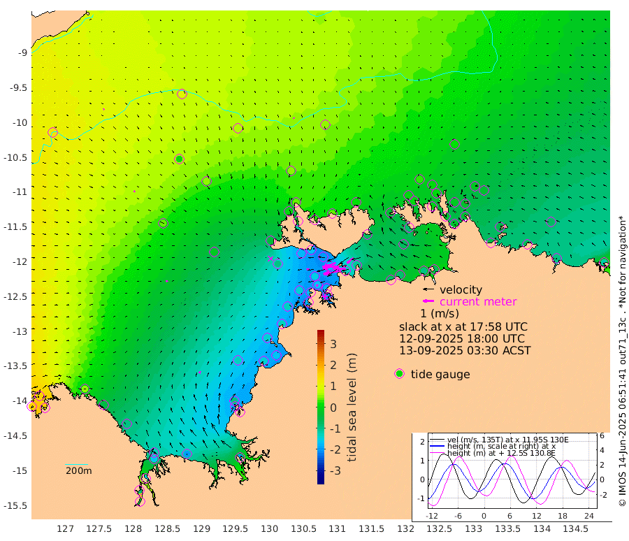 165cm/s -102T +4cm/s rms + 6cm/s 51T. Darwin_C1 52m 116cm/s -90T +4cm/s rms + 7cm/s -161T. Darwin_CW1 22m 106cm/s -107T +4cm/s rms + 8cm/s 61T. Darwin_CW2 34m 73cm/s -132T +3cm/s rms + 9cm/s 98T. Darwin_CW3 22m 157cm/s -91T +5cm/s rms + 7cm/s 88T. Darwin_C3 56m 91cm/s -115T +2cm/s rms + 9cm/s -126T. Darwin_CTbW 22m 6cm/s 143T +9cm/s rms + 2cm/s -110T. NWSLYN 196m 27cm/s -102T +1cm/s rms + 1cm/s -47T. DARBGF 30m 9cm/s 62T +7cm/s rms + 2cm/s -137T. ITFTIS 464m 12cm/s 67T +9cm/s rms + 1cm/s 74T. ITFMHB 146m 19cm/s 20T +4cm/s rms + 1cm/s -134T. ITFJBG 61m 17cm/s 65T +6cm/s rms + 4cm/s 121T. ITFFTB 108m 21cm/s -89T +4cm/s rms + 3cm/s 80T. NRSDAR 19m 152cm Carronade Island 154cm Guy Point 155cm Napier Broome Bay 50cm Lesueur Island -99cm Reveley Island -52cm Rocky Island -161cm Cape Domett -131cm Lacrosse Island -153cm Adolphus Island -86cm Pender Point -45cm Wyndham 42cm The Boxers 11cm Unnamed Shoal 95cm Loxton Shoal -193cm Pelican Island 50cm Calder Shoal 67cm Evans Shoal -194cm Quoin Island -191cm Port Keats -194cm Jones Point -94cm Catfish Island -132cm Cape Scott Offshore -136cm Cape Ford -158cm Anson Bay 45cm Goodrich Bank -138cm Peron Island North -130cm Point Jenny -130cm Native Point -145cm Fish Reef -159cm Tapa Bay -38cm Point Fawcett (Offshore) -175cm Burge Point -171cm Munkunuwa -93cm Beagle A -192cm Parsons Bank -156cm Fenton Patches 54cm Lynedoch Bank -178cm Hancox Shoal Area -179cm Nightcliff -199cm Darwin -165cm Charles Point Patches -129cm Glyde Point -87cm Chambers Bay -87cm Point Stuart -107cm Cape Hotham -77cm Christine Reef -94cm West Alligator Head -68cm East Field Island -80cm Two Hills Bay -19cm Newby Shoal -69cm Camp Point -161cm Medina Inlet South -34cm South Barlow Point 4cm St. Asaph Bay 39cm Cape Van Dieman 29cm Snake Bay 40cm Cache Point 127cm Echo Shoal 16cm Point Jahleel (Off) -35cm Cape Don 1cm Port Essington 1cm Smith Point - West 4cm NW Peacock Island 27cm North Of Jones Shoal 6cm Peacock Island -27cm Point David -5cm D'urville Point 14cm Money Shoal -31cm Copeland Island -38cm Cape Cockburn -21cm One Tree Point -33cm Hogmany Shoal -16cm New Year Island - West -28cm Grant Island -46cm Aurari Bay -65cm Cuthbert Point -48cm North Goulburn Island -71cm Paxie Shoal -94cm Entrance Island -113cm Yabooma Island