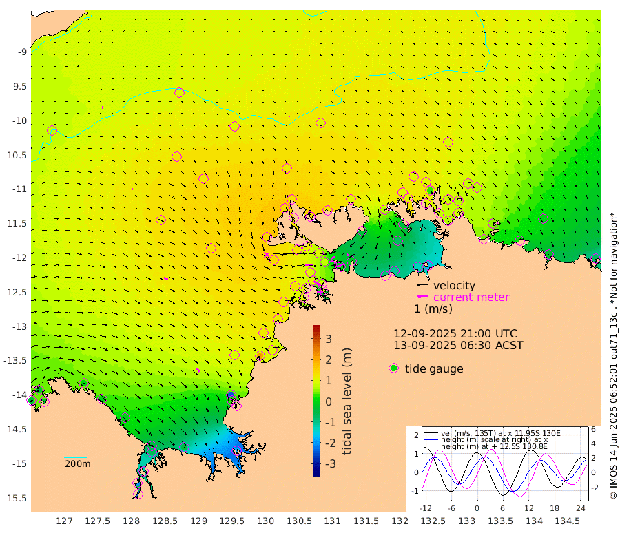 44cm/s 79T +4cm/s rms + 6cm/s 51T. Darwin_C1 52m 29cm/s 84T +4cm/s rms + 7cm/s -161T. Darwin_CW1 22m 36cm/s 75T +4cm/s rms + 8cm/s 61T. Darwin_CW2 34m 17cm/s -151T +3cm/s rms + 9cm/s 98T. Darwin_CW3 22m 23cm/s 84T +5cm/s rms + 7cm/s 88T. Darwin_C3 56m 40cm/s 62T +2cm/s rms + 9cm/s -126T. Darwin_CTbW 22m 8cm/s 128T +9cm/s rms + 2cm/s -110T. NWSLYN 196m 73cm/s 93T +1cm/s rms + 1cm/s -47T. DARBGF 30m 12cm/s 48T +7cm/s rms + 2cm/s -137T. ITFTIS 464m 13cm/s 111T +9cm/s rms + 1cm/s 74T. ITFMHB 146m 45cm/s 143T +4cm/s rms + 1cm/s -134T. ITFJBG 61m 44cm/s 120T +6cm/s rms + 4cm/s 121T. ITFFTB 108m 75cm/s 125T +4cm/s rms + 3cm/s 80T. NRSDAR 19m -31cm Carronade Island -39cm Guy Point -32cm Napier Broome Bay 9cm Lesueur Island -22cm Reveley Island -8cm Rocky Island -62cm Cape Domett -49cm Lacrosse Island -117cm Adolphus Island -205cm Pender Point -244cm Wyndham 105cm The Boxers 128cm Unnamed Shoal 93cm Loxton Shoal -45cm Pelican Island 118cm Calder Shoal 98cm Evans Shoal -188cm Quoin Island 32cm Port Keats 31cm Jones Point -241cm Catfish Island 84cm Cape Scott Offshore 212cm Cape Ford 100cm Anson Bay 117cm Goodrich Bank 113cm Peron Island North 118cm Point Jenny 122cm Native Point 124cm Fish Reef 116cm Tapa Bay 142cm Point Fawcett (Offshore) 111cm Burge Point 125cm Munkunuwa 135cm Beagle A 101cm Parsons Bank 112cm Fenton Patches 98cm Lynedoch Bank 78cm Hancox Shoal Area 90cm Nightcliff 100cm Darwin 123cm Charles Point Patches 19cm Glyde Point -85cm Chambers Bay -106cm Point Stuart -15cm Cape Hotham -78cm Christine Reef -132cm West Alligator Head -171cm East Field Island -45cm Two Hills Bay 130cm Newby Shoal -35cm Camp Point 123cm Medina Inlet South 148cm South Barlow Point 138cm St. Asaph Bay 124cm Cape Van Dieman 128cm Snake Bay 114cm Cache Point 72cm Echo Shoal 95cm Point Jahleel (Off) 59cm Cape Don 96cm Port Essington 96cm Smith Point - West 91cm NW Peacock Island 97cm North Of Jones Shoal 33cm Peacock Island 68cm Point David 94cm D'urville Point 83cm Money Shoal 61cm Copeland Island 81cm Cape Cockburn 71cm One Tree Point 63cm Hogmany Shoal 69cm New Year Island - West 65cm Grant Island 41cm Aurari Bay 15cm Cuthbert Point 46cm North Goulburn Island -8cm Paxie Shoal -26cm Entrance Island -73cm Yabooma Island
