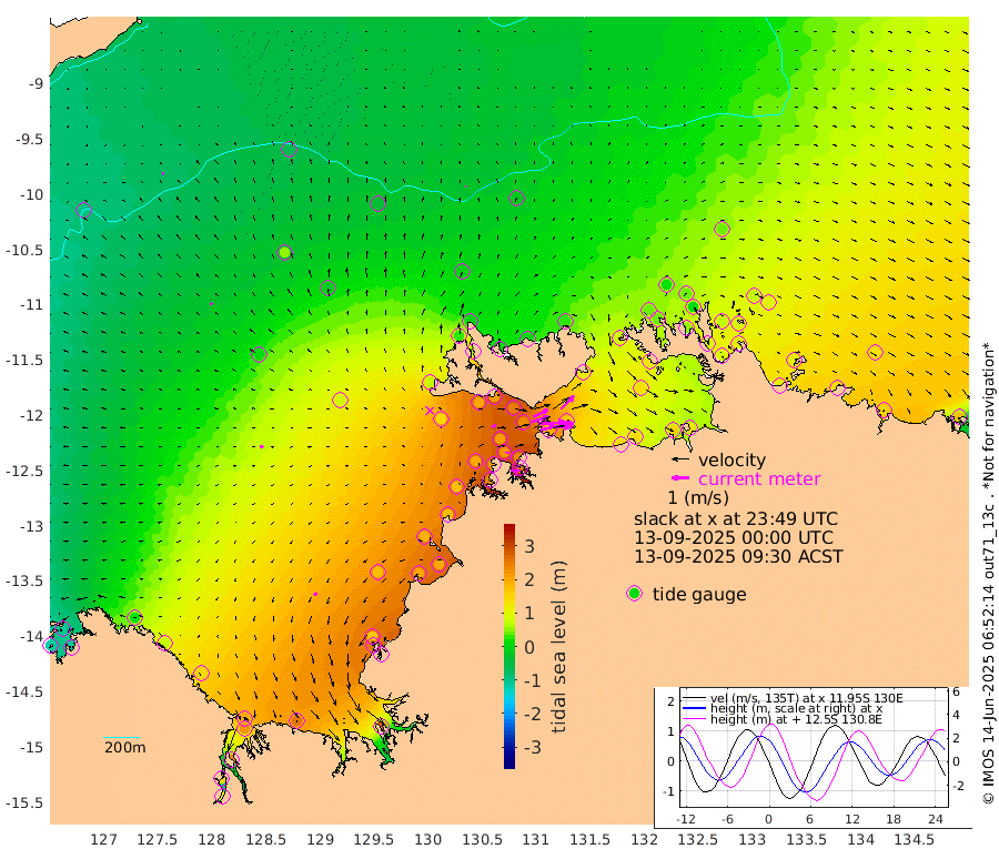 187cm/s 78T +4cm/s rms + 6cm/s 51T. Darwin_C1 52m 129cm/s 91T +4cm/s rms + 7cm/s -161T. Darwin_CW1 22m 106cm/s 74T +4cm/s rms + 8cm/s 61T. Darwin_CW2 34m 106cm/s 44T +3cm/s rms + 9cm/s 98T. Darwin_CW3 22m 170cm/s 89T +5cm/s rms + 7cm/s 88T. Darwin_C3 56m 96cm/s 65T +2cm/s rms + 9cm/s -126T. Darwin_CTbW 22m 9cm/s -8T +9cm/s rms + 2cm/s -110T. NWSLYN 196m 22cm/s 72T +1cm/s rms + 1cm/s -47T. DARBGF 30m 9cm/s -75T +7cm/s rms + 2cm/s -137T. ITFTIS 464m 12cm/s -54T +9cm/s rms + 1cm/s 74T. ITFMHB 146m 17cm/s -133T +4cm/s rms + 1cm/s -134T. ITFJBG 61m 18cm/s -83T +6cm/s rms + 4cm/s 121T. ITFFTB 108m 18cm/s 85T +4cm/s rms + 3cm/s 80T. NRSDAR 19m -109cm Carronade Island -115cm Guy Point -109cm Napier Broome Bay 21cm Lesueur Island 143cm Reveley Island 75cm Rocky Island 223cm Cape Domett 191cm Lacrosse Island 227cm Adolphus Island 145cm Pender Point 115cm Wyndham 6cm The Boxers 49cm Unnamed Shoal -64cm Loxton Shoal 252cm Pelican Island -12cm Calder Shoal -39cm Evans Shoal 263cm Quoin Island 249cm Port Keats 253cm Jones Point 164cm Catfish Island 173cm Cape Scott Offshore 198cm Cape Ford 202cm Anson Bay -9cm Goodrich Bank 187cm Peron Island North 173cm Point Jenny 173cm Native Point 193cm Fish Reef 205cm Tapa Bay 75cm Point Fawcett (Offshore) 227cm Burge Point 199cm Munkunuwa 144cm Beagle A 239cm Parsons Bank 213cm Fenton Patches -18cm Lynedoch Bank 227cm Hancox Shoal Area 227cm Nightcliff 258cm Darwin 224cm Charles Point Patches 187cm Glyde Point 138cm Chambers Bay 141cm Point Stuart 161cm Cape Hotham 125cm Christine Reef 148cm West Alligator Head 128cm East Field Island 132cm Two Hills Bay 83cm Newby Shoal 123cm Camp Point 206cm Medina Inlet South 72cm South Barlow Point 29cm St. Asaph Bay -3cm Cape Van Dieman 12cm Snake Bay 0cm Cache Point -99cm Echo Shoal 24cm Point Jahleel (Off) 80cm Cape Don 43cm Port Essington 43cm Smith Point - West 43cm NW Peacock Island 13cm North Of Jones Shoal 8cm Peacock Island 81cm Point David 53cm D'urville Point 36cm Money Shoal 83cm Copeland Island 107cm Cape Cockburn 72cm One Tree Point 99cm Hogmany Shoal 76cm New Year Island - West 86cm Grant Island 106cm Aurari Bay 128cm Cuthbert Point 106cm North Goulburn Island 128cm Paxie Shoal 156cm Entrance Island 172cm Yabooma Island