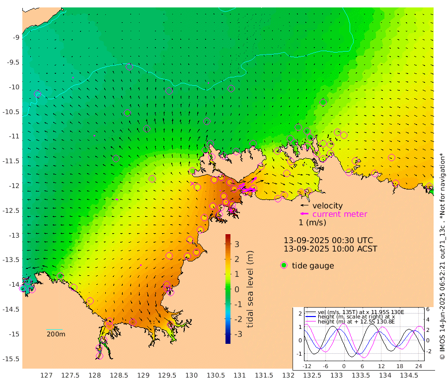 171cm/s 78T +4cm/s rms + 6cm/s 51T. Darwin_C1 52m 117cm/s 92T +4cm/s rms + 7cm/s -161T. Darwin_CW1 22m 95cm/s 73T +4cm/s rms + 8cm/s 61T. Darwin_CW2 34m 104cm/s 43T +3cm/s rms + 9cm/s 98T. Darwin_CW3 22m 158cm/s 89T +5cm/s rms + 7cm/s 88T. Darwin_C3 56m 85cm/s 65T +2cm/s rms + 9cm/s -126T. Darwin_CTbW 22m 11cm/s -17T +9cm/s rms + 2cm/s -110T. NWSLYN 196m 8cm/s 3T +1cm/s rms + 1cm/s -47T. DARBGF 30m 11cm/s -87T +7cm/s rms + 2cm/s -137T. ITFTIS 464m 16cm/s -50T +9cm/s rms + 1cm/s 74T. ITFMHB 146m 18cm/s -94T +4cm/s rms + 1cm/s -134T. ITFJBG 61m 29cm/s -71T +6cm/s rms + 4cm/s 121T. ITFFTB 108m 14cm/s -7T +4cm/s rms + 3cm/s 80T. NRSDAR 19m -97cm Carronade Island -103cm Guy Point -97cm Napier Broome Bay 22cm Lesueur Island 146cm Reveley Island 77cm Rocky Island 236cm Cape Domett 202cm Lacrosse Island 256cm Adolphus Island 199cm Pender Point 181cm Wyndham -20cm The Boxers 19cm Unnamed Shoal -87cm Loxton Shoal 260cm Pelican Island -42cm Calder Shoal -64cm Evans Shoal 309cm Quoin Island 237cm Port Keats 242cm Jones Point 226cm Catfish Island 147cm Cape Scott Offshore 139cm Cape Ford 171cm Anson Bay -38cm Goodrich Bank 154cm Peron Island North 138cm Point Jenny 137cm Native Point 157cm Fish Reef 170cm Tapa Bay 35cm Point Fawcett (Offshore) 194cm Burge Point 161cm Munkunuwa 107cm Beagle A 208cm Parsons Bank 181cm Fenton Patches -42cm Lynedoch Bank 202cm Hancox Shoal Area 199cm Nightcliff 228cm Darwin 188cm Charles Point Patches 181cm Glyde Point 160cm Chambers Bay 170cm Point Stuart 165cm Cape Hotham 145cm Christine Reef 184cm West Alligator Head 176cm East Field Island 145cm Two Hills Bay 50cm Newby Shoal 134cm Camp Point 170cm Medina Inlet South 32cm South Barlow Point -8cm St. Asaph Bay -34cm Cape Van Dieman -20cm Snake Bay -29cm Cache Point -115cm Echo Shoal 1cm Point Jahleel (Off) 66cm Cape Don 20cm Port Essington 19cm Smith Point - West 22cm NW Peacock Island -11cm North Of Jones Shoal 0cm Peacock Island 66cm Point David 31cm D'urville Point 17cm Money Shoal 70cm Copeland Island 90cm Cape Cockburn 57cm One Tree Point 86cm Hogmany Shoal 61cm New Year Island - West 72cm Grant Island 99cm Aurari Bay 128cm Cuthbert Point 97cm North Goulburn Island 133cm Paxie Shoal 166cm Entrance Island 194cm Yabooma Island