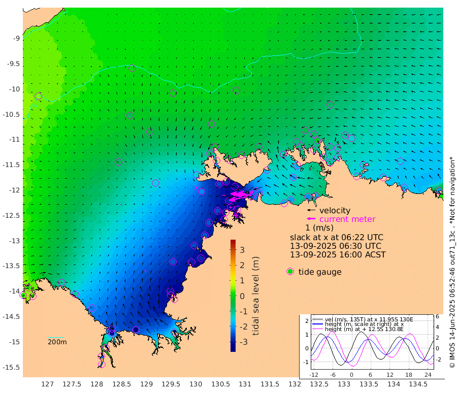 241cm/s -101T +4cm/s rms + 6cm/s 51T. Darwin_C1 52m 180cm/s -90T +4cm/s rms + 7cm/s -161T. Darwin_CW1 22m 124cm/s -106T +4cm/s rms + 8cm/s 61T. Darwin_CW2 34m 115cm/s -135T +3cm/s rms + 9cm/s 98T. Darwin_CW3 22m 198cm/s -91T +5cm/s rms + 7cm/s 88T. Darwin_C3 56m 138cm/s -115T +2cm/s rms + 9cm/s -126T. Darwin_CTbW 22m 7cm/s -148T +9cm/s rms + 2cm/s -110T. NWSLYN 196m 31cm/s -105T +1cm/s rms + 1cm/s -47T. DARBGF 30m 9cm/s 111T +7cm/s rms + 2cm/s -137T. ITFTIS 464m 8cm/s 95T +9cm/s rms + 1cm/s 74T. ITFMHB 146m 15cm/s 43T +4cm/s rms + 1cm/s -134T. ITFJBG 61m 15cm/s 96T +6cm/s rms + 4cm/s 121T. ITFFTB 108m 19cm/s -95T +4cm/s rms + 3cm/s 80T. NRSDAR 19m 27cm Carronade Island 25cm Guy Point 27cm Napier Broome Bay -104cm Lesueur Island -216cm Reveley Island -108cm Rocky Island -314cm Cape Domett -282cm Lacrosse Island -323cm Adolphus Island -238cm Pender Point -217cm Wyndham -62cm The Boxers -78cm Unnamed Shoal 15cm Loxton Shoal -338cm Pelican Island -42cm Calder Shoal -6cm Evans Shoal -368cm Quoin Island -331cm Port Keats -316cm Jones Point -288cm Catfish Island -245cm Cape Scott Offshore -282cm Cape Ford -270cm Anson Bay -29cm Goodrich Bank -254cm Peron Island North -243cm Point Jenny -240cm Native Point -258cm Fish Reef -273cm Tapa Bay -136cm Point Fawcett (Offshore) -294cm Burge Point -251cm Munkunuwa -209cm Beagle A -295cm Parsons Bank -279cm Fenton Patches -15cm Lynedoch Bank -291cm Hancox Shoal Area -296cm Nightcliff -324cm Darwin -296cm Charles Point Patches -245cm Glyde Point -199cm Chambers Bay -197cm Point Stuart -215cm Cape Hotham -190cm Christine Reef -207cm West Alligator Head -189cm East Field Island -185cm Two Hills Bay -156cm Newby Shoal -176cm Camp Point -269cm Medina Inlet South -117cm South Barlow Point -78cm St. Asaph Bay -33cm Cape Van Dieman -44cm Snake Bay -43cm Cache Point 49cm Echo Shoal -65cm Point Jahleel (Off) -126cm Cape Don -79cm Port Essington -81cm Smith Point - West -78cm NW Peacock Island -54cm North Of Jones Shoal -21cm Peacock Island -103cm Point David -87cm D'urville Point -68cm Money Shoal -105cm Copeland Island -142cm Cape Cockburn -101cm One Tree Point -137cm Hogmany Shoal -103cm New Year Island - West -113cm Grant Island -126cm Aurari Bay -155cm Cuthbert Point -133cm North Goulburn Island -156cm Paxie Shoal -176cm Entrance Island -192cm Yabooma Island
