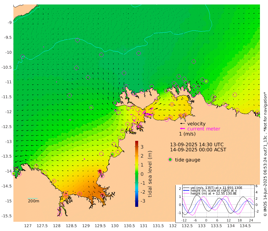 124cm/s 79T +4cm/s rms + 6cm/s 51T. Darwin_C1 52m 97cm/s 91T +4cm/s rms + 7cm/s -161T. Darwin_CW1 22m 53cm/s 70T +4cm/s rms + 8cm/s 61T. Darwin_CW2 34m 74cm/s 47T +3cm/s rms + 9cm/s 98T. Darwin_CW3 22m 97cm/s 90T +5cm/s rms + 7cm/s 88T. Darwin_C3 56m 68cm/s 66T +2cm/s rms + 9cm/s -126T. Darwin_CTbW 22m 5cm/s -9T +9cm/s rms + 2cm/s -110T. NWSLYN 196m 29cm/s -74T +1cm/s rms + 1cm/s -47T. DARBGF 30m 10cm/s -114T +7cm/s rms + 2cm/s -137T. ITFTIS 464m 11cm/s -97T +9cm/s rms + 1cm/s 74T. ITFMHB 146m 25cm/s -52T +4cm/s rms + 1cm/s -134T. ITFJBG 61m 31cm/s -65T +6cm/s rms + 4cm/s 121T. ITFFTB 108m 47cm/s -50T +4cm/s rms + 3cm/s 80T. NRSDAR 19m 50cm Carronade Island 60cm Guy Point 52cm Napier Broome Bay 86cm Lesueur Island 154cm Reveley Island 78cm Rocky Island 233cm Cape Domett 211cm Lacrosse Island 272cm Adolphus Island 287cm Pender Point 306cm Wyndham -10cm The Boxers -28cm Unnamed Shoal -44cm Loxton Shoal 231cm Pelican Island -29cm Calder Shoal -39cm Evans Shoal 341cm Quoin Island 178cm Port Keats 164cm Jones Point 352cm Catfish Island 100cm Cape Scott Offshore 42cm Cape Ford 100cm Anson Bay -45cm Goodrich Bank 83cm Peron Island North 78cm Point Jenny 73cm Native Point 79cm Fish Reef 92cm Tapa Bay 5cm Point Fawcett (Offshore) 105cm Burge Point 68cm Munkunuwa 49cm Beagle A 105cm Parsons Bank 97cm Fenton Patches -42cm Lynedoch Bank 121cm Hancox Shoal Area 120cm Nightcliff 122cm Darwin 96cm Charles Point Patches 134cm Glyde Point 180cm Chambers Bay 190cm Point Stuart 139cm Cape Hotham 173cm Christine Reef 214cm West Alligator Head 230cm East Field Island 144cm Two Hills Bay 31cm Newby Shoal 131cm Camp Point 82cm Medina Inlet South -17cm South Barlow Point -27cm St. Asaph Bay -47cm Cape Van Dieman -47cm Snake Bay -32cm Cache Point -46cm Echo Shoal -11cm Point Jahleel (Off) 43cm Cape Don -9cm Port Essington -6cm Smith Point - West -7cm NW Peacock Island -20cm North Of Jones Shoal -6cm Peacock Island 12cm Point David -6cm D'urville Point -9cm Money Shoal 18cm Copeland Island 28cm Cape Cockburn 12cm One Tree Point 38cm Hogmany Shoal 14cm New Year Island - West 21cm Grant Island 39cm Aurari Bay 73cm Cuthbert Point 43cm North Goulburn Island 88cm Paxie Shoal 105cm Entrance Island 141cm Yabooma Island