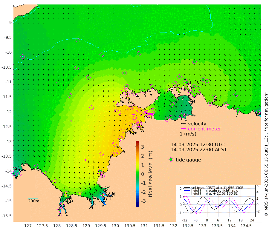 173cm/s 78T +4cm/s rms + 6cm/s 51T. Darwin_C1 52m 108cm/s 92T +4cm/s rms + 7cm/s -161T. Darwin_CW1 22m 101cm/s 73T +4cm/s rms + 8cm/s 61T. Darwin_CW2 34m 69cm/s 52T +3cm/s rms + 9cm/s 98T. Darwin_CW3 22m 142cm/s 88T +5cm/s rms + 7cm/s 88T. Darwin_C3 56m 96cm/s 65T +2cm/s rms + 9cm/s -126T. Darwin_CTbW 22m 3cm/s 153T +9cm/s rms + 2cm/s -110T. NWSLYN 196m 55cm/s 87T +1cm/s rms + 1cm/s -47T. DARBGF 30m 6cm/s -169T +7cm/s rms + 2cm/s -137T. ITFTIS 464m 22cm/s -171T +9cm/s rms + 1cm/s 74T. ITFMHB 146m 29cm/s 175T +4cm/s rms + 1cm/s -134T. ITFJBG 61m 24cm/s 160T +6cm/s rms + 4cm/s 121T. ITFFTB 108m 51cm/s 112T +4cm/s rms + 3cm/s 80T. NRSDAR 19m -88cm Carronade Island -86cm Guy Point -90cm Napier Broome Bay -19cm Lesueur Island 76cm Reveley Island 56cm Rocky Island 97cm Cape Domett 84cm Lacrosse Island 66cm Adolphus Island -12cm Pender Point -54cm Wyndham 26cm The Boxers 33cm Unnamed Shoal -5cm Loxton Shoal 124cm Pelican Island 31cm Calder Shoal 16cm Evans Shoal 77cm Quoin Island 149cm Port Keats 139cm Jones Point 13cm Catfish Island 142cm Cape Scott Offshore 173cm Cape Ford 160cm Anson Bay 24cm Goodrich Bank 154cm Peron Island North 148cm Point Jenny 147cm Native Point 157cm Fish Reef 163cm Tapa Bay 103cm Point Fawcett (Offshore) 164cm Burge Point 179cm Munkunuwa 123cm Beagle A 173cm Parsons Bank 149cm Fenton Patches 9cm Lynedoch Bank 155cm Hancox Shoal Area 165cm Nightcliff 174cm Darwin 163cm Charles Point Patches 91cm Glyde Point 25cm Chambers Bay 15cm Point Stuart 64cm Cape Hotham 26cm Christine Reef 12cm West Alligator Head -27cm East Field Island 39cm Two Hills Bay 74cm Newby Shoal 23cm Camp Point 168cm Medina Inlet South 92cm South Barlow Point 69cm St. Asaph Bay 30cm Cape Van Dieman 35cm Snake Bay 28cm Cache Point -34cm Echo Shoal 34cm Point Jahleel (Off) 51cm Cape Don 37cm Port Essington 42cm Smith Point - West 33cm NW Peacock Island 29cm North Of Jones Shoal 10cm Peacock Island 29cm Point David 39cm D'urville Point 15cm Money Shoal 28cm Copeland Island 40cm Cape Cockburn 32cm One Tree Point 32cm Hogmany Shoal 21cm New Year Island - West 29cm Grant Island 23cm Aurari Bay 26cm Cuthbert Point 31cm North Goulburn Island 19cm Paxie Shoal 17cm Entrance Island 6cm Yabooma Island