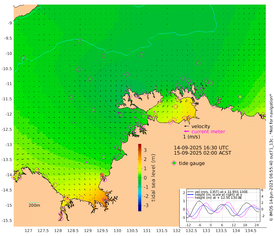 29cm/s 79T +4cm/s rms + 6cm/s 51T. Darwin_C1 52m 41cm/s 90T +4cm/s rms + 7cm/s -161T. Darwin_CW1 22m 8cm/s -116T +4cm/s rms + 8cm/s 61T. Darwin_CW2 34m 32cm/s 37T +3cm/s rms + 9cm/s 98T. Darwin_CW3 22m 10cm/s 105T +5cm/s rms + 7cm/s 88T. Darwin_C3 56m 18cm/s 71T +2cm/s rms + 9cm/s -126T. Darwin_CTbW 22m 2cm/s 17T +9cm/s rms + 2cm/s -110T. NWSLYN 196m 32cm/s -84T +1cm/s rms + 1cm/s -47T. DARBGF 30m 4cm/s -100T +7cm/s rms + 2cm/s -137T. ITFTIS 464m 4cm/s -70T +9cm/s rms + 1cm/s 74T. ITFMHB 146m 24cm/s -31T +4cm/s rms + 1cm/s -134T. ITFJBG 61m 22cm/s -50T +6cm/s rms + 4cm/s 121T. ITFFTB 108m 37cm/s -55T +4cm/s rms + 3cm/s 80T. NRSDAR 19m 122cm Carronade Island 130cm Guy Point 127cm Napier Broome Bay 102cm Lesueur Island 95cm Reveley Island 51cm Rocky Island 137cm Cape Domett 133cm Lacrosse Island 168cm Adolphus Island 221cm Pender Point 255cm Wyndham 10cm The Boxers -18cm Unnamed Shoal -2cm Loxton Shoal 116cm Pelican Island -4cm Calder Shoal -11cm Evans Shoal 207cm Quoin Island 75cm Port Keats 62cm Jones Point 266cm Catfish Island 29cm Cape Scott Offshore -18cm Cape Ford 18cm Anson Bay -26cm Goodrich Bank 8cm Peron Island North 15cm Point Jenny 11cm Native Point 7cm Fish Reef 13cm Tapa Bay -14cm Point Fawcett (Offshore) 21cm Burge Point -14cm Munkunuwa 7cm Beagle A 5cm Parsons Bank 22cm Fenton Patches -20cm Lynedoch Bank 26cm Hancox Shoal Area 29cm Nightcliff 17cm Darwin 8cm Charles Point Patches 61cm Glyde Point 123cm Chambers Bay 132cm Point Stuart 75cm Cape Hotham 122cm Christine Reef 151cm West Alligator Head 178cm East Field Island 90cm Two Hills Bay 22cm Newby Shoal 87cm Camp Point 1cm Medina Inlet South -35cm South Barlow Point -26cm St. Asaph Bay -30cm Cape Van Dieman -36cm Snake Bay -17cm Cache Point 13cm Echo Shoal -9cm Point Jahleel (Off) 17cm Cape Don -18cm Port Essington -16cm Smith Point - West -16cm NW Peacock Island -16cm North Of Jones Shoal -7cm Peacock Island -14cm Point David -20cm D'urville Point -13cm Money Shoal -11cm Copeland Island -8cm Cape Cockburn -11cm One Tree Point 2cm Hogmany Shoal -6cm New Year Island - West -6cm Grant Island 2cm Aurari Bay 22cm Cuthbert Point 4cm North Goulburn Island 36cm Paxie Shoal 40cm Entrance Island 62cm Yabooma Island