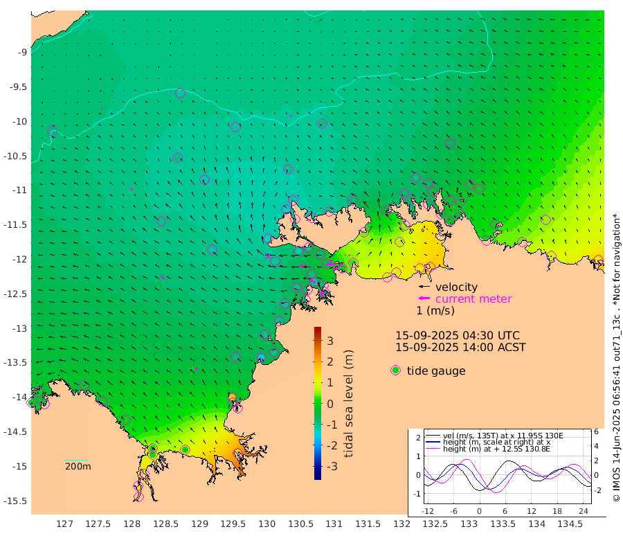 47cm/s -103T +4cm/s rms + 6cm/s 51T. Darwin_C1 52m 33cm/s -85T +4cm/s rms + 7cm/s -161T. Darwin_CW1 22m 46cm/s -106T +4cm/s rms + 8cm/s 61T. Darwin_CW2 34m 7cm/s -41T +3cm/s rms + 9cm/s 98T. Darwin_CW3 22m 57cm/s -93T +5cm/s rms + 7cm/s 88T. Darwin_C3 56m 27cm/s -115T +2cm/s rms + 9cm/s -126T. Darwin_CTbW 22m 10cm/s -42T +9cm/s rms + 2cm/s -110T. NWSLYN 196m 59cm/s -89T +1cm/s rms + 1cm/s -47T. DARBGF 30m 9cm/s -109T +7cm/s rms + 2cm/s -137T. ITFTIS 464m 18cm/s -30T +9cm/s rms + 1cm/s 74T. ITFMHB 146m 29cm/s -32T +4cm/s rms + 1cm/s -134T. ITFJBG 61m 36cm/s -55T +6cm/s rms + 4cm/s 121T. ITFFTB 108m 58cm/s -58T +4cm/s rms + 3cm/s 80T. NRSDAR 19m -2cm Carronade Island -7cm Guy Point -5cm Napier Broome Bay -19cm Lesueur Island -7cm Reveley Island -19cm Rocky Island 19cm Cape Domett 13cm Lacrosse Island 63cm Adolphus Island 118cm Pender Point 153cm Wyndham -96cm The Boxers -83cm Unnamed Shoal -106cm Loxton Shoal 15cm Pelican Island -115cm Calder Shoal -101cm Evans Shoal 99cm Quoin Island -42cm Port Keats -22cm Jones Point 172cm Catfish Island -86cm Cape Scott Offshore -163cm Cape Ford -94cm Anson Bay -100cm Goodrich Bank -98cm Peron Island North -100cm Point Jenny -103cm Native Point -100cm Fish Reef -99cm Tapa Bay -127cm Point Fawcett (Offshore) -90cm Burge Point -114cm Munkunuwa -105cm Beagle A -81cm Parsons Bank -83cm Fenton Patches -87cm Lynedoch Bank -64cm Hancox Shoal Area -80cm Nightcliff -81cm Darwin -103cm Charles Point Patches -6cm Glyde Point 74cm Chambers Bay 99cm Point Stuart 23cm Cape Hotham 63cm Christine Reef 117cm West Alligator Head 152cm East Field Island 46cm Two Hills Bay -107cm Newby Shoal 38cm Camp Point -108cm Medina Inlet South -127cm South Barlow Point -125cm St. Asaph Bay -104cm Cape Van Dieman -105cm Snake Bay -95cm Cache Point -87cm Echo Shoal -77cm Point Jahleel (Off) -41cm Cape Don -68cm Port Essington -69cm Smith Point - West -60cm NW Peacock Island -79cm North Of Jones Shoal -25cm Peacock Island -23cm Point David -59cm D'urville Point -50cm Money Shoal -16cm Copeland Island -26cm Cape Cockburn -34cm One Tree Point -13cm Hogmany Shoal -24cm New Year Island - West -21cm Grant Island 12cm Aurari Bay 35cm Cuthbert Point 0cm North Goulburn Island 45cm Paxie Shoal 76cm Entrance Island 120cm Yabooma Island