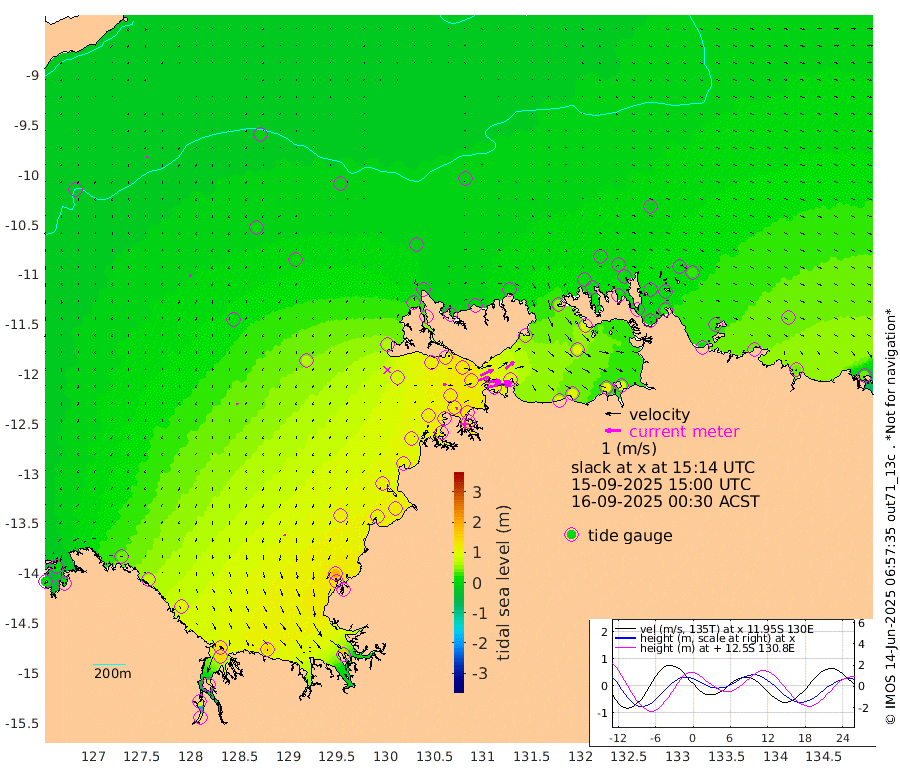 158cm/s 78T +4cm/s rms + 6cm/s 51T. Darwin_C1 52m 101cm/s 92T +4cm/s rms + 7cm/s -161T. Darwin_CW1 22m 70cm/s 72T +4cm/s rms + 8cm/s 61T. Darwin_CW2 34m 71cm/s 51T +3cm/s rms + 9cm/s 98T. Darwin_CW3 22m 100cm/s 89T +5cm/s rms + 7cm/s 88T. Darwin_C3 56m 92cm/s 65T +2cm/s rms + 9cm/s -126T. Darwin_CTbW 22m 0cm/s -20T +9cm/s rms + 2cm/s -110T. NWSLYN 196m 19cm/s 77T +1cm/s rms + 1cm/s -47T. DARBGF 30m 6cm/s -151T +7cm/s rms + 2cm/s -137T. ITFTIS 464m 17cm/s -163T +9cm/s rms + 1cm/s 74T. ITFMHB 146m 11cm/s -164T +4cm/s rms + 1cm/s -134T. ITFJBG 61m 10cm/s -166T +6cm/s rms + 4cm/s 121T. ITFFTB 108m 10cm/s 89T +4cm/s rms + 3cm/s 80T. NRSDAR 19m 12cm Carronade Island 14cm Guy Point 15cm Napier Broome Bay 45cm Lesueur Island 104cm Reveley Island 78cm Rocky Island 140cm Cape Domett 131cm Lacrosse Island 132cm Adolphus Island 112cm Pender Point 104cm Wyndham 22cm The Boxers 18cm Unnamed Shoal -11cm Loxton Shoal 146cm Pelican Island 15cm Calder Shoal 0cm Evans Shoal 162cm Quoin Island 138cm Port Keats 129cm Jones Point 184cm Catfish Island 111cm Cape Scott Offshore 94cm Cape Ford 117cm Anson Bay -3cm Goodrich Bank 109cm Peron Island North 109cm Point Jenny 105cm Native Point 112cm Fish Reef 116cm Tapa Bay 61cm Point Fawcett (Offshore) 120cm Burge Point 112cm Munkunuwa 87cm Beagle A 119cm Parsons Bank 113cm Fenton Patches -10cm Lynedoch Bank 117cm Hancox Shoal Area 126cm Nightcliff 124cm Darwin 108cm Charles Point Patches 98cm Glyde Point 91cm Chambers Bay 94cm Point Stuart 90cm Cape Hotham 90cm Christine Reef 105cm West Alligator Head 94cm East Field Island 85cm Two Hills Bay 62cm Newby Shoal 66cm Camp Point 112cm Medina Inlet South 39cm South Barlow Point 28cm St. Asaph Bay 0cm Cape Van Dieman 0cm Snake Bay 7cm Cache Point -22cm Echo Shoal 17cm Point Jahleel (Off) 45cm Cape Don 14cm Port Essington 19cm Smith Point - West 12cm NW Peacock Island 7cm North Of Jones Shoal 3cm Peacock Island 13cm Point David 16cm D'urville Point 0cm Money Shoal 14cm Copeland Island 25cm Cape Cockburn 16cm One Tree Point 24cm Hogmany Shoal 13cm New Year Island - West 18cm Grant Island 22cm Aurari Bay 35cm Cuthbert Point 26cm North Goulburn Island 36cm Paxie Shoal 39cm Entrance Island 41cm Yabooma Island
