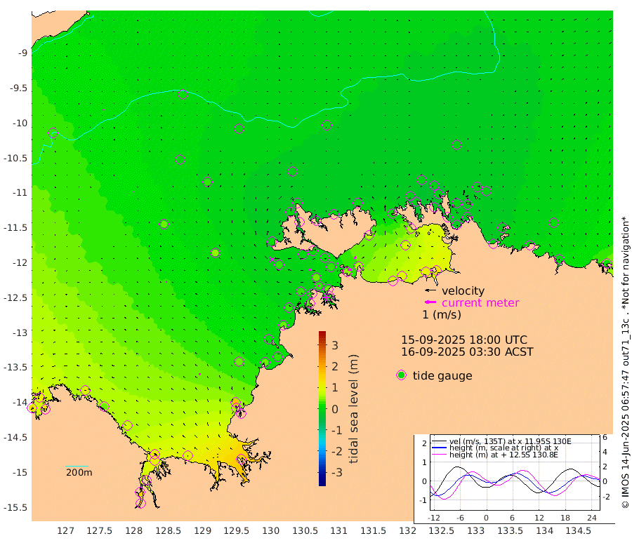 7cm/s 83T +4cm/s rms + 6cm/s 51T. Darwin_C1 52m 34cm/s 92T +4cm/s rms + 7cm/s -161T. Darwin_CW1 22m 9cm/s -117T +4cm/s rms + 8cm/s 61T. Darwin_CW2 34m 22cm/s 27T +3cm/s rms + 9cm/s 98T. Darwin_CW3 22m 5cm/s 110T +5cm/s rms + 7cm/s 88T. Darwin_C3 56m 5cm/s 86T +2cm/s rms + 9cm/s -126T. Darwin_CTbW 22m 3cm/s 62T +9cm/s rms + 2cm/s -110T. NWSLYN 196m 17cm/s -83T +1cm/s rms + 1cm/s -47T. DARBGF 30m 3cm/s -3T +7cm/s rms + 2cm/s -137T. ITFTIS 464m 2cm/s 16T +9cm/s rms + 1cm/s 74T. ITFMHB 146m 15cm/s -26T +4cm/s rms + 1cm/s -134T. ITFJBG 61m 12cm/s -33T +6cm/s rms + 4cm/s 121T. ITFFTB 108m 17cm/s -61T +4cm/s rms + 3cm/s 80T. NRSDAR 19m 121cm Carronade Island 127cm Guy Point 127cm Napier Broome Bay 103cm Lesueur Island 82cm Reveley Island 43cm Rocky Island 112cm Cape Domett 113cm Lacrosse Island 125cm Adolphus Island 168cm Pender Point 191cm Wyndham 34cm The Boxers 10cm Unnamed Shoal 22cm Loxton Shoal 90cm Pelican Island 24cm Calder Shoal 9cm Evans Shoal 142cm Quoin Island 71cm Port Keats 60cm Jones Point 175cm Catfish Island 39cm Cape Scott Offshore 34cm Cape Ford 30cm Anson Bay -1cm Goodrich Bank 20cm Peron Island North 35cm Point Jenny 32cm Native Point 26cm Fish Reef 30cm Tapa Bay 13cm Point Fawcett (Offshore) 39cm Burge Point 8cm Munkunuwa 34cm Beagle A 14cm Parsons Bank 40cm Fenton Patches 1cm Lynedoch Bank 30cm Hancox Shoal Area 39cm Nightcliff 27cm Darwin 25cm Charles Point Patches 53cm Glyde Point 91cm Chambers Bay 91cm Point Stuart 58cm Cape Hotham 90cm Christine Reef 103cm West Alligator Head 124cm East Field Island 63cm Two Hills Bay 48cm Newby Shoal 71cm Camp Point 19cm Medina Inlet South -7cm South Barlow Point 3cm St. Asaph Bay -4cm Cape Van Dieman -11cm Snake Bay 5cm Cache Point 34cm Echo Shoal 6cm Point Jahleel (Off) 18cm Cape Don -6cm Port Essington -7cm Smith Point - West -9cm NW Peacock Island -4cm North Of Jones Shoal -3cm Peacock Island -15cm Point David -13cm D'urville Point -4cm Money Shoal -14cm Copeland Island -13cm Cape Cockburn -11cm One Tree Point -7cm Hogmany Shoal -6cm New Year Island - West -9cm Grant Island -8cm Aurari Bay 0cm Cuthbert Point -6cm North Goulburn Island 15cm Paxie Shoal 11cm Entrance Island 18cm Yabooma Island