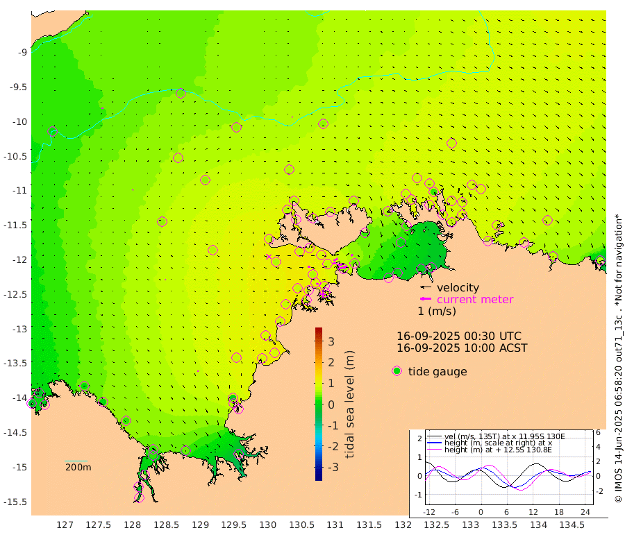 68cm/s 78T +4cm/s rms + 6cm/s 51T. Darwin_C1 52m 29cm/s 84T +4cm/s rms + 7cm/s -161T. Darwin_CW1 22m 31cm/s 77T +4cm/s rms + 8cm/s 61T. Darwin_CW2 34m 22cm/s 54T +3cm/s rms + 9cm/s 98T. Darwin_CW3 22m 48cm/s 89T +5cm/s rms + 7cm/s 88T. Darwin_C3 56m 42cm/s 63T +2cm/s rms + 9cm/s -126T. Darwin_CTbW 22m 6cm/s 120T +9cm/s rms + 2cm/s -110T. NWSLYN 196m 24cm/s 88T +1cm/s rms + 1cm/s -47T. DARBGF 30m 6cm/s 3T +7cm/s rms + 2cm/s -137T. ITFTIS 464m 5cm/s 19T +9cm/s rms + 1cm/s 74T. ITFMHB 146m 7cm/s 161T +4cm/s rms + 1cm/s -134T. ITFJBG 61m 5cm/s 108T +6cm/s rms + 4cm/s 121T. ITFFTB 108m 19cm/s 113T +4cm/s rms + 3cm/s 80T. NRSDAR 19m -23cm Carronade Island -25cm Guy Point -19cm Napier Broome Bay 17cm Lesueur Island 25cm Reveley Island 6cm Rocky Island 31cm Cape Domett 23cm Lacrosse Island 24cm Adolphus Island -20cm Pender Point -34cm Wyndham 51cm The Boxers 67cm Unnamed Shoal 41cm Loxton Shoal 44cm Pelican Island 50cm Calder Shoal 47cm Evans Shoal 21cm Quoin Island 60cm Port Keats 57cm Jones Point -2cm Catfish Island 68cm Cape Scott Offshore 87cm Cape Ford 80cm Anson Bay 57cm Goodrich Bank 85cm Peron Island North 69cm Point Jenny 70cm Native Point 77cm Fish Reef 77cm Tapa Bay 73cm Point Fawcett (Offshore) 75cm Burge Point 75cm Munkunuwa 63cm Beagle A 88cm Parsons Bank 66cm Fenton Patches 53cm Lynedoch Bank 77cm Hancox Shoal Area 71cm Nightcliff 93cm Darwin 97cm Charles Point Patches 52cm Glyde Point 10cm Chambers Bay 6cm Point Stuart 39cm Cape Hotham 8cm Christine Reef -3cm West Alligator Head -22cm East Field Island 30cm Two Hills Bay 65cm Newby Shoal 25cm Camp Point 86cm Medina Inlet South 78cm South Barlow Point 64cm St. Asaph Bay 60cm Cape Van Dieman 70cm Snake Bay 60cm Cache Point 21cm Echo Shoal 58cm Point Jahleel (Off) 62cm Cape Don 74cm Port Essington 71cm Smith Point - West 73cm NW Peacock Island 69cm North Of Jones Shoal 26cm Peacock Island 81cm Point David 77cm D'urville Point 73cm Money Shoal 78cm Copeland Island 104cm Cape Cockburn 82cm One Tree Point 95cm Hogmany Shoal 79cm New Year Island - West 83cm Grant Island 76cm Aurari Bay 80cm Cuthbert Point 83cm North Goulburn Island 73cm Paxie Shoal 68cm Entrance Island 60cm Yabooma Island