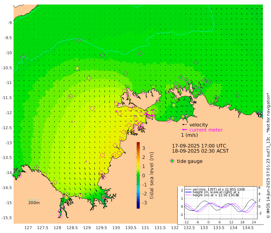 146cm/s 78T +4cm/s rms + 6cm/s 51T. Darwin_C1 52m 95cm/s 91T +4cm/s rms + 7cm/s -161T. Darwin_CW1 22m 61cm/s 73T +4cm/s rms + 8cm/s 61T. Darwin_CW2 34m 60cm/s 52T +3cm/s rms + 9cm/s 98T. Darwin_CW3 22m 76cm/s 89T +5cm/s rms + 7cm/s 88T. Darwin_C3 56m 88cm/s 65T +2cm/s rms + 9cm/s -126T. Darwin_CTbW 22m 1cm/s 150T +9cm/s rms + 2cm/s -110T. NWSLYN 196m 42cm/s 88T +1cm/s rms + 1cm/s -47T. DARBGF 30m 3cm/s 138T +7cm/s rms + 2cm/s -137T. ITFTIS 464m 17cm/s 176T +9cm/s rms + 1cm/s 74T. ITFMHB 146m 25cm/s 159T +4cm/s rms + 1cm/s -134T. ITFJBG 61m 24cm/s 142T +6cm/s rms + 4cm/s 121T. ITFFTB 108m 38cm/s 116T +4cm/s rms + 3cm/s 80T. NRSDAR 19m 15cm Carronade Island 11cm Guy Point 20cm Napier Broome Bay 45cm Lesueur Island 74cm Reveley Island 72cm Rocky Island 87cm Cape Domett 89cm Lacrosse Island 54cm Adolphus Island 19cm Pender Point 2cm Wyndham 52cm The Boxers 56cm Unnamed Shoal 13cm Loxton Shoal 94cm Pelican Island 47cm Calder Shoal 22cm Evans Shoal 52cm Quoin Island 115cm Port Keats 111cm Jones Point 91cm Catfish Island 113cm Cape Scott Offshore 133cm Cape Ford 121cm Anson Bay 25cm Goodrich Bank 115cm Peron Island North 126cm Point Jenny 125cm Native Point 129cm Fish Reef 127cm Tapa Bay 91cm Point Fawcett (Offshore) 129cm Burge Point 125cm Munkunuwa 118cm Beagle A 116cm Parsons Bank 128cm Fenton Patches 13cm Lynedoch Bank 108cm Hancox Shoal Area 126cm Nightcliff 118cm Darwin 113cm Charles Point Patches 81cm Glyde Point 47cm Chambers Bay 43cm Point Stuart 63cm Cape Hotham 48cm Christine Reef 46cm West Alligator Head 28cm East Field Island 50cm Two Hills Bay 92cm Newby Shoal 39cm Camp Point 122cm Medina Inlet South 69cm South Barlow Point 60cm St. Asaph Bay 30cm Cape Van Dieman 28cm Snake Bay 33cm Cache Point 3cm Echo Shoal 34cm Point Jahleel (Off) 45cm Cape Don 26cm Port Essington 31cm Smith Point - West 21cm NW Peacock Island 21cm North Of Jones Shoal 7cm Peacock Island 10cm Point David 24cm D'urville Point 7cm Money Shoal 8cm Copeland Island 17cm Cape Cockburn 13cm One Tree Point 10cm Hogmany Shoal 12cm New Year Island - West 12cm Grant Island 11cm Aurari Bay 9cm Cuthbert Point 12cm North Goulburn Island 3cm Paxie Shoal -2cm Entrance Island -19cm Yabooma Island