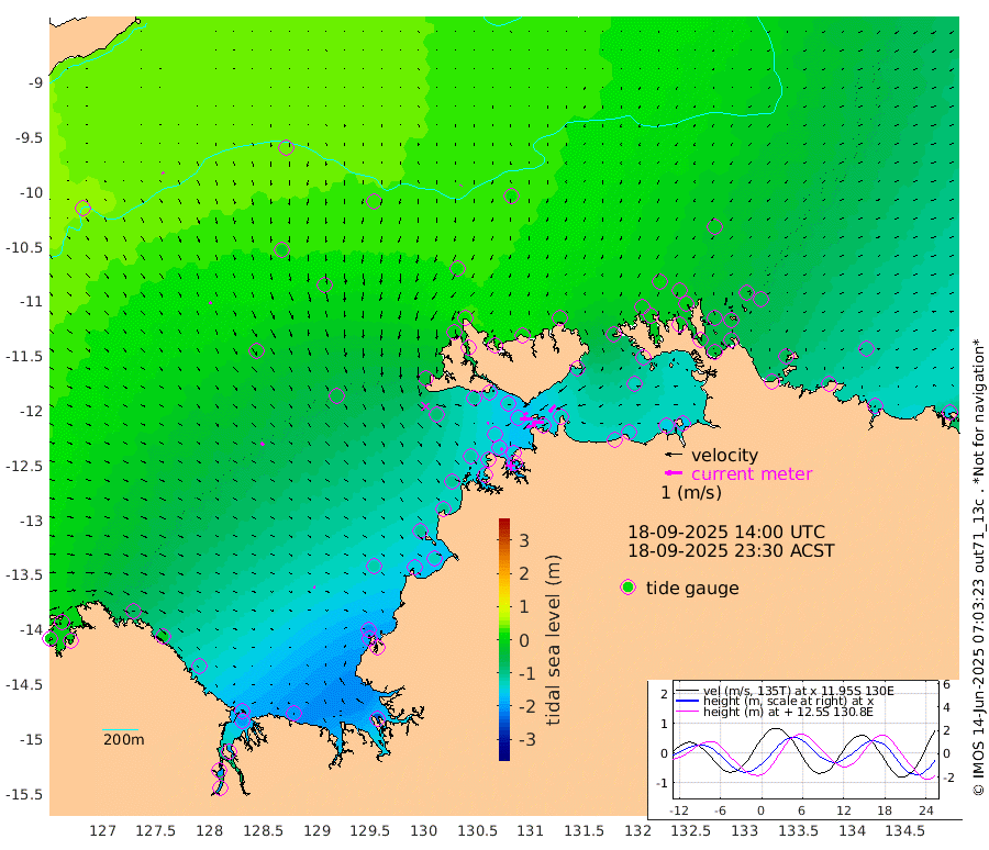 58cm/s -101T +4cm/s rms + 6cm/s 51T. Darwin_C1 52m 67cm/s -93T +4cm/s rms + 7cm/s -161T. Darwin_CW1 22m 36cm/s -105T +4cm/s rms + 8cm/s 61T. Darwin_CW2 34m 52cm/s -141T +3cm/s rms + 9cm/s 98T. Darwin_CW3 22m 68cm/s -90T +5cm/s rms + 7cm/s 88T. Darwin_C3 56m 26cm/s -115T +2cm/s rms + 9cm/s -126T. Darwin_CTbW 22m 5cm/s -138T +9cm/s rms + 2cm/s -110T. NWSLYN 196m 11cm/s 121T +1cm/s rms + 1cm/s -47T. DARBGF 30m 10cm/s 149T +7cm/s rms + 2cm/s -137T. ITFTIS 464m 16cm/s 166T +9cm/s rms + 1cm/s 74T. ITFMHB 146m 11cm/s 119T +4cm/s rms + 1cm/s -134T. ITFJBG 61m 20cm/s 133T +6cm/s rms + 4cm/s 121T. ITFFTB 108m 14cm/s 136T +4cm/s rms + 3cm/s 80T. NRSDAR 19m -5cm Carronade Island -6cm Guy Point -6cm Napier Broome Bay -68cm Lesueur Island -124cm Reveley Island -21cm Rocky Island -192cm Cape Domett -175cm Lacrosse Island -199cm Adolphus Island -195cm Pender Point -193cm Wyndham -10cm The Boxers -22cm Unnamed Shoal 40cm Loxton Shoal -198cm Pelican Island 8cm Calder Shoal 32cm Evans Shoal -237cm Quoin Island -179cm Port Keats -185cm Jones Point -205cm Catfish Island -113cm Cape Scott Offshore -149cm Cape Ford -127cm Anson Bay 18cm Goodrich Bank -107cm Peron Island North -109cm Point Jenny -106cm Native Point -117cm Fish Reef -126cm Tapa Bay -39cm Point Fawcett (Offshore) -148cm Burge Point -105cm Munkunuwa -88cm Beagle A -135cm Parsons Bank -135cm Fenton Patches 21cm Lynedoch Bank -140cm Hancox Shoal Area -142cm Nightcliff -159cm Darwin -141cm Charles Point Patches -139cm Glyde Point -144cm Chambers Bay -145cm Point Stuart -130cm Cape Hotham -127cm Christine Reef -155cm West Alligator Head -162cm East Field Island -114cm Two Hills Bay -54cm Newby Shoal -123cm Camp Point -119cm Medina Inlet South -21cm South Barlow Point -4cm St. Asaph Bay 16cm Cape Van Dieman 14cm Snake Bay 8cm Cache Point 47cm Echo Shoal -6cm Point Jahleel (Off) -52cm Cape Don -16cm Port Essington -9cm Smith Point - West -11cm NW Peacock Island 2cm North Of Jones Shoal -1cm Peacock Island -41cm Point David -14cm D'urville Point -20cm Money Shoal -43cm Copeland Island -57cm Cape Cockburn -37cm One Tree Point -61cm Hogmany Shoal -41cm New Year Island - West -44cm Grant Island -61cm Aurari Bay -83cm Cuthbert Point -65cm North Goulburn Island -106cm Paxie Shoal -119cm Entrance Island -149cm Yabooma Island