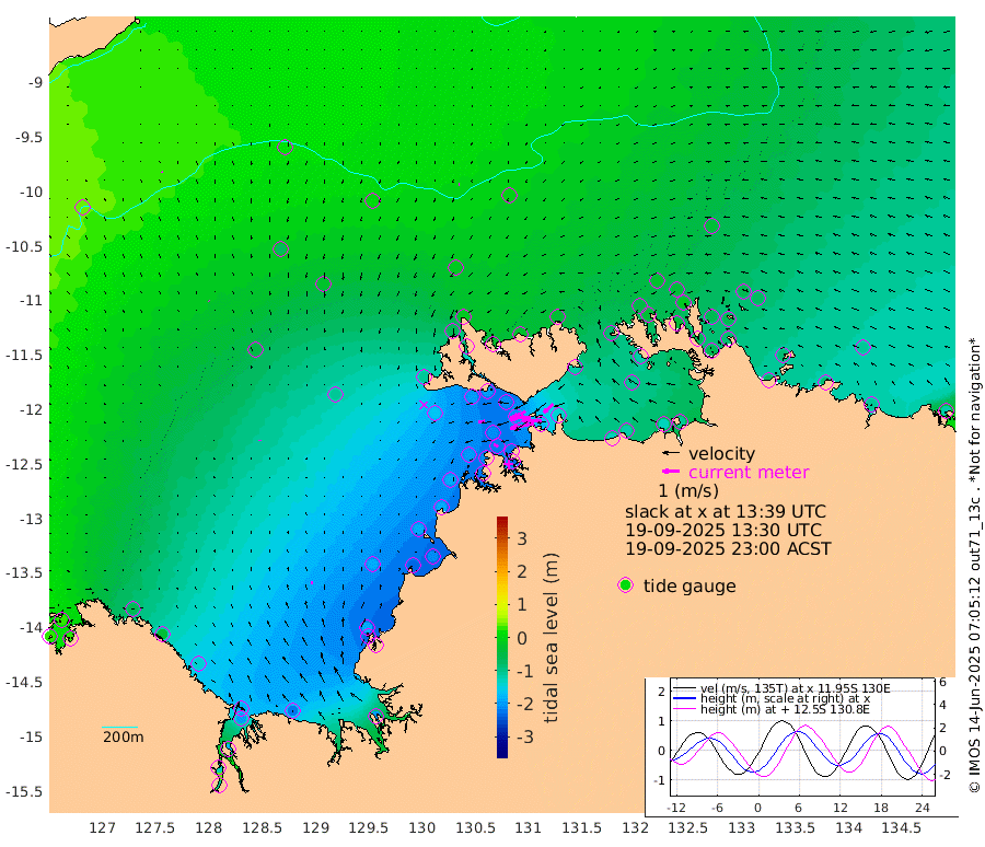 143cm/s -102T +4cm/s rms + 6cm/s 51T. Darwin_C1 52m 115cm/s -90T +4cm/s rms + 7cm/s -161T. Darwin_CW1 22m 81cm/s -106T +4cm/s rms + 8cm/s 61T. Darwin_CW2 34m 74cm/s -135T +3cm/s rms + 9cm/s 98T. Darwin_CW3 22m 121cm/s -90T +5cm/s rms + 7cm/s 88T. Darwin_C3 56m 79cm/s -115T +2cm/s rms + 9cm/s -126T. Darwin_CTbW 22m 5cm/s -88T +9cm/s rms + 2cm/s -110T. NWSLYN 196m 35cm/s -97T +1cm/s rms + 1cm/s -47T. DARBGF 30m 8cm/s 166T +7cm/s rms + 2cm/s -137T. ITFTIS 464m 4cm/s 165T +9cm/s rms + 1cm/s 74T. ITFMHB 146m 16cm/s -8T +4cm/s rms + 1cm/s -134T. ITFJBG 61m 3cm/s -21T +6cm/s rms + 4cm/s 121T. ITFFTB 108m 29cm/s -68T +4cm/s rms + 3cm/s 80T. NRSDAR 19m 27cm Carronade Island 29cm Guy Point 24cm Napier Broome Bay -63cm Lesueur Island -138cm Reveley Island -42cm Rocky Island -198cm Cape Domett -184cm Lacrosse Island -171cm Adolphus Island -125cm Pender Point -100cm Wyndham -47cm The Boxers -71cm Unnamed Shoal 22cm Loxton Shoal -218cm Pelican Island -32cm Calder Shoal 5cm Evans Shoal -199cm Quoin Island -226cm Port Keats -233cm Jones Point -181cm Catfish Island -182cm Cape Scott Offshore -234cm Cape Ford -207cm Anson Bay -16cm Goodrich Bank -184cm Peron Island North -187cm Point Jenny -185cm Native Point -200cm Fish Reef -208cm Tapa Bay -111cm Point Fawcett (Offshore) -223cm Burge Point -193cm Munkunuwa -162cm Beagle A -210cm Parsons Bank -207cm Fenton Patches -3cm Lynedoch Bank -204cm Hancox Shoal Area -215cm Nightcliff -232cm Darwin -217cm Charles Point Patches -169cm Glyde Point -130cm Chambers Bay -122cm Point Stuart -144cm Cape Hotham -112cm Christine Reef -126cm West Alligator Head -110cm East Field Island -114cm Two Hills Bay -107cm Newby Shoal -117cm Camp Point -202cm Medina Inlet South -85cm South Barlow Point -61cm St. Asaph Bay -22cm Cape Van Dieman -27cm Snake Bay -27cm Cache Point 41cm Echo Shoal -38cm Point Jahleel (Off) -81cm Cape Don -48cm Port Essington -43cm Smith Point - West -39cm NW Peacock Island -28cm North Of Jones Shoal -12cm Peacock Island -61cm Point David -45cm D'urville Point -39cm Money Shoal -61cm Copeland Island -81cm Cape Cockburn -59cm One Tree Point -77cm Hogmany Shoal -59cm New Year Island - West -63cm Grant Island -75cm Aurari Bay -88cm Cuthbert Point -80cm North Goulburn Island -104cm Paxie Shoal -108cm Entrance Island -120cm Yabooma Island