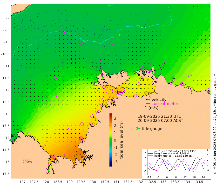 91cm/s 79T +4cm/s rms + 6cm/s 51T. Darwin_C1 52m 93cm/s 91T +4cm/s rms + 7cm/s -161T. Darwin_CW1 22m 69cm/s 71T +4cm/s rms + 8cm/s 61T. Darwin_CW2 34m 66cm/s 45T +3cm/s rms + 9cm/s 98T. Darwin_CW3 22m 114cm/s 90T +5cm/s rms + 7cm/s 88T. Darwin_C3 56m 44cm/s 66T +2cm/s rms + 9cm/s -126T. Darwin_CTbW 22m 8cm/s -5T +9cm/s rms + 2cm/s -110T. NWSLYN 196m 14cm/s -55T +1cm/s rms + 1cm/s -47T. DARBGF 30m 7cm/s -57T +7cm/s rms + 2cm/s -137T. ITFTIS 464m 12cm/s -40T +9cm/s rms + 1cm/s 74T. ITFMHB 146m 18cm/s -64T +4cm/s rms + 1cm/s -134T. ITFJBG 61m 27cm/s -58T +6cm/s rms + 4cm/s 121T. ITFFTB 108m 25cm/s -43T +4cm/s rms + 3cm/s 80T. NRSDAR 19m -6cm Carronade Island -3cm Guy Point 1cm Napier Broome Bay 73cm Lesueur Island 159cm Reveley Island 95cm Rocky Island 249cm Cape Domett 220cm Lacrosse Island 264cm Adolphus Island 265cm Pender Point 254cm Wyndham 6cm The Boxers 9cm Unnamed Shoal -41cm Loxton Shoal 247cm Pelican Island -11cm Calder Shoal -40cm Evans Shoal 316cm Quoin Island 220cm Port Keats 220cm Jones Point 221cm Catfish Island 129cm Cape Scott Offshore 165cm Cape Ford 139cm Anson Bay -30cm Goodrich Bank 118cm Peron Island North 117cm Point Jenny 117cm Native Point 128cm Fish Reef 142cm Tapa Bay 32cm Point Fawcett (Offshore) 167cm Burge Point 131cm Munkunuwa 95cm Beagle A 153cm Parsons Bank 154cm Fenton Patches -33cm Lynedoch Bank 155cm Hancox Shoal Area 159cm Nightcliff 182cm Darwin 155cm Charles Point Patches 151cm Glyde Point 149cm Chambers Bay 152cm Point Stuart 135cm Cape Hotham 134cm Christine Reef 169cm West Alligator Head 176cm East Field Island 116cm Two Hills Bay 56cm Newby Shoal 126cm Camp Point 139cm Medina Inlet South 18cm South Barlow Point -3cm St. Asaph Bay -31cm Cape Van Dieman -27cm Snake Bay -27cm Cache Point -56cm Echo Shoal -8cm Point Jahleel (Off) 37cm Cape Don -8cm Port Essington -15cm Smith Point - West -16cm NW Peacock Island -29cm North Of Jones Shoal -10cm Peacock Island 1cm Point David -16cm D'urville Point -16cm Money Shoal 2cm Copeland Island 3cm Cape Cockburn -1cm One Tree Point 10cm Hogmany Shoal 3cm New Year Island - West 6cm Grant Island 18cm Aurari Bay 36cm Cuthbert Point 20cm North Goulburn Island 56cm Paxie Shoal 69cm Entrance Island 85cm Yabooma Island