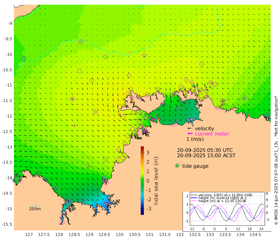 54cm/s 78T +4cm/s rms + 6cm/s 51T. Darwin_C1 52m 25cm/s 77T +4cm/s rms + 7cm/s -161T. Darwin_CW1 22m 17cm/s 80T +4cm/s rms + 8cm/s 61T. Darwin_CW2 34m 7cm/s 143T +3cm/s rms + 9cm/s 98T. Darwin_CW3 22m 4cm/s 65T +5cm/s rms + 7cm/s 88T. Darwin_C3 56m 41cm/s 62T +2cm/s rms + 9cm/s -126T. Darwin_CTbW 22m 12cm/s 149T +9cm/s rms + 2cm/s -110T. NWSLYN 196m 56cm/s 94T +1cm/s rms + 1cm/s -47T. DARBGF 30m 7cm/s 56T +7cm/s rms + 2cm/s -137T. ITFTIS 464m 12cm/s 137T +9cm/s rms + 1cm/s 74T. ITFMHB 146m 38cm/s 143T +4cm/s rms + 1cm/s -134T. ITFJBG 61m 40cm/s 126T +6cm/s rms + 4cm/s 121T. ITFFTB 108m 57cm/s 124T +4cm/s rms + 3cm/s 80T. NRSDAR 19m -28cm Carronade Island -33cm Guy Point -31cm Napier Broome Bay -21cm Lesueur Island -39cm Reveley Island -58cm Rocky Island -86cm Cape Domett -65cm Lacrosse Island -140cm Adolphus Island -194cm Pender Point -215cm Wyndham 52cm The Boxers 75cm Unnamed Shoal 36cm Loxton Shoal -61cm Pelican Island 58cm Calder Shoal 51cm Evans Shoal -174cm Quoin Island -14cm Port Keats -9cm Jones Point -99cm Catfish Island 52cm Cape Scott Offshore 69cm Cape Ford 68cm Anson Bay 61cm Goodrich Bank 66cm Peron Island North 72cm Point Jenny 71cm Native Point 71cm Fish Reef 66cm Tapa Bay 94cm Point Fawcett (Offshore) 49cm Burge Point 67cm Munkunuwa 70cm Beagle A 51cm Parsons Bank 48cm Fenton Patches 49cm Lynedoch Bank 40cm Hancox Shoal Area 50cm Nightcliff 41cm Darwin 59cm Charles Point Patches -2cm Glyde Point -52cm Chambers Bay -68cm Point Stuart -14cm Cape Hotham -54cm Christine Reef -85cm West Alligator Head -116cm East Field Island -27cm Two Hills Bay 56cm Newby Shoal -33cm Camp Point 64cm Medina Inlet South 83cm South Barlow Point 80cm St. Asaph Bay 69cm Cape Van Dieman 70cm Snake Bay 67cm Cache Point 30cm Echo Shoal 55cm Point Jahleel (Off) 41cm Cape Don 62cm Port Essington 64cm Smith Point - West 61cm NW Peacock Island 67cm North Of Jones Shoal 24cm Peacock Island 58cm Point David 65cm D'urville Point 58cm Money Shoal 55cm Copeland Island 72cm Cape Cockburn 59cm One Tree Point 60cm Hogmany Shoal 54cm New Year Island - West 52cm Grant Island 48cm Aurari Bay 34cm Cuthbert Point 50cm North Goulburn Island 28cm Paxie Shoal 11cm Entrance Island -3cm Yabooma Island