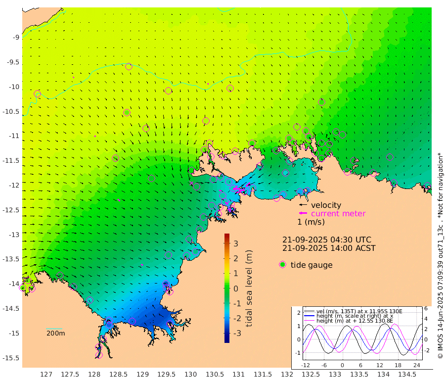 78cm/s -101T +4cm/s rms + 6cm/s 51T. Darwin_C1 52m 75cm/s -91T +4cm/s rms + 7cm/s -161T. Darwin_CW1 22m 47cm/s -107T +4cm/s rms + 8cm/s 61T. Darwin_CW2 34m 71cm/s -139T +3cm/s rms + 9cm/s 98T. Darwin_CW3 22m 91cm/s -91T +5cm/s rms + 7cm/s 88T. Darwin_C3 56m 27cm/s -114T +2cm/s rms + 9cm/s -126T. Darwin_CTbW 22m 14cm/s 157T +9cm/s rms + 2cm/s -110T. NWSLYN 196m 32cm/s 105T +1cm/s rms + 1cm/s -47T. DARBGF 30m 10cm/s 77T +7cm/s rms + 2cm/s -137T. ITFTIS 464m 15cm/s 125T +9cm/s rms + 1cm/s 74T. ITFMHB 146m 27cm/s 117T +4cm/s rms + 1cm/s -134T. ITFJBG 61m 38cm/s 118T +6cm/s rms + 4cm/s 121T. ITFFTB 108m 39cm/s 135T +4cm/s rms + 3cm/s 80T. NRSDAR 19m 37cm Carronade Island 37cm Guy Point 40cm Napier Broome Bay -42cm Lesueur Island -136cm Reveley Island -91cm Rocky Island -234cm Cape Domett -202cm Lacrosse Island -279cm Adolphus Island -265cm Pender Point -267cm Wyndham 39cm The Boxers 43cm Unnamed Shoal 80cm Loxton Shoal -234cm Pelican Island 57cm Calder Shoal 72cm Evans Shoal -339cm Quoin Island -195cm Port Keats -193cm Jones Point -255cm Catfish Island -88cm Cape Scott Offshore -103cm Cape Ford -94cm Anson Bay 64cm Goodrich Bank -84cm Peron Island North -72cm Point Jenny -70cm Native Point -92cm Fish Reef -95cm Tapa Bay 16cm Point Fawcett (Offshore) -129cm Burge Point -87cm Munkunuwa -57cm Beagle A -123cm Parsons Bank -122cm Fenton Patches 62cm Lynedoch Bank -127cm Hancox Shoal Area -125cm Nightcliff -149cm Darwin -114cm Charles Point Patches -139cm Glyde Point -154cm Chambers Bay -169cm Point Stuart -133cm Cape Hotham -143cm Christine Reef -190cm West Alligator Head -207cm East Field Island -122cm Two Hills Bay -17cm Newby Shoal -121cm Camp Point -97cm Medina Inlet South 22cm South Barlow Point 44cm St. Asaph Bay 66cm Cape Van Dieman 63cm Snake Bay 58cm Cache Point 89cm Echo Shoal 33cm Point Jahleel (Off) -21cm Cape Don 28cm Port Essington 30cm Smith Point - West 30cm NW Peacock Island 50cm North Of Jones Shoal 16cm Peacock Island 9cm Point David 28cm D'urville Point 32cm Money Shoal 3cm Copeland Island -1cm Cape Cockburn 11cm One Tree Point 0cm Hogmany Shoal 8cm New Year Island - West 2cm Grant Island -22cm Aurari Bay -47cm Cuthbert Point -19cm North Goulburn Island -55cm Paxie Shoal -85cm Entrance Island -117cm Yabooma Island