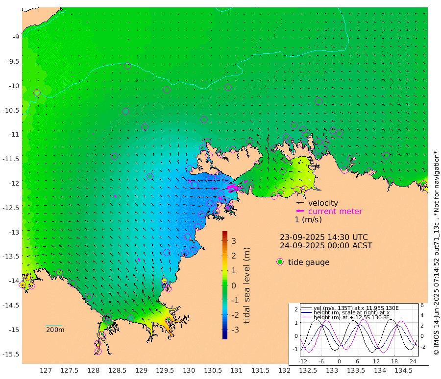 142cm/s -103T +4cm/s rms + 6cm/s 51T. Darwin_C1 52m 110cm/s -89T +4cm/s rms + 7cm/s -161T. Darwin_CW1 22m 113cm/s -108T +4cm/s rms + 8cm/s 61T. Darwin_CW2 34m 51cm/s -123T +3cm/s rms + 9cm/s 98T. Darwin_CW3 22m 139cm/s -92T +5cm/s rms + 7cm/s 88T. Darwin_C3 56m 83cm/s -115T +2cm/s rms + 9cm/s -126T. Darwin_CTbW 22m 4cm/s -44T +9cm/s rms + 2cm/s -110T. NWSLYN 196m 76cm/s -91T +1cm/s rms + 1cm/s -47T. DARBGF 30m 5cm/s -138T +7cm/s rms + 2cm/s -137T. ITFTIS 464m 9cm/s -16T +9cm/s rms + 1cm/s 74T. ITFMHB 146m 44cm/s -23T +4cm/s rms + 1cm/s -134T. ITFJBG 61m 33cm/s -42T +6cm/s rms + 4cm/s 121T. ITFFTB 108m 68cm/s -62T +4cm/s rms + 3cm/s 80T. NRSDAR 19m 129cm Carronade Island 135cm Guy Point 129cm Napier Broome Bay 33cm Lesueur Island -42cm Reveley Island -23cm Rocky Island -55cm Cape Domett -48cm Lacrosse Island -3cm Adolphus Island 104cm Pender Point 160cm Wyndham -47cm The Boxers -81cm Unnamed Shoal 6cm Loxton Shoal -97cm Pelican Island -46cm Calder Shoal -15cm Evans Shoal 14cm Quoin Island -149cm Port Keats -151cm Jones Point 80cm Catfish Island -158cm Cape Scott Offshore -211cm Cape Ford -193cm Anson Bay -45cm Goodrich Bank -168cm Peron Island North -179cm Point Jenny -182cm Native Point -187cm Fish Reef -198cm Tapa Bay -129cm Point Fawcett (Offshore) -193cm Burge Point -204cm Munkunuwa -162cm Beagle A -193cm Parsons Bank -187cm Fenton Patches -25cm Lynedoch Bank -174cm Hancox Shoal Area -192cm Nightcliff -201cm Darwin -199cm Charles Point Patches -94cm Glyde Point 4cm Chambers Bay 34cm Point Stuart -48cm Cape Hotham 11cm Christine Reef 48cm West Alligator Head 93cm East Field Island -5cm Two Hills Bay -97cm Newby Shoal -15cm Camp Point -197cm Medina Inlet South -123cm South Barlow Point -95cm St. Asaph Bay -55cm Cape Van Dieman -61cm Snake Bay -45cm Cache Point 36cm Echo Shoal -46cm Point Jahleel (Off) -54cm Cape Don -53cm Port Essington -54cm Smith Point - West -46cm NW Peacock Island -39cm North Of Jones Shoal -15cm Peacock Island -46cm Point David -54cm D'urville Point -36cm Money Shoal -44cm Copeland Island -51cm Cape Cockburn -44cm One Tree Point -38cm Hogmany Shoal -41cm New Year Island - West -42cm Grant Island -43cm Aurari Bay -31cm Cuthbert Point -42cm North Goulburn Island -26cm Paxie Shoal -20cm Entrance Island 2cm Yabooma Island