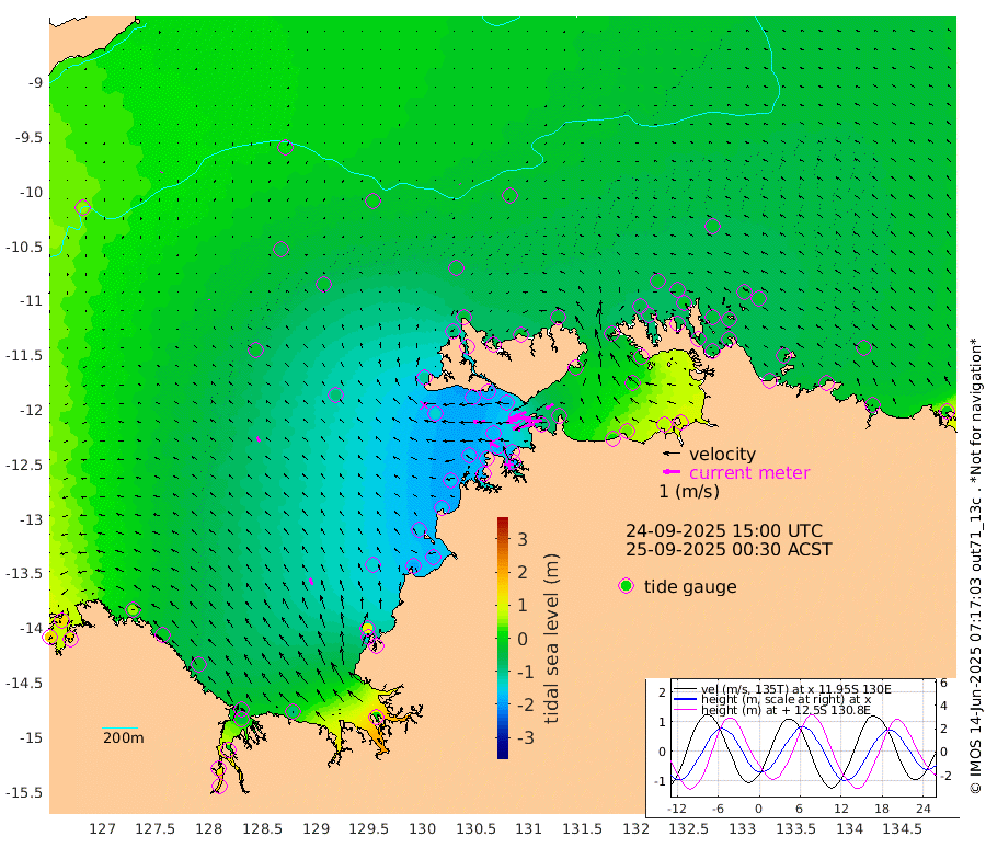 132cm/s -103T +4cm/s rms + 6cm/s 51T. Darwin_C1 52m 99cm/s -89T +4cm/s rms + 7cm/s -161T. Darwin_CW1 22m 110cm/s -109T +4cm/s rms + 8cm/s 61T. Darwin_CW2 34m 48cm/s -121T +3cm/s rms + 9cm/s 98T. Darwin_CW3 22m 132cm/s -92T +5cm/s rms + 7cm/s 88T. Darwin_C3 56m 78cm/s -115T +2cm/s rms + 9cm/s -126T. Darwin_CTbW 22m 2cm/s -42T +9cm/s rms + 2cm/s -110T. NWSLYN 196m 70cm/s -91T +1cm/s rms + 1cm/s -47T. DARBGF 30m 3cm/s -138T +7cm/s rms + 2cm/s -137T. ITFTIS 464m 8cm/s -9T +9cm/s rms + 1cm/s 74T. ITFMHB 146m 42cm/s -22T +4cm/s rms + 1cm/s -134T. ITFJBG 61m 30cm/s -40T +6cm/s rms + 4cm/s 121T. ITFFTB 108m 61cm/s -63T +4cm/s rms + 3cm/s 80T. NRSDAR 19m 144cm Carronade Island 149cm Guy Point 145cm Napier Broome Bay 51cm Lesueur Island -30cm Reveley Island -17cm Rocky Island -43cm Cape Domett -33cm Lacrosse Island 0cm Adolphus Island 109cm Pender Point 165cm Wyndham -31cm The Boxers -62cm Unnamed Shoal 16cm Loxton Shoal -86cm Pelican Island -31cm Calder Shoal -5cm Evans Shoal 19cm Quoin Island -137cm Port Keats -135cm Jones Point 106cm Catfish Island -141cm Cape Scott Offshore -189cm Cape Ford -175cm Anson Bay -35cm Goodrich Bank -150cm Peron Island North -162cm Point Jenny -165cm Native Point -168cm Fish Reef -181cm Tapa Bay -110cm Point Fawcett (Offshore) -178cm Burge Point -189cm Munkunuwa -146cm Beagle A -180cm Parsons Bank -172cm Fenton Patches -17cm Lynedoch Bank -163cm Hancox Shoal Area -179cm Nightcliff -187cm Darwin -184cm Charles Point Patches -82cm Glyde Point 13cm Chambers Bay 42cm Point Stuart -37cm Cape Hotham 17cm Christine Reef 57cm West Alligator Head 100cm East Field Island 4cm Two Hills Bay -82cm Newby Shoal -7cm Camp Point -181cm Medina Inlet South -111cm South Barlow Point -81cm St. Asaph Bay -44cm Cape Van Dieman -51cm Snake Bay -34cm Cache Point 47cm Echo Shoal -36cm Point Jahleel (Off) -45cm Cape Don -45cm Port Essington -47cm Smith Point - West -39cm NW Peacock Island -31cm North Of Jones Shoal -12cm Peacock Island -41cm Point David -48cm D'urville Point -30cm Money Shoal -39cm Copeland Island -45cm Cape Cockburn -38cm One Tree Point -31cm Hogmany Shoal -35cm New Year Island - West -37cm Grant Island -38cm Aurari Bay -29cm Cuthbert Point -37cm North Goulburn Island -22cm Paxie Shoal -20cm Entrance Island -2cm Yabooma Island