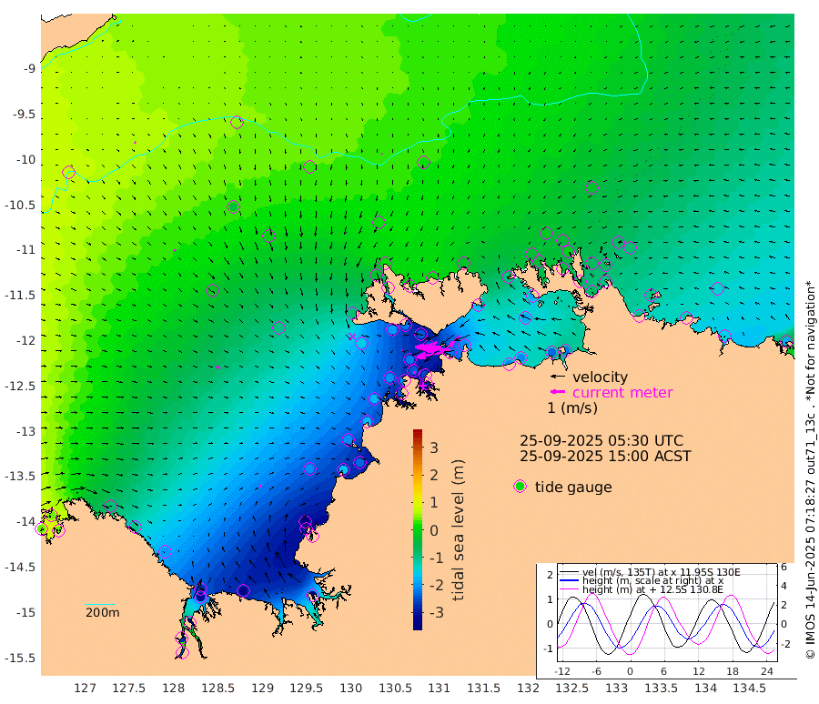 198cm/s -101T +4cm/s rms + 6cm/s 51T. Darwin_C1 52m 172cm/s -91T +4cm/s rms + 7cm/s -161T. Darwin_CW1 22m 100cm/s -105T +4cm/s rms + 8cm/s 61T. Darwin_CW2 34m 104cm/s -136T +3cm/s rms + 9cm/s 98T. Darwin_CW3 22m 184cm/s -91T +5cm/s rms + 7cm/s 88T. Darwin_C3 56m 107cm/s -115T +2cm/s rms + 9cm/s -126T. Darwin_CTbW 22m 10cm/s -177T +9cm/s rms + 2cm/s -110T. NWSLYN 196m 11cm/s -145T +1cm/s rms + 1cm/s -47T. DARBGF 30m 10cm/s 101T +7cm/s rms + 2cm/s -137T. ITFTIS 464m 13cm/s 125T +9cm/s rms + 1cm/s 74T. ITFMHB 146m 17cm/s 90T +4cm/s rms + 1cm/s -134T. ITFJBG 61m 28cm/s 114T +6cm/s rms + 4cm/s 121T. ITFFTB 108m 14cm/s 177T +4cm/s rms + 3cm/s 80T. NRSDAR 19m 43cm Carronade Island 43cm Guy Point 41cm Napier Broome Bay -88cm Lesueur Island -199cm Reveley Island -94cm Rocky Island -310cm Cape Domett -281cm Lacrosse Island -337cm Adolphus Island -277cm Pender Point -270cm Wyndham -20cm The Boxers -38cm Unnamed Shoal 45cm Loxton Shoal -328cm Pelican Island 0cm Calder Shoal 29cm Evans Shoal -425cm Quoin Island -301cm Port Keats -289cm Jones Point -371cm Catfish Island -209cm Cape Scott Offshore -164cm Cape Ford -231cm Anson Bay 15cm Goodrich Bank -207cm Peron Island North -178cm Point Jenny -175cm Native Point -205cm Fish Reef -213cm Tapa Bay -83cm Point Fawcett (Offshore) -236cm Burge Point -196cm Munkunuwa -147cm Beagle A -240cm Parsons Bank -221cm Fenton Patches 17cm Lynedoch Bank -241cm Hancox Shoal Area -251cm Nightcliff -278cm Darwin -242cm Charles Point Patches -221cm Glyde Point -203cm Chambers Bay -208cm Point Stuart -204cm Cape Hotham -181cm Christine Reef -226cm West Alligator Head -221cm East Field Island -181cm Two Hills Bay -97cm Newby Shoal -170cm Camp Point -219cm Medina Inlet South -65cm South Barlow Point -29cm St. Asaph Bay 13cm Cape Van Dieman -2cm Snake Bay 2cm Cache Point 68cm Echo Shoal -26cm Point Jahleel (Off) -92cm Cape Don -39cm Port Essington -36cm Smith Point - West -35cm NW Peacock Island -21cm North Of Jones Shoal -10cm Peacock Island -66cm Point David -41cm D'urville Point -32cm Money Shoal -69cm Copeland Island -98cm Cape Cockburn -68cm One Tree Point -85cm Hogmany Shoal -68cm New Year Island - West -73cm Grant Island -101cm Aurari Bay -121cm Cuthbert Point -100cm North Goulburn Island -137cm Paxie Shoal -151cm Entrance Island -184cm Yabooma Island