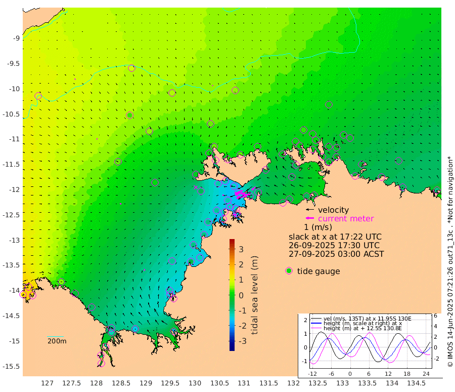 133cm/s -102T +4cm/s rms + 6cm/s 51T. Darwin_C1 52m 99cm/s -90T +4cm/s rms + 7cm/s -161T. Darwin_CW1 22m 88cm/s -107T +4cm/s rms + 8cm/s 61T. Darwin_CW2 34m 59cm/s -133T +3cm/s rms + 9cm/s 98T. Darwin_CW3 22m 130cm/s -91T +5cm/s rms + 7cm/s 88T. Darwin_C3 56m 76cm/s -115T +2cm/s rms + 9cm/s -126T. Darwin_CTbW 22m 6cm/s 141T +9cm/s rms + 2cm/s -110T. NWSLYN 196m 20cm/s -103T +1cm/s rms + 1cm/s -47T. DARBGF 30m 8cm/s 60T +7cm/s rms + 2cm/s -137T. ITFTIS 464m 10cm/s 77T +9cm/s rms + 1cm/s 74T. ITFMHB 146m 14cm/s 29T +4cm/s rms + 1cm/s -134T. ITFJBG 61m 15cm/s 76T +6cm/s rms + 4cm/s 121T. ITFFTB 108m 16cm/s -97T +4cm/s rms + 3cm/s 80T. NRSDAR 19m 142cm Carronade Island 141cm Guy Point 145cm Napier Broome Bay 53cm Lesueur Island -68cm Reveley Island -37cm Rocky Island -127cm Cape Domett -100cm Lacrosse Island -140cm Adolphus Island -72cm Pender Point -45cm Wyndham 44cm The Boxers 28cm Unnamed Shoal 84cm Loxton Shoal -162cm Pelican Island 54cm Calder Shoal 62cm Evans Shoal -186cm Quoin Island -151cm Port Keats -148cm Jones Point -116cm Catfish Island -102cm Cape Scott Offshore -56cm Cape Ford -127cm Anson Bay 44cm Goodrich Bank -100cm Peron Island North -91cm Point Jenny -91cm Native Point -103cm Fish Reef -117cm Tapa Bay -17cm Point Fawcett (Offshore) -123cm Burge Point -121cm Munkunuwa -61cm Beagle A -142cm Parsons Bank -114cm Fenton Patches 48cm Lynedoch Bank -138cm Hancox Shoal Area -140cm Nightcliff -155cm Darwin -129cm Charles Point Patches -99cm Glyde Point -72cm Chambers Bay -63cm Point Stuart -78cm Cape Hotham -61cm Christine Reef -69cm West Alligator Head -52cm East Field Island -58cm Two Hills Bay 1cm Newby Shoal -54cm Camp Point -120cm Medina Inlet South -18cm South Barlow Point 13cm St. Asaph Bay 41cm Cape Van Dieman 32cm Snake Bay 42cm Cache Point 106cm Echo Shoal 21cm Point Jahleel (Off) -22cm Cape Don 5cm Port Essington 4cm Smith Point - West 7cm NW Peacock Island 23cm North Of Jones Shoal 6cm Peacock Island -17cm Point David -1cm D'urville Point 11cm Money Shoal -22cm Copeland Island -24cm Cape Cockburn -14cm One Tree Point -18cm Hogmany Shoal -10cm New Year Island - West -18cm Grant Island -39cm Aurari Bay -54cm Cuthbert Point -35cm North Goulburn Island -58cm Paxie Shoal -75cm Entrance Island -97cm Yabooma Island